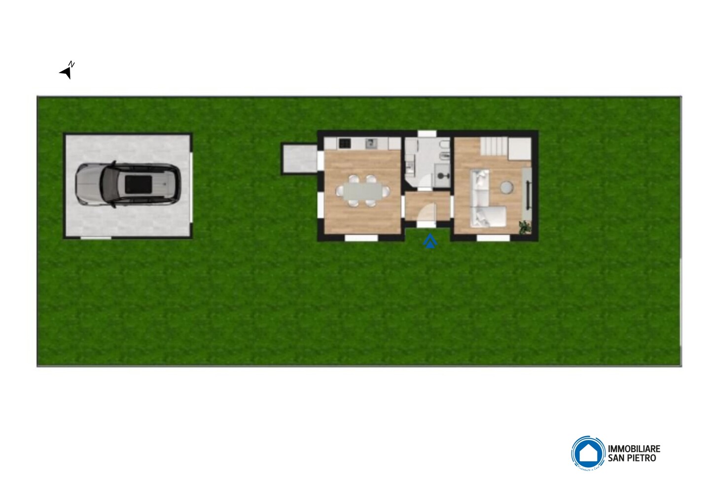 Villetta indipendente con accesso al piano terra su ingresso, soggiorno, cucina abitabile, bagno, corte esclusiva e garage di 40 mq. Al primo piano si trovano due camere matrimoniali, bagno e balcone. A completare la proprietà giardino privato.