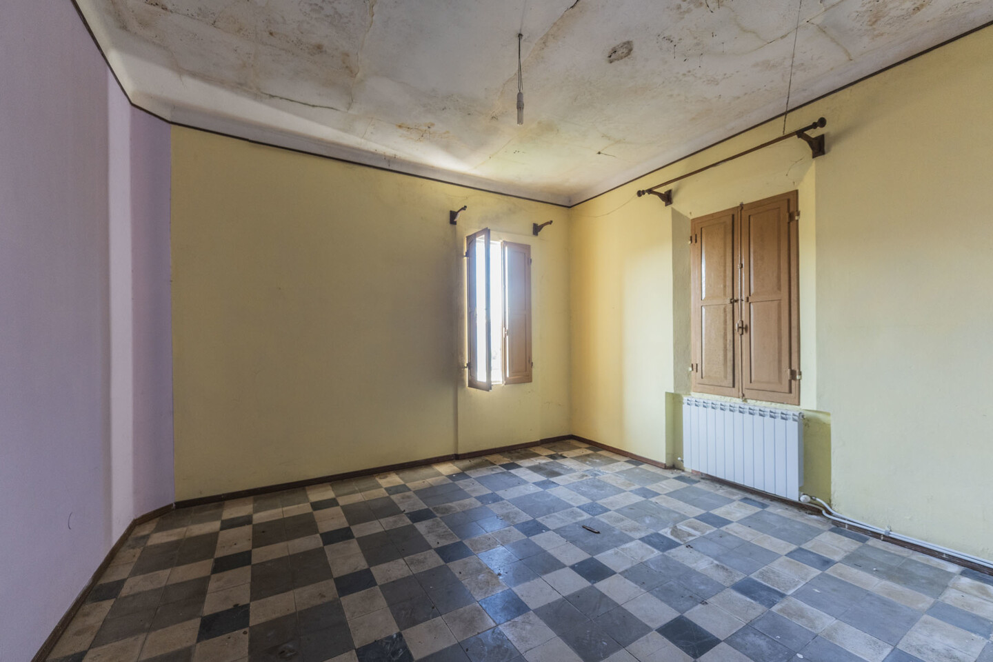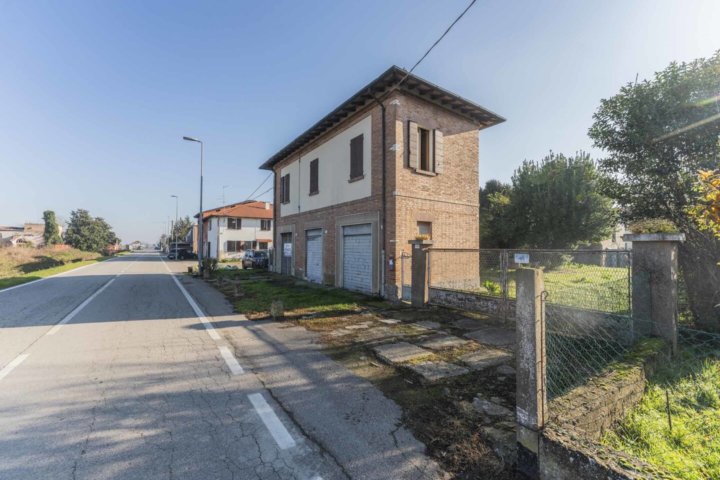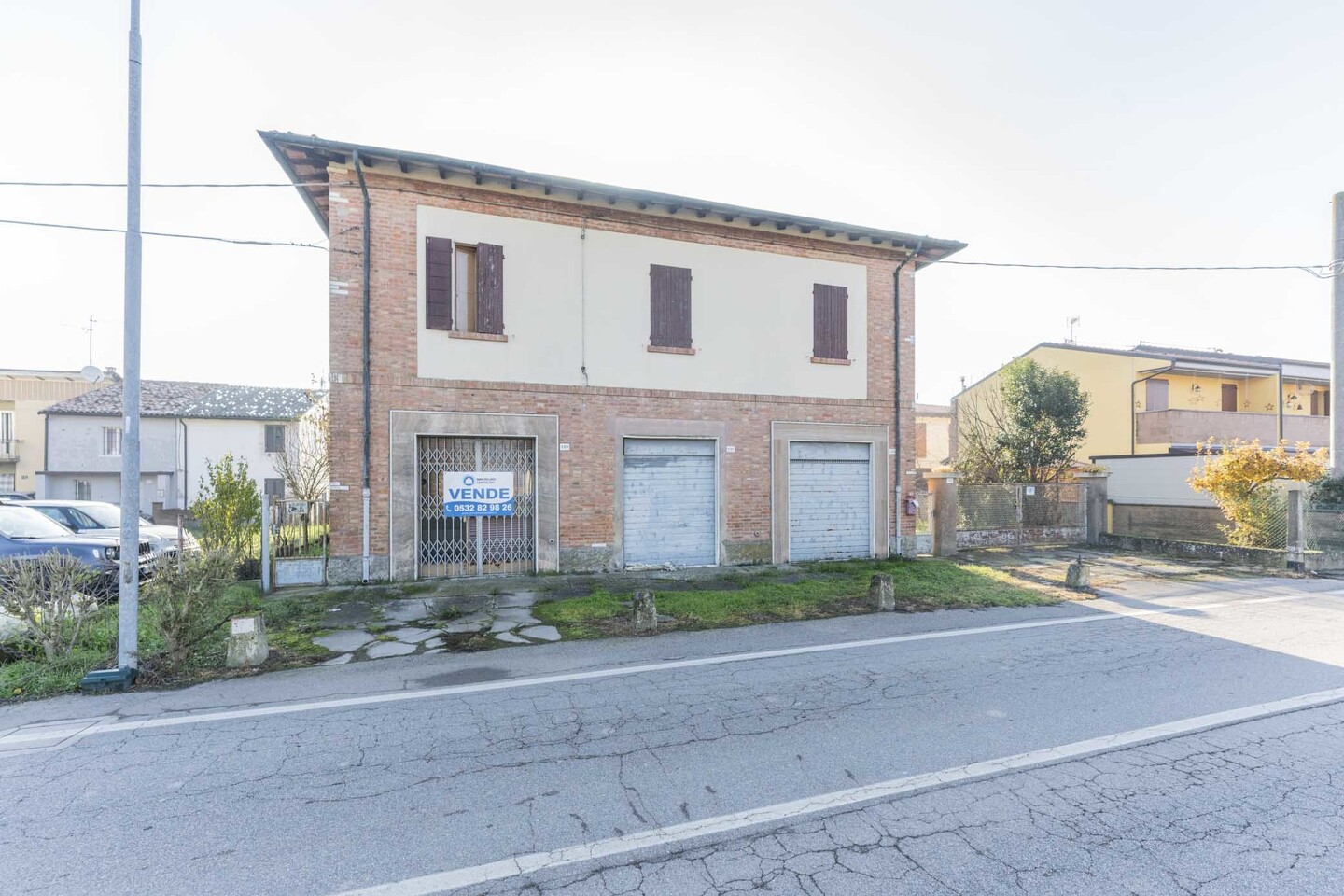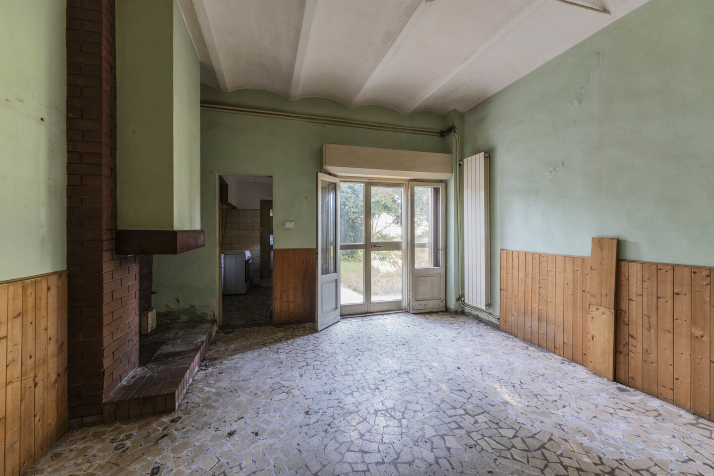 Ingresso, soggiorno/pranzo e cucinotto al piano terra. 3 camere da letto matrimoniali, 1 camera studio e bagno al primo piano. Sono presenti inoltre 3 negozi fronte strada, con attuale categoria catastale C/1. In edificio separato, 3 cantine, 2 tettoie ed 1 ripostiglio. Il tutto circondato da una corte verde di oltre 500 mq.