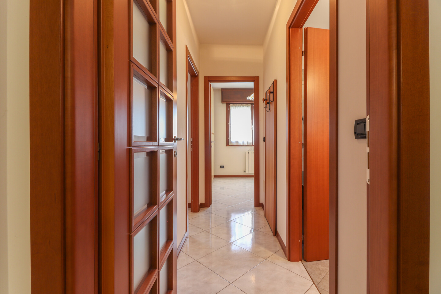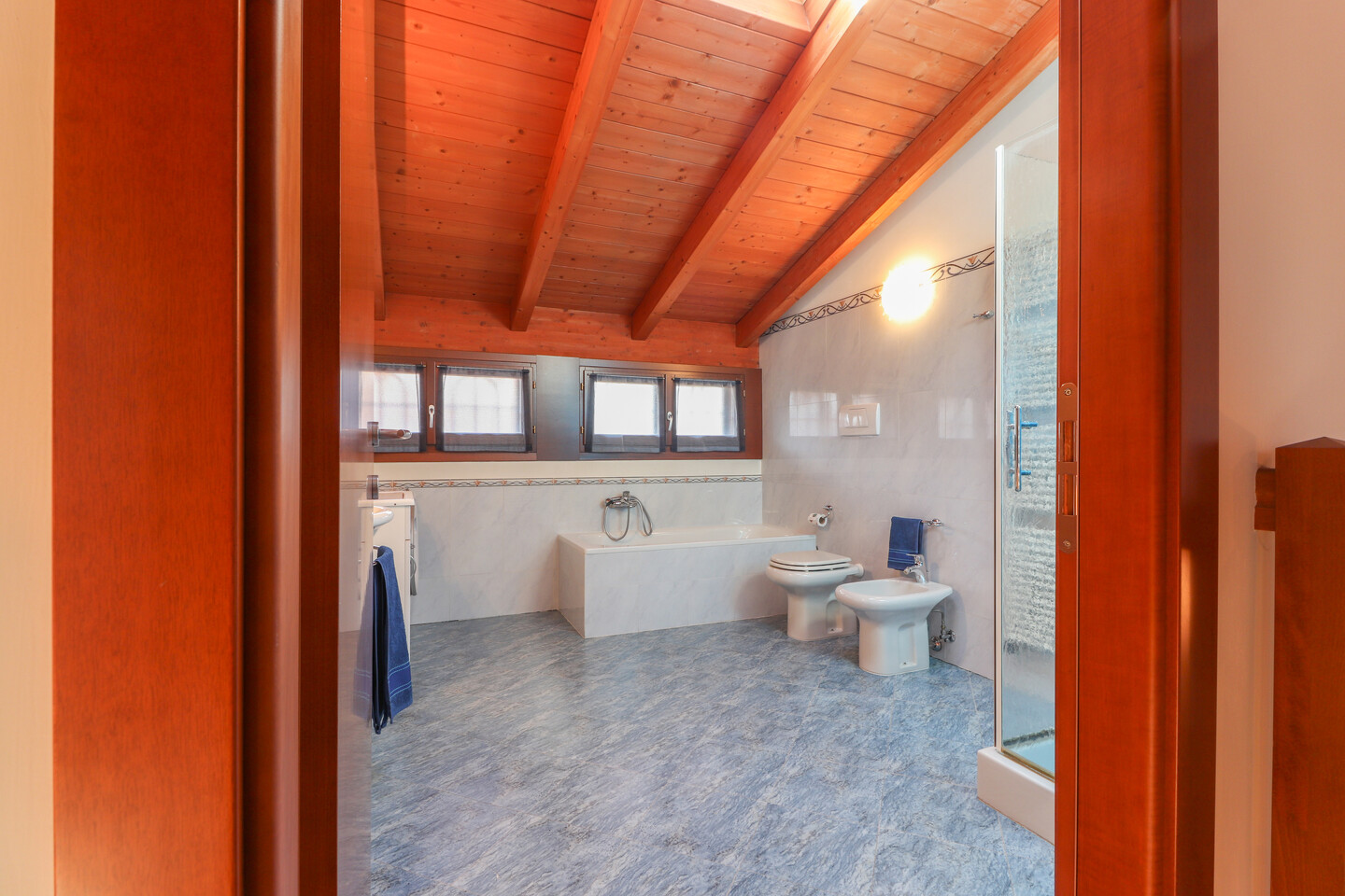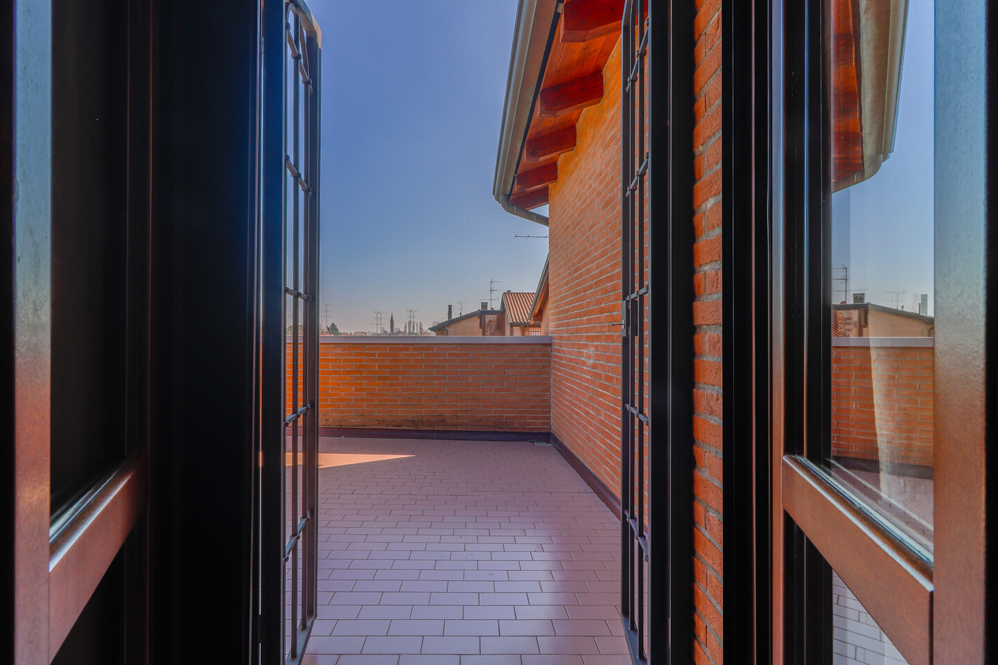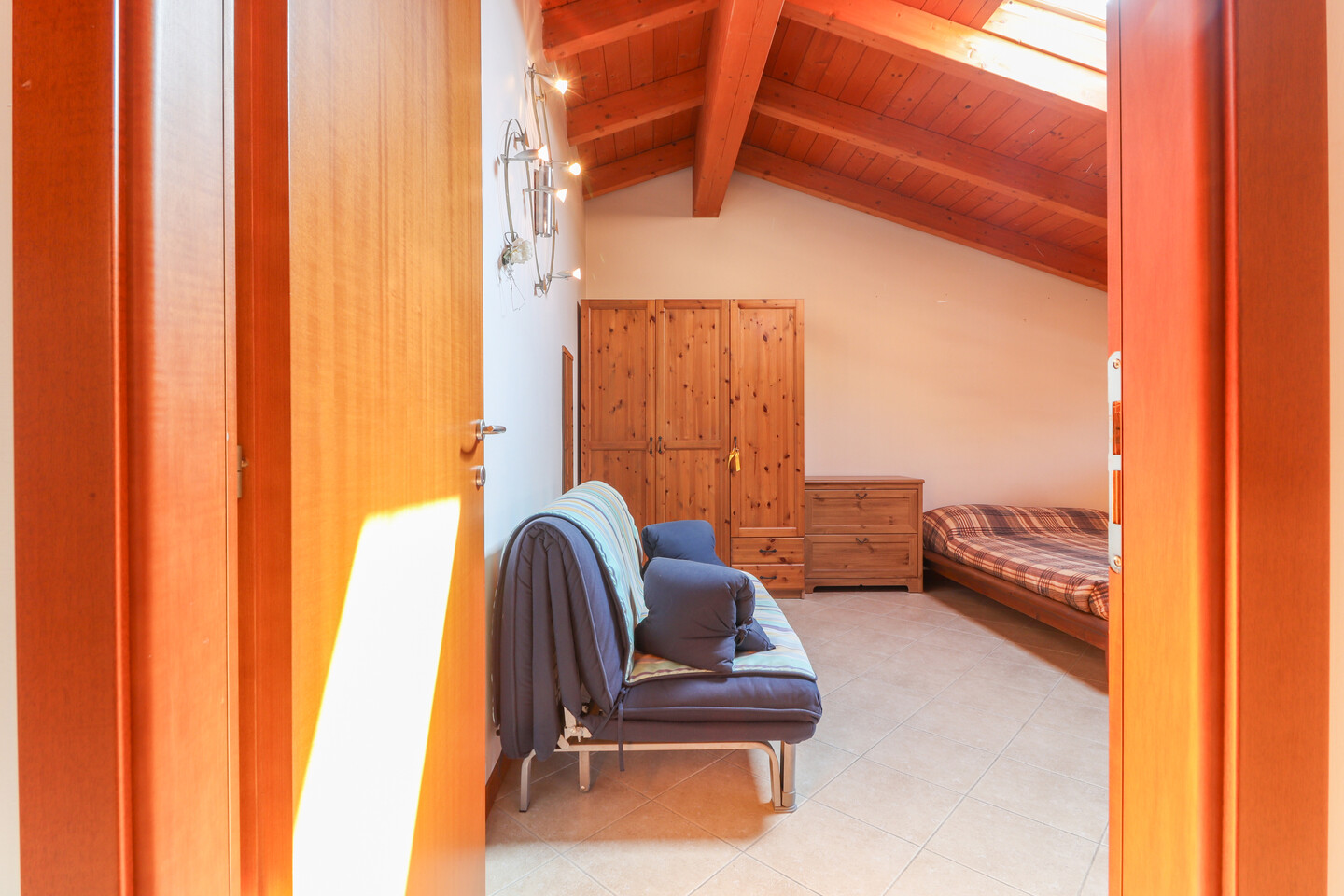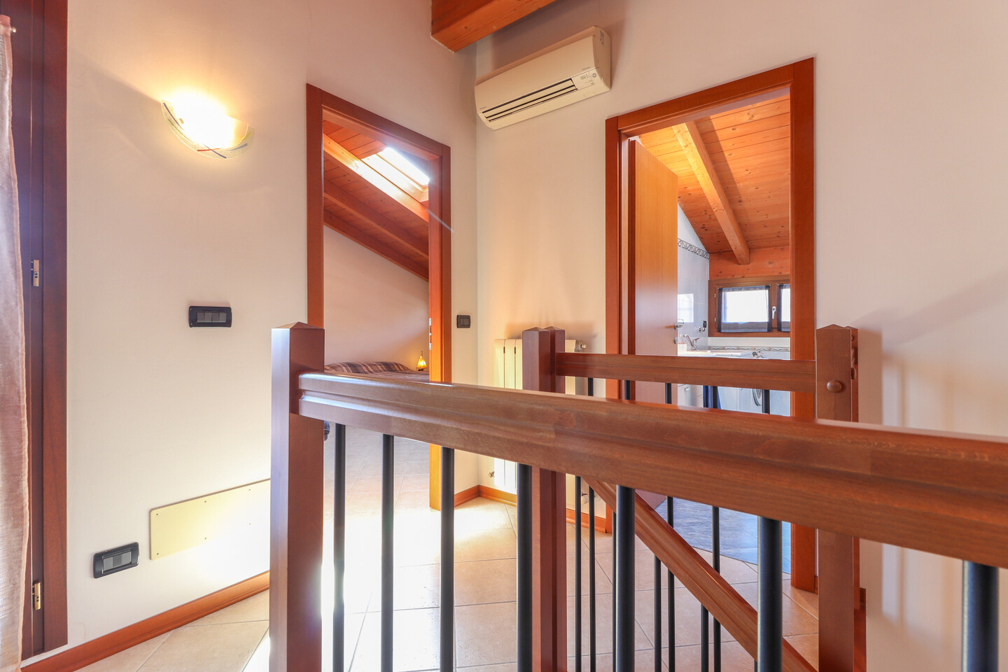 Al secondo piano si sviluppano due appartamenti distinti. Il primo si compone di luminoso soggiorno con cucina a vista e accesso al balcone, due spaziose camere matrimoniali e un bagno. Il secondo appartamento, disposto su due livelli, è caratterizzato da scala interna. L’ingresso si apre su un soggiorno con cucina a vista e affaccio sul balcone, proseguendo verso la zona notte con una camera matrimoniale, una camera doppia e un bagno. Salendo al piano sottotetto, si trovano un’ulteriore stanza da letto, un ampio bagno/lavanderia e una splendida terrazza.