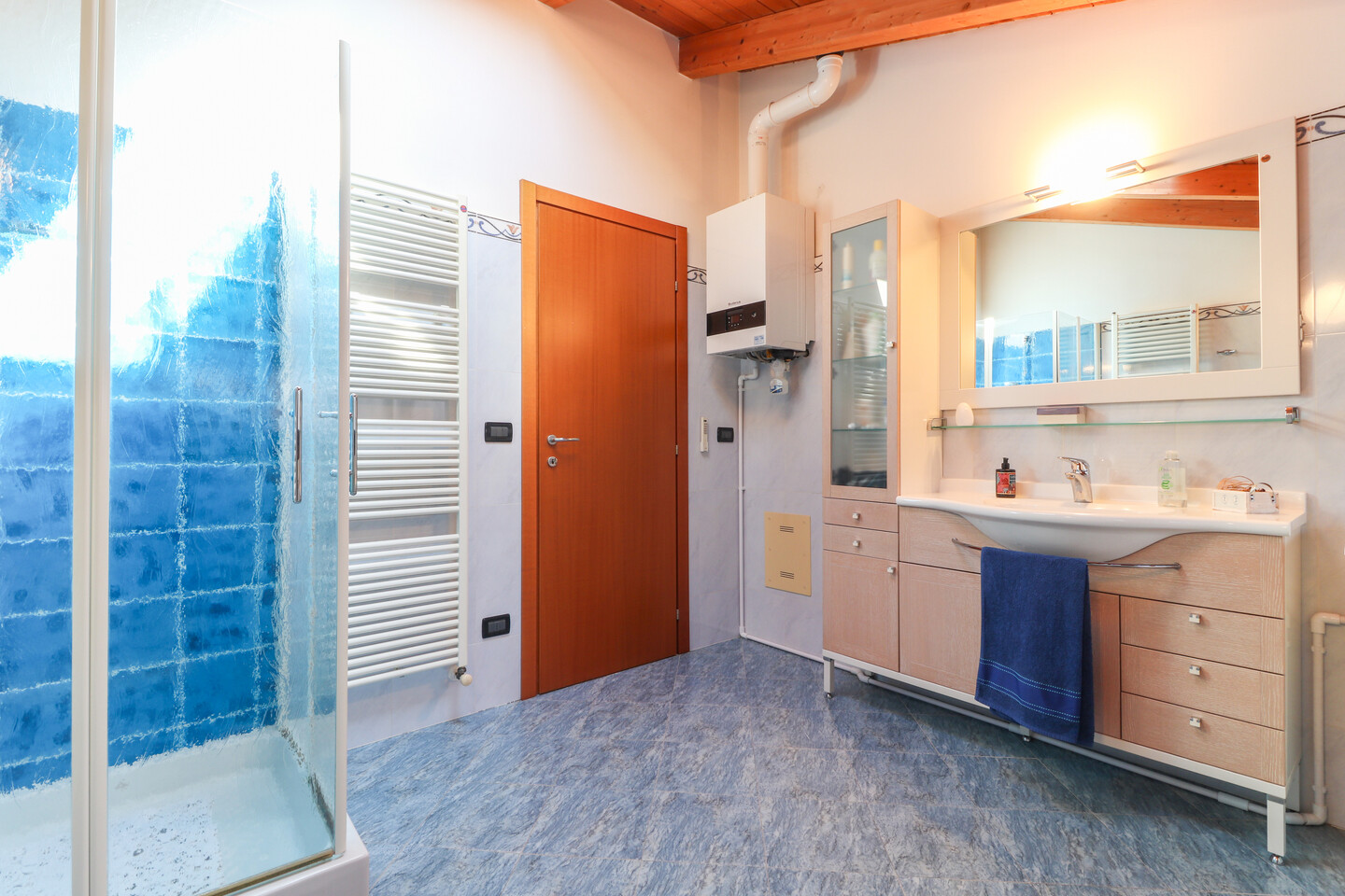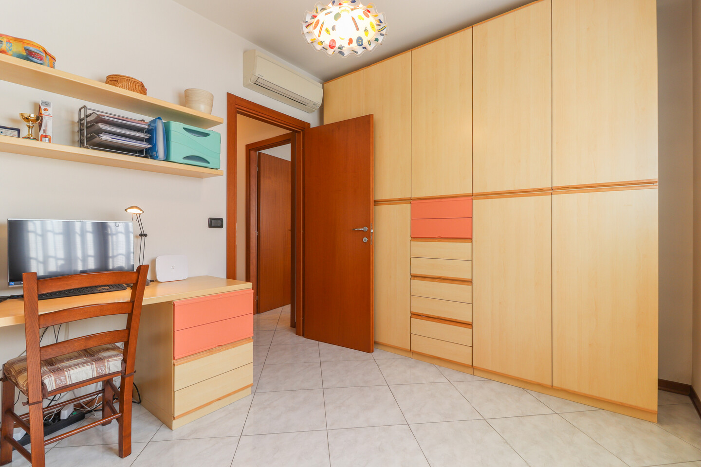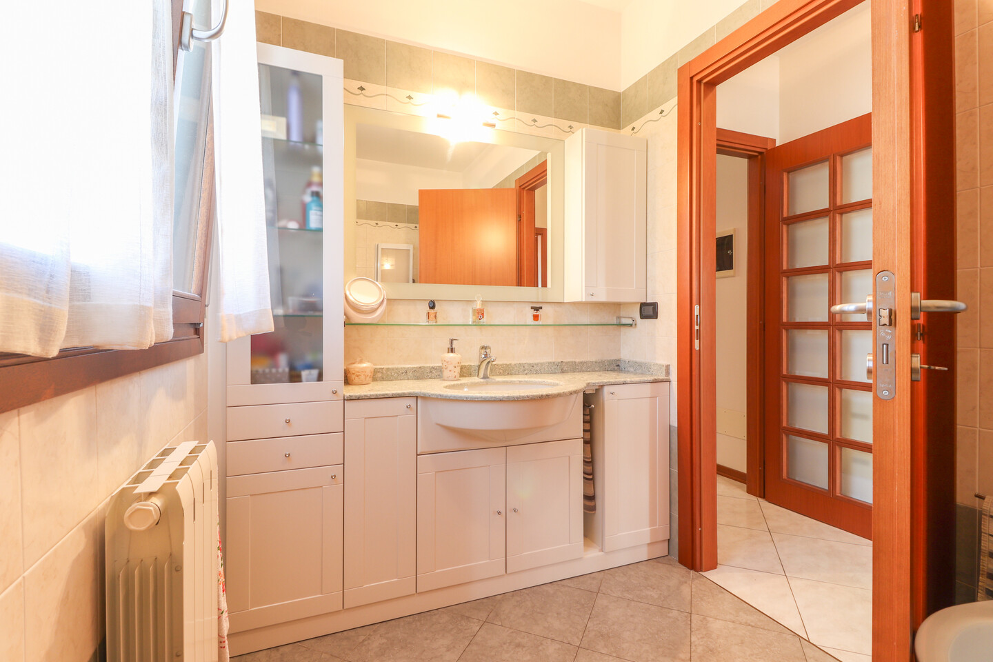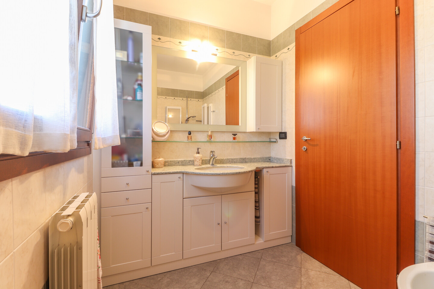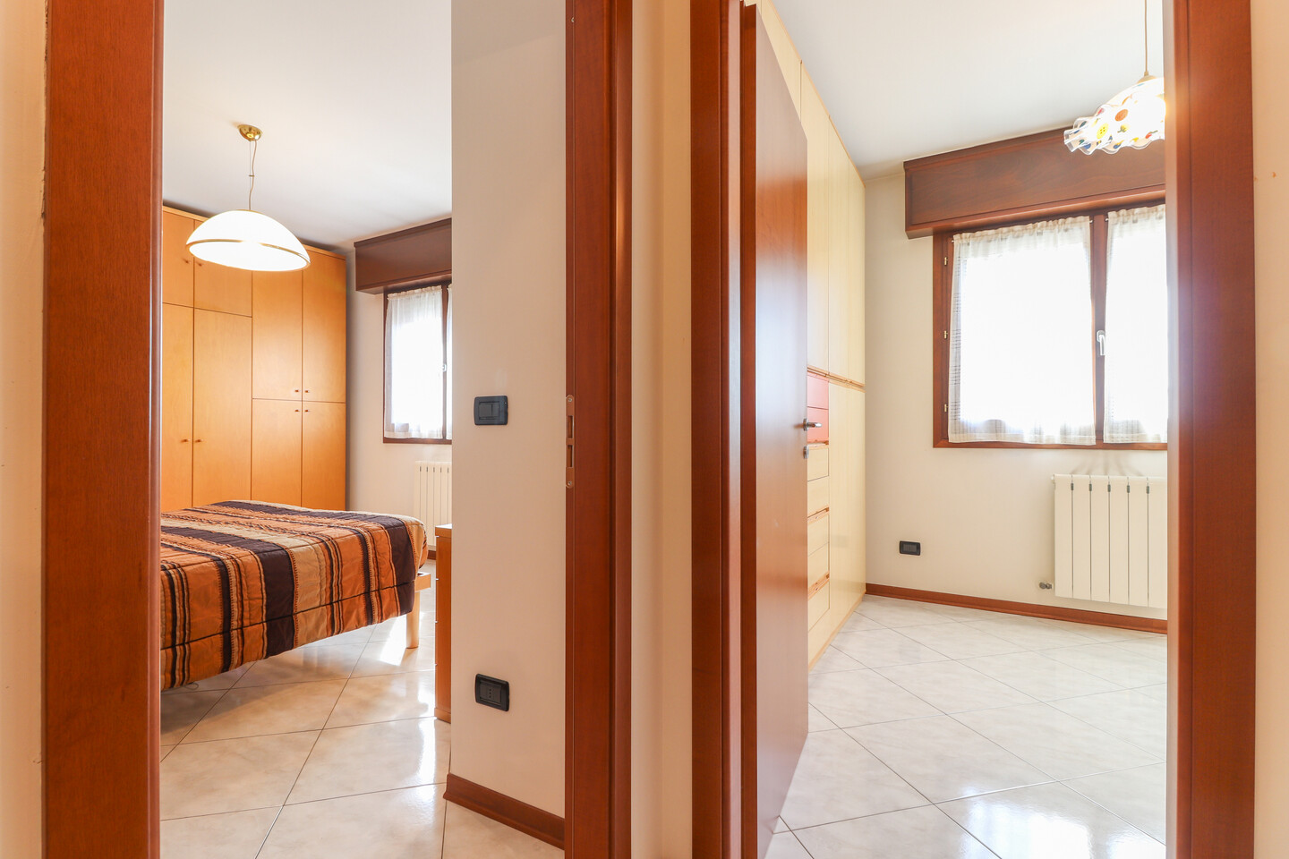 Al secondo piano si sviluppano due appartamenti distinti. Il primo si compone di luminoso soggiorno con cucina a vista e accesso al balcone, due spaziose camere matrimoniali e un bagno. Il secondo appartamento, disposto su due livelli, è caratterizzato da scala interna. L’ingresso si apre su un soggiorno con cucina a vista e affaccio sul balcone, proseguendo verso la zona notte con una camera matrimoniale, una camera doppia e un bagno. Salendo al piano sottotetto, si trovano un’ulteriore stanza da letto, un ampio bagno/lavanderia e una splendida terrazza.