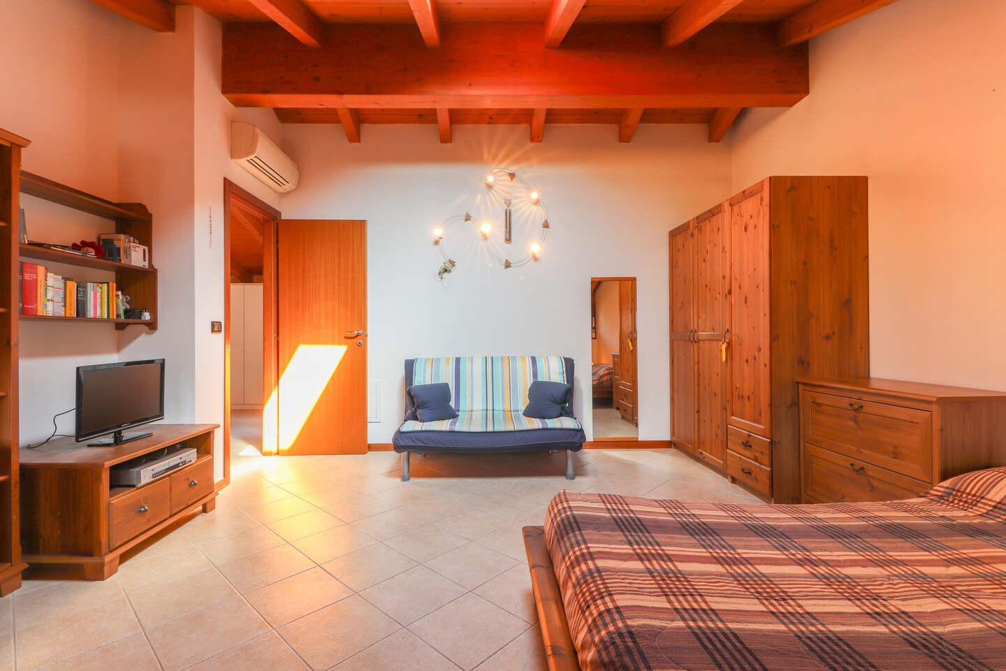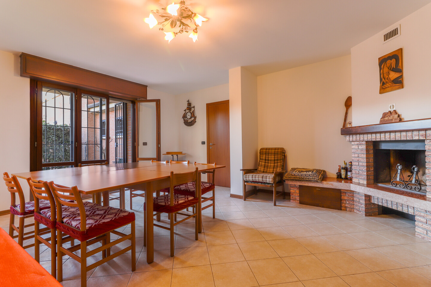 Al piano terra si trova un ampio locale pluriuso, caratterizzato da un camino, con accesso diretto al giardino privato.