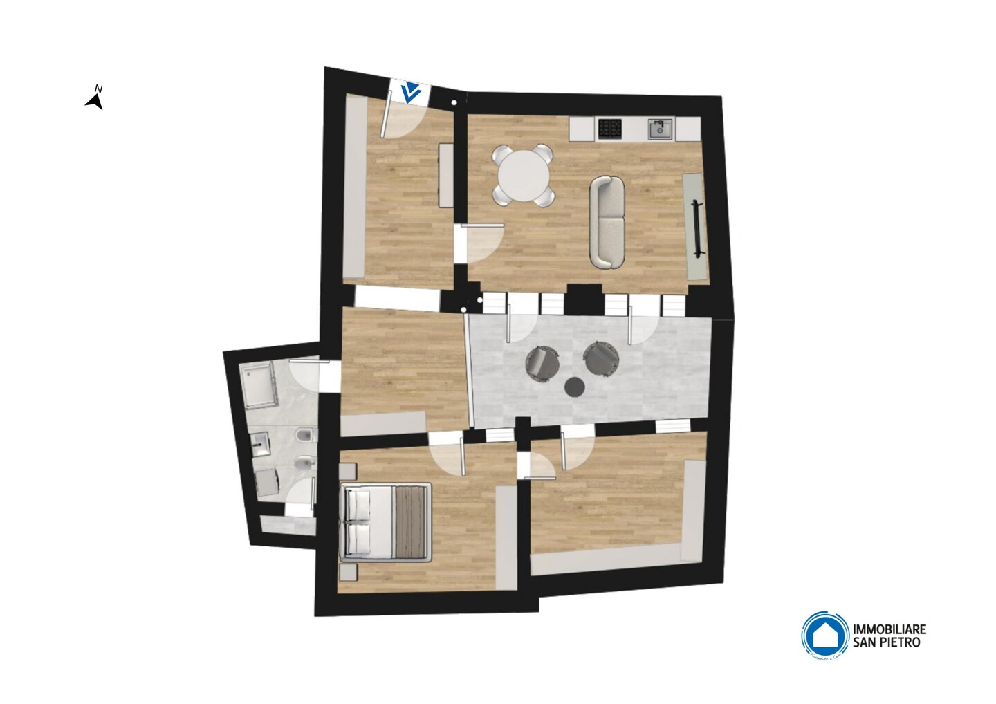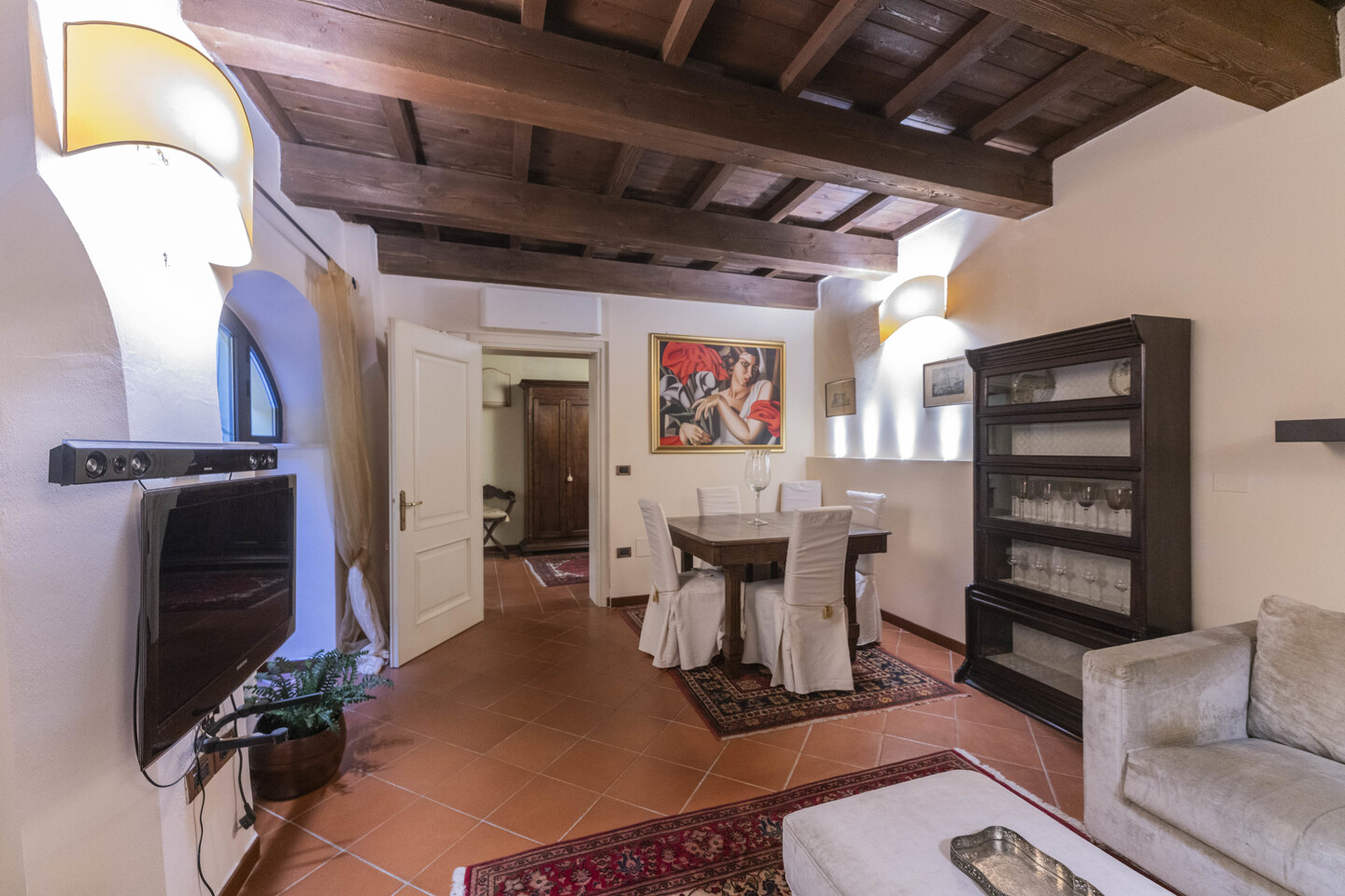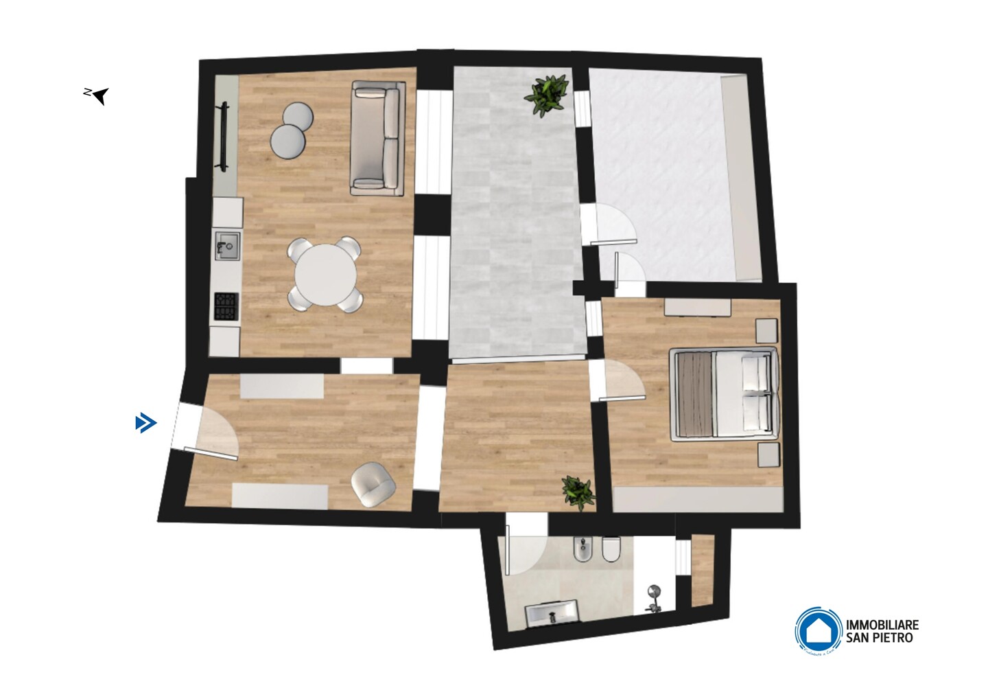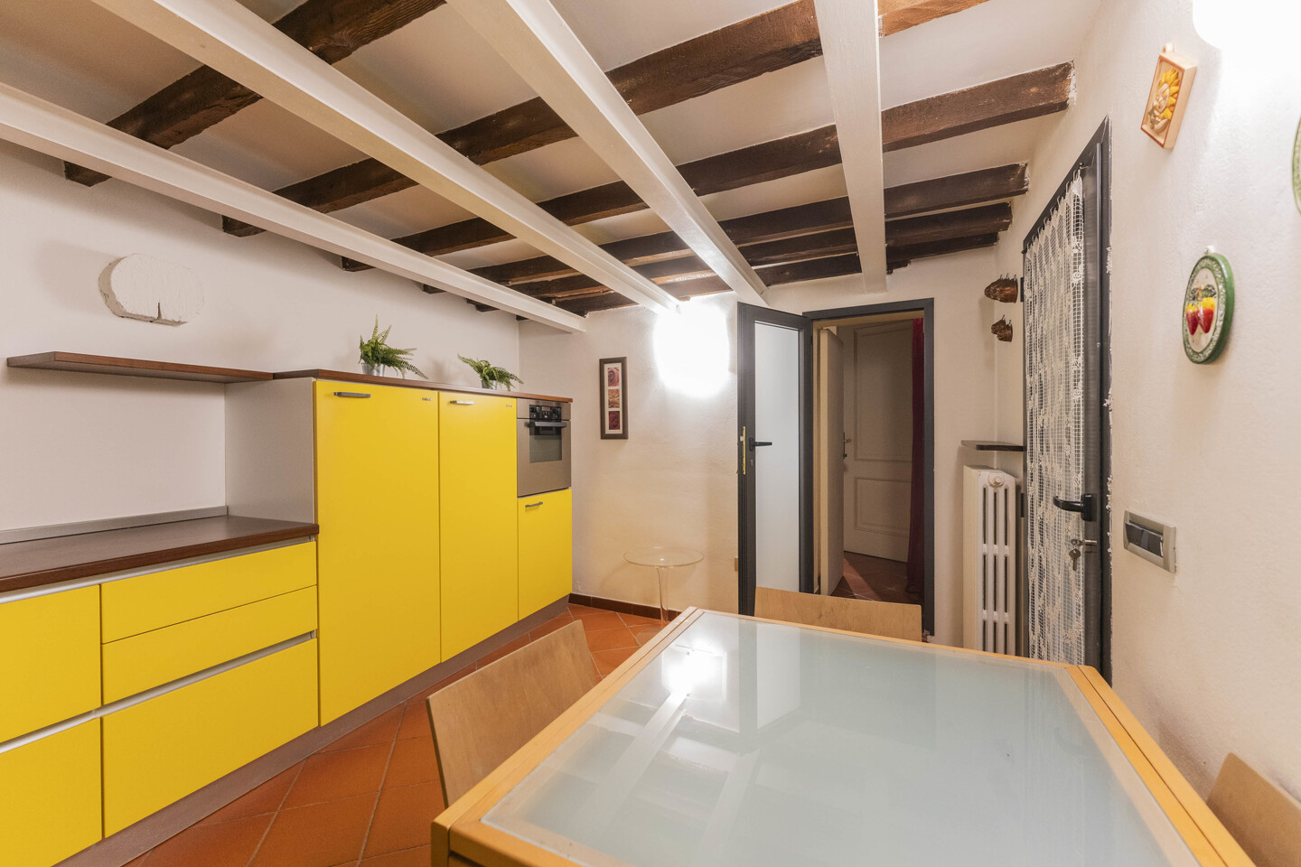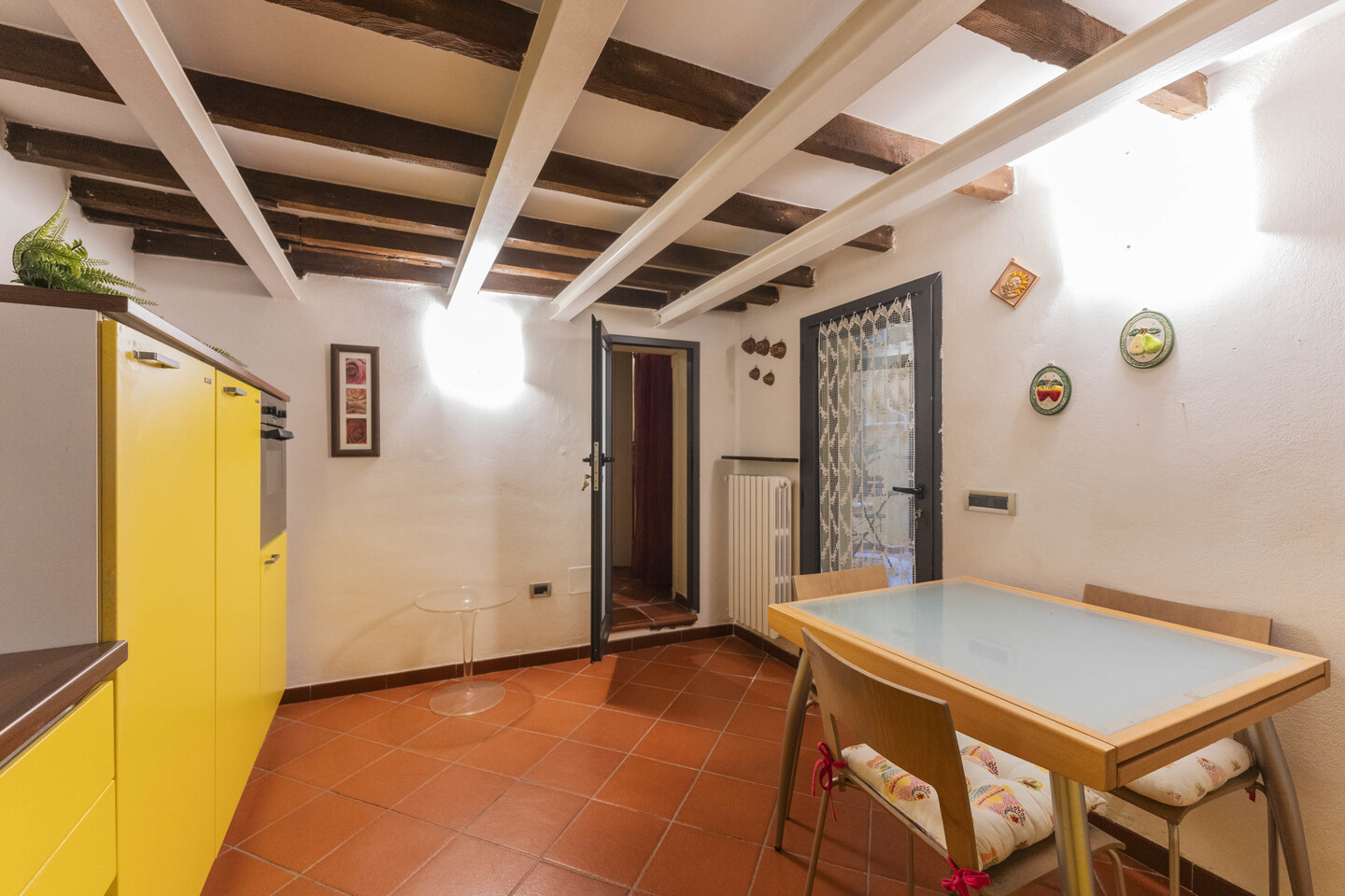 Appartamento ubicato in piccolo condominio di 6 unità e composto da ampio ingresso arredabile, soggiorno con accesso a cortiletto interno, bagno, disimpegno, camera da letto matrimoniale, cantina attualmente adibita ad uso cucina. Cantina ciclabile al piano terra.