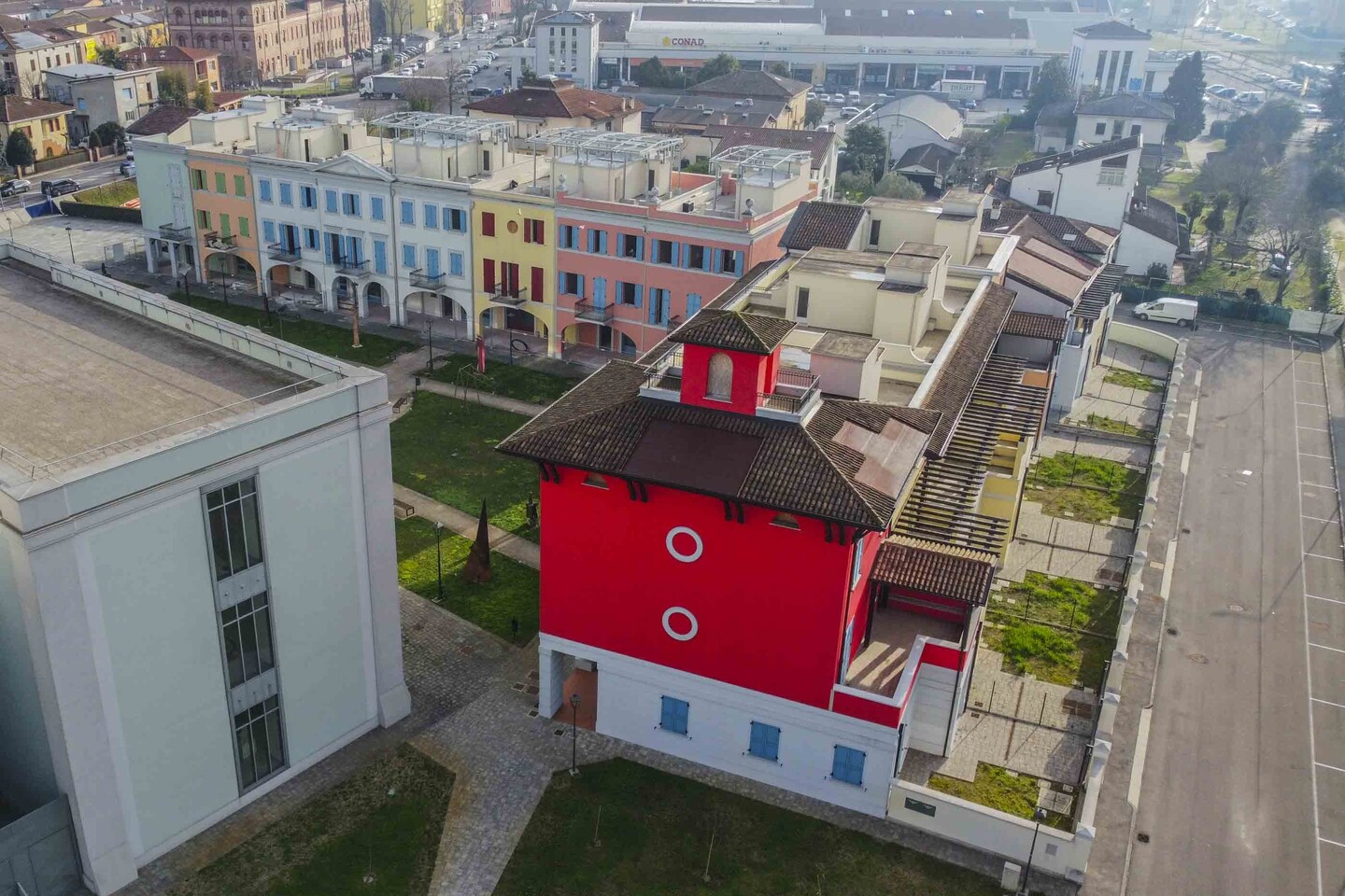 Ci troviamo a Pieve di Cento, in Via Rusticana, all’interno dell’esclusivo parco museale del Museo Magi: un contesto unico dove arte contemporanea, verde curato e architettura si fondono in un’atmosfera raffinata e riservata.