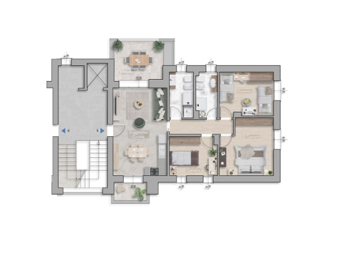 In zona residenziale tranquilla e comoda a tutti i servizi, proponiamo un ampio quadrilocale, nuovo da impresa, situato al piano secondo di una piccola palazzina. L’appartamento si apre su un luminoso soggiorno con cucina a vista ed accesso diretto a due terrazzi. La zona notte, ben organizzata, comprende una camera matrimoniale, una spaziosa camera doppia, una camera singola e due bagni entrambi finestrati, garantendo comfort e praticità.