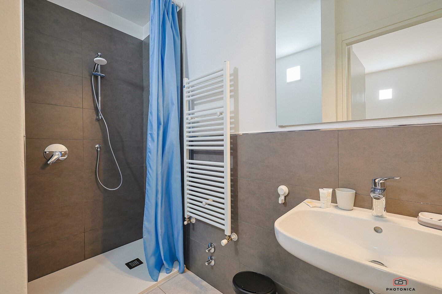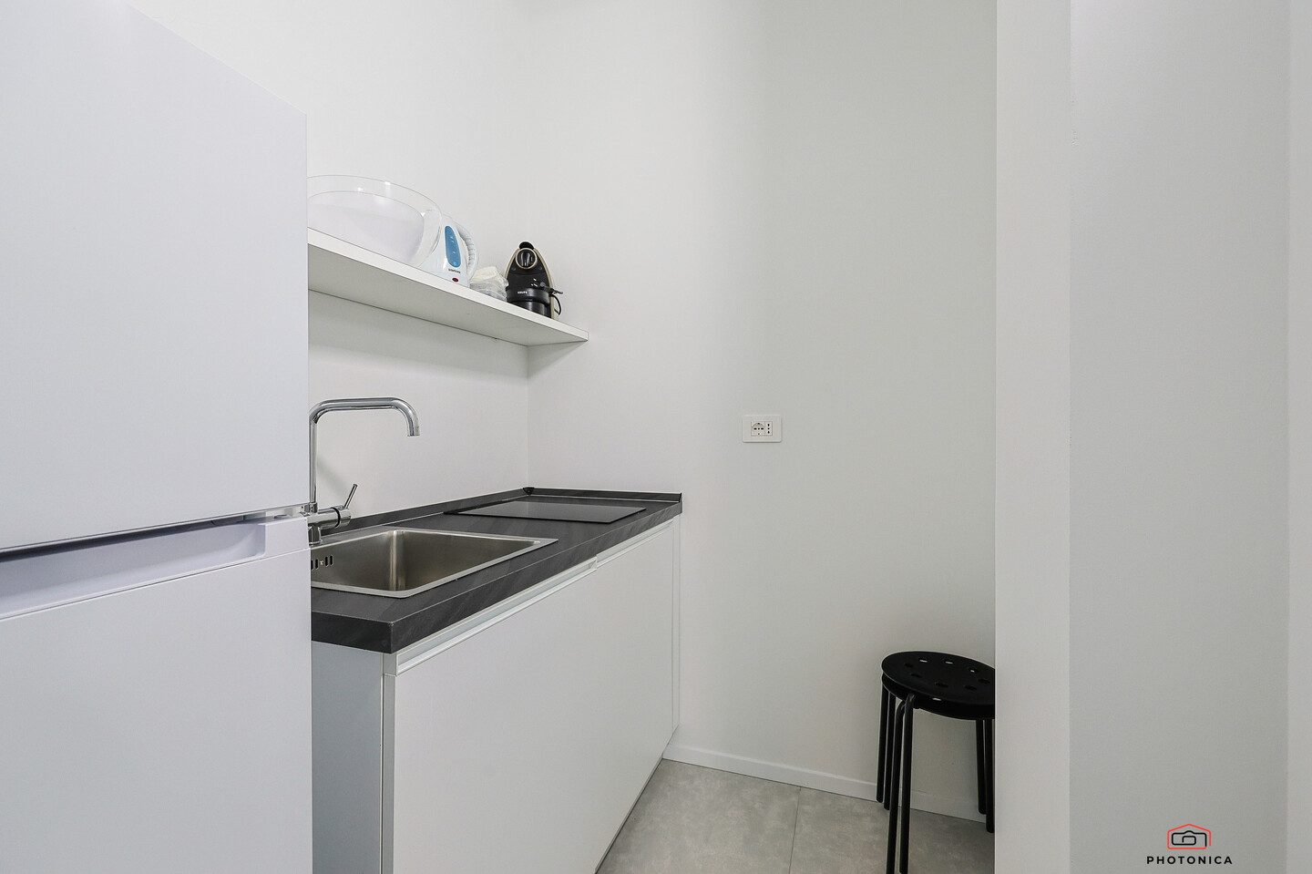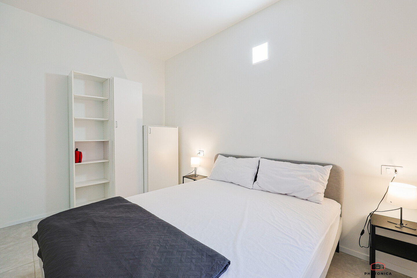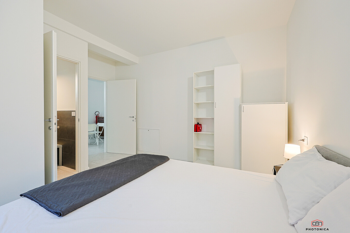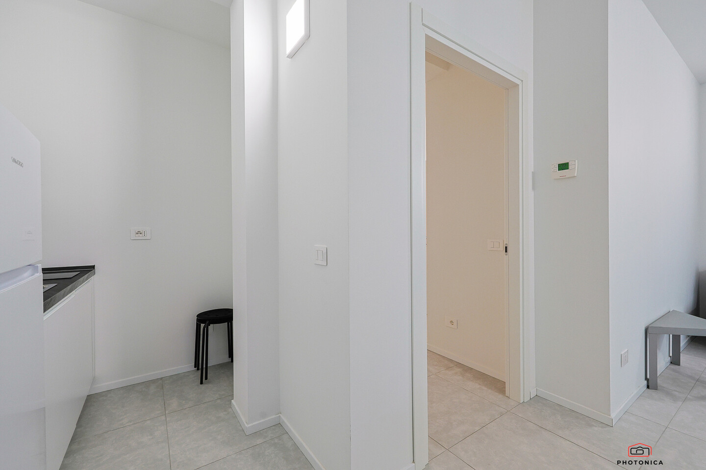 L’appartamento è al piano terra ed è composto da un luminoso soggiorno con un pratico cucinotto in nicchia, una camera matrimoniale spaziosa e un bagno moderno con box doccia.