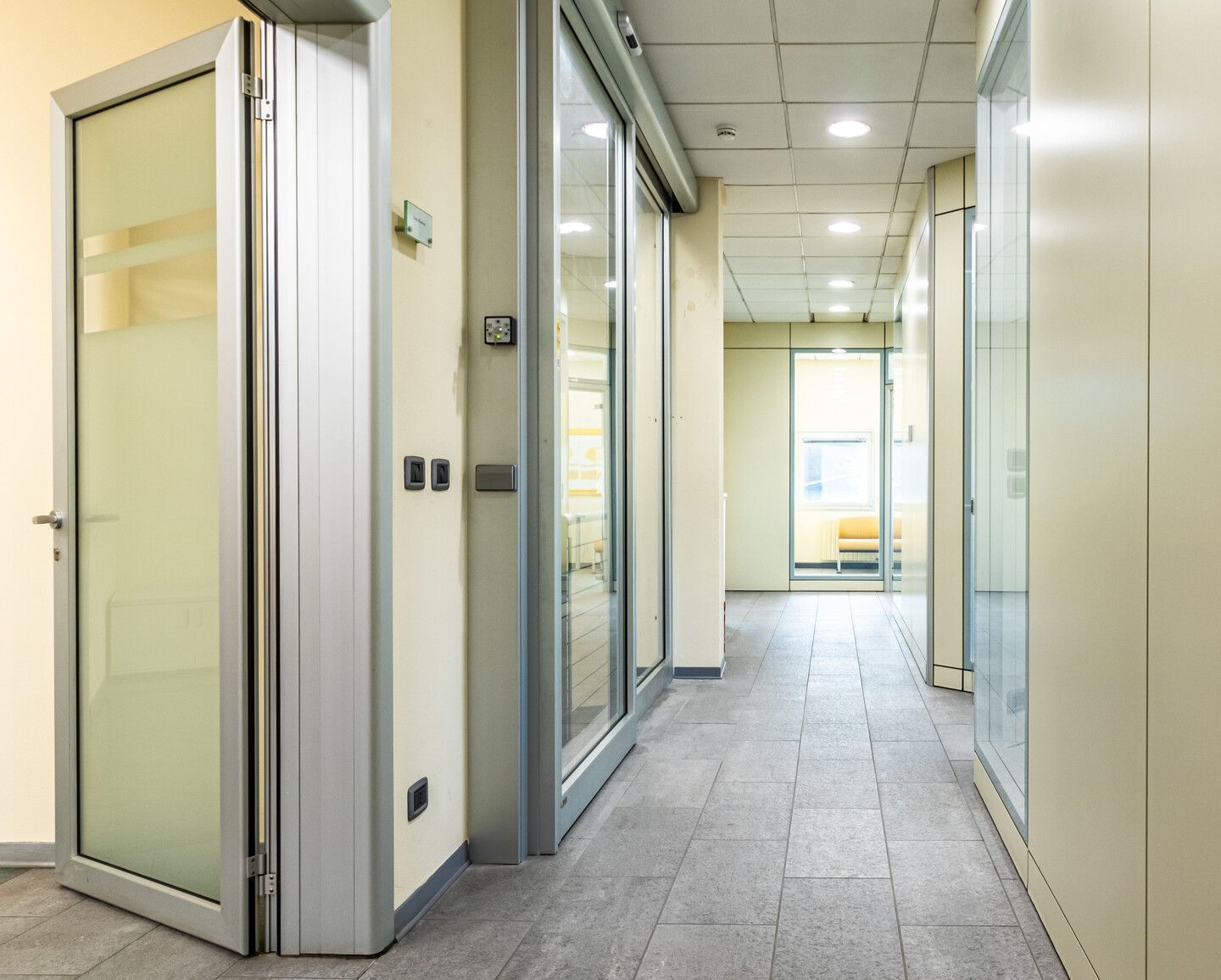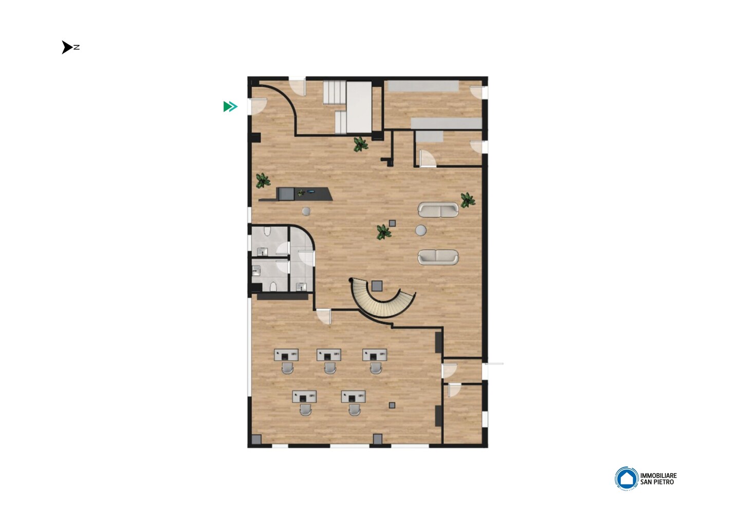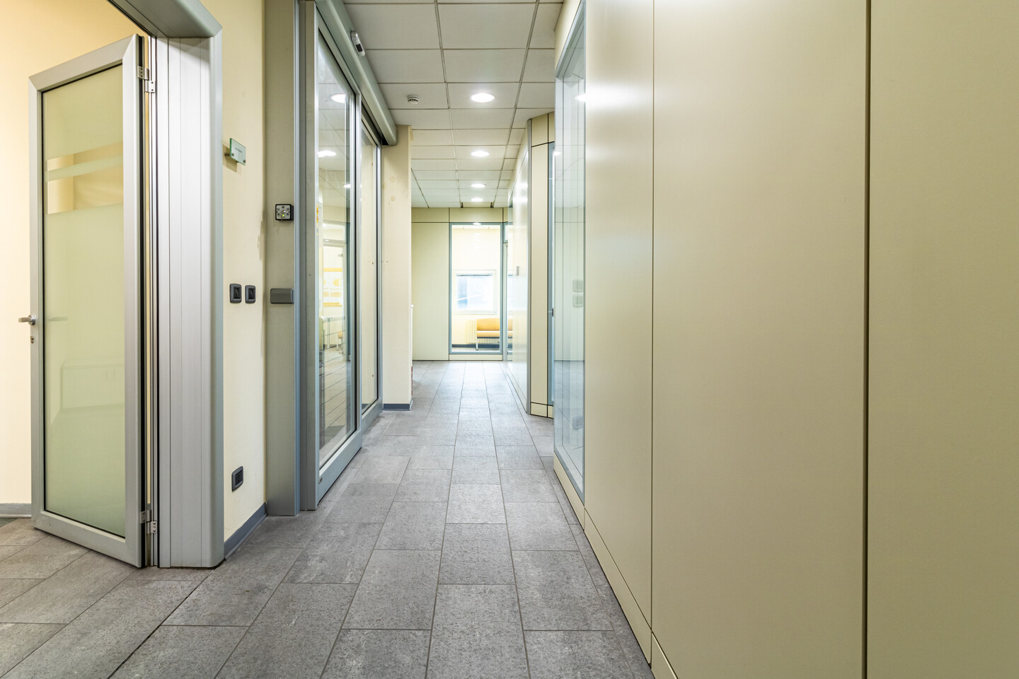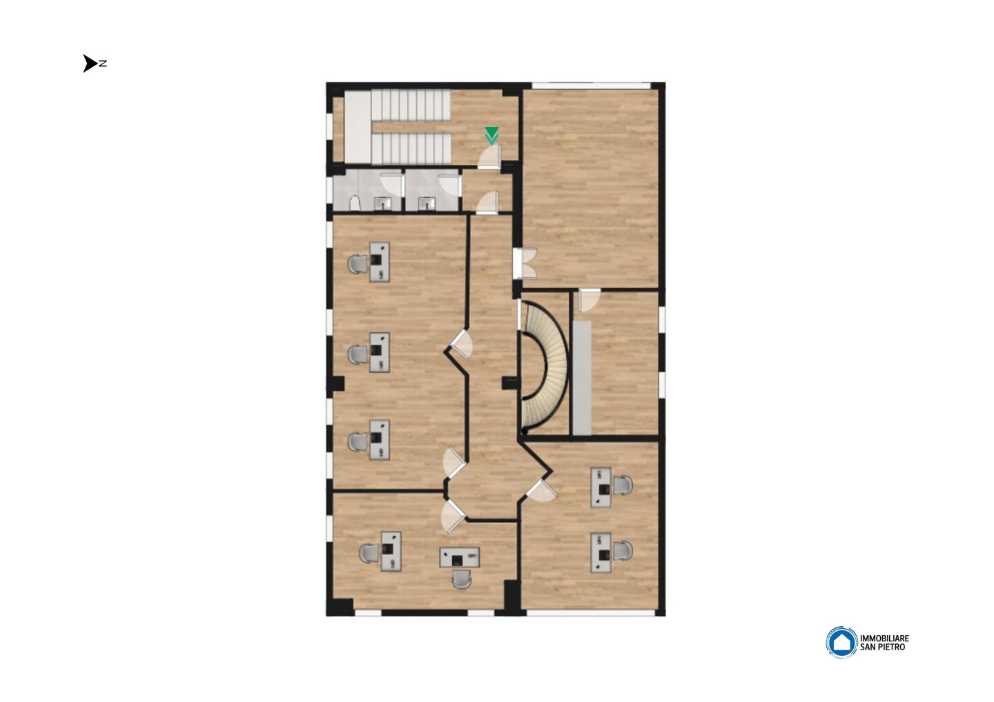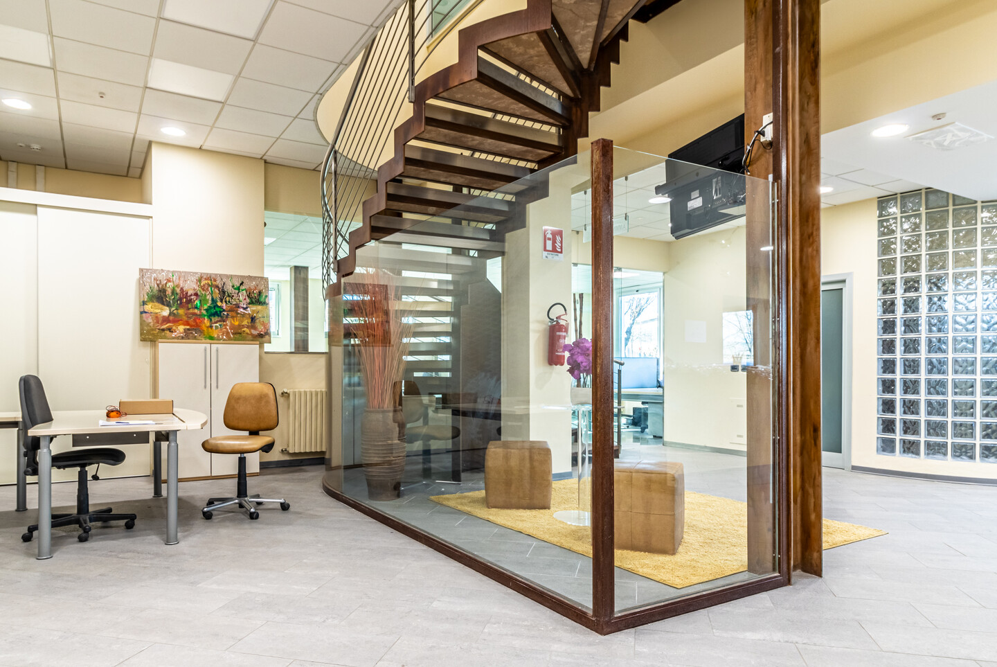Al piano terra, all’ingresso dell’edificio, si trova una elegante reception a disposizione dell’inquilino e una scala moderna conduce al piano superiore, dove si trovano gli spazi in locazione. L’ufficio in oggetto si sviluppa al primo piano: troviamo una ampia sala riunioni, altri 4 uffici separati, un archivio e un bagno. La distribuzione degli spazi è funzionale, garantendo un ambiente di lavoro confortevole e ben organizzato. Le condizioni interne sono eccellenti e moderne, pronte per essere personalizzate secondo le esigenze del tuo business.