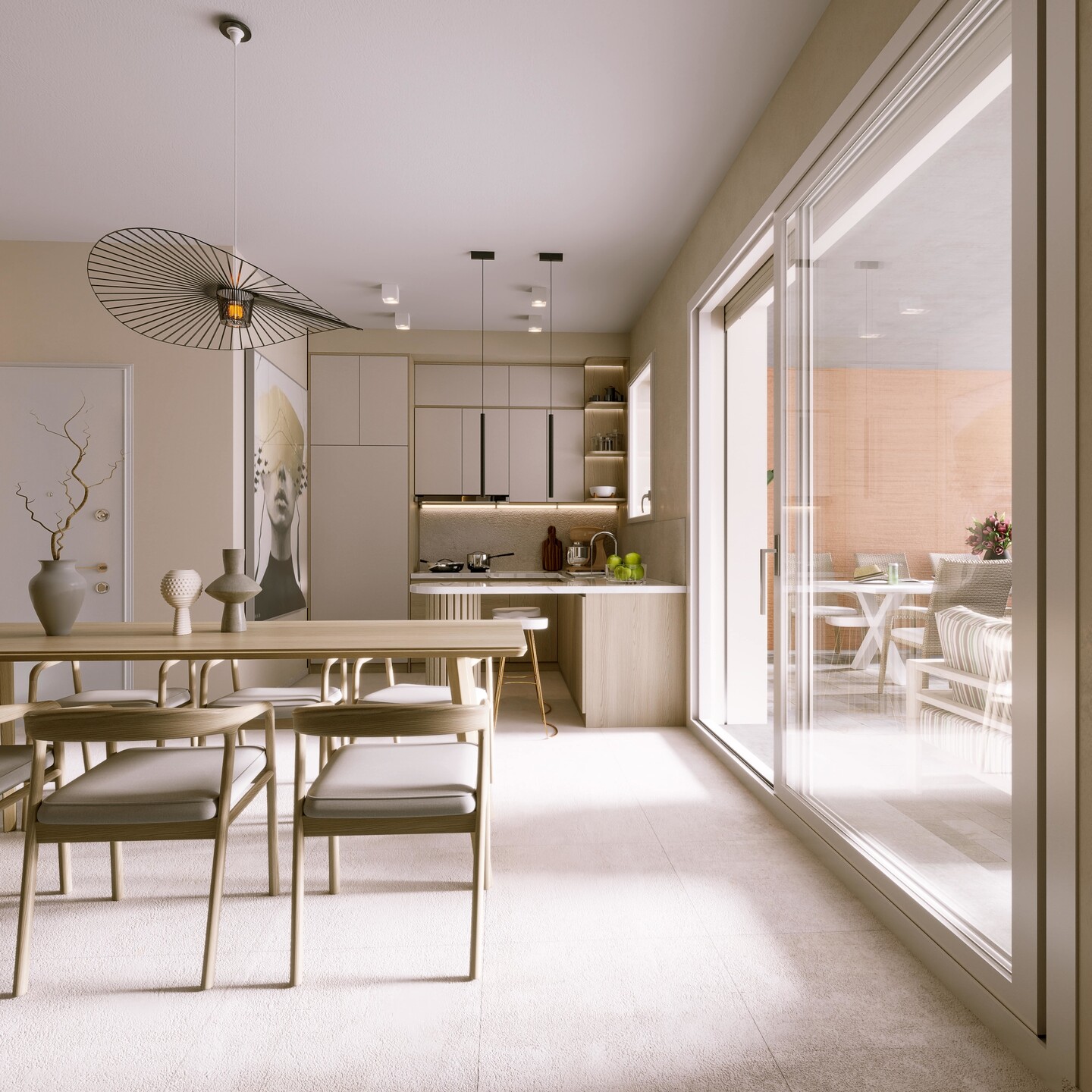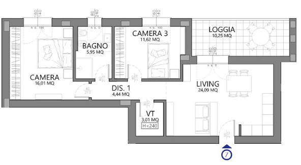 In contesto tranquillo e immerso nel verde, proponiamo Appartamento 7 al piano secondo composto da: ingresso su ampia zona living con cucina a vista e affaccio su loggia. La zona notte comprende una camera matrimoniale, una camera doppia, 1 bagno ed un locale tecnico/lavanderia.