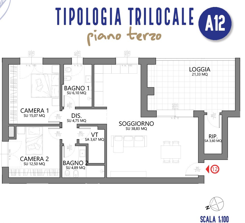 In contesto tranquillo e immerso nel verde, proponiamo Appartamento 12 al piano terzo composto da: ingresso su ampia zona living con cucina a vista e affaccio su loggia. La zona notte comprende una camera matrimoniale, una camera doppia, 1 bagno ed un locale tecnico/lavanderia. Possibilità di acquistare autorimessa e posto auto privato. Per maggiori informazioni, contattaci subito!