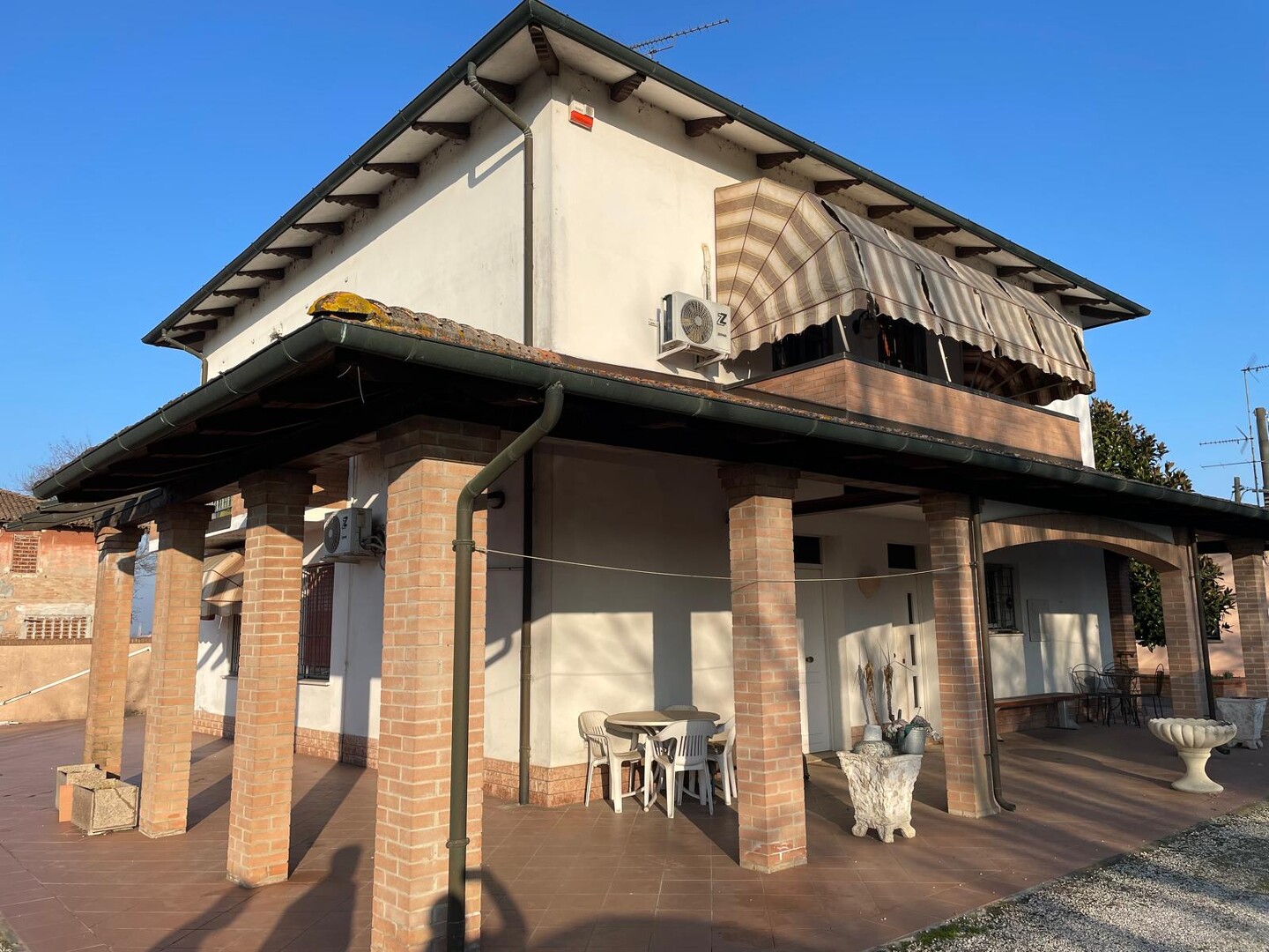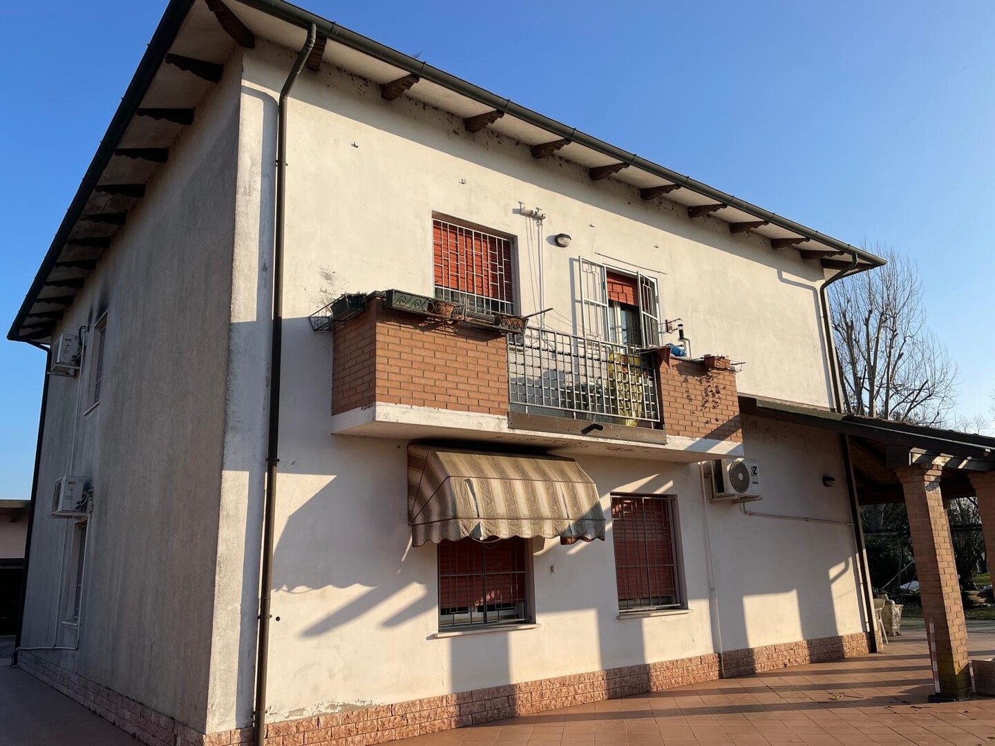 Al piano terra, l’immobile si presenta come un’area estremamente versatile e di servizio, composta da una confortevole taverna, una camera aggiuntiva, un bagno e spazi pratici come la cantina, la lavanderia e la dispensa. A completare il piano, l’esterno vanta un ampio portico, ideale per momenti di relax all’aperto. Il primo piano ospita la principale zona abitativa, caratterizzata da luminosità e spazi generosi. Qui troviamo il soggiorno, la sala da pranzo e la cucina separati, perfetti per la vita quotidiana, due camere da letto, un bagno e un’ulteriore lavanderia. L’intero piano è servito da ben tre balconi, che aggiungono sfogo esterno ad ogni ambiente. A completare la proprietà, un fabbricato accessorio separato di circa 115 mq, con ampio vano deposito, garage, lavanderia e ulteriori due cantine.