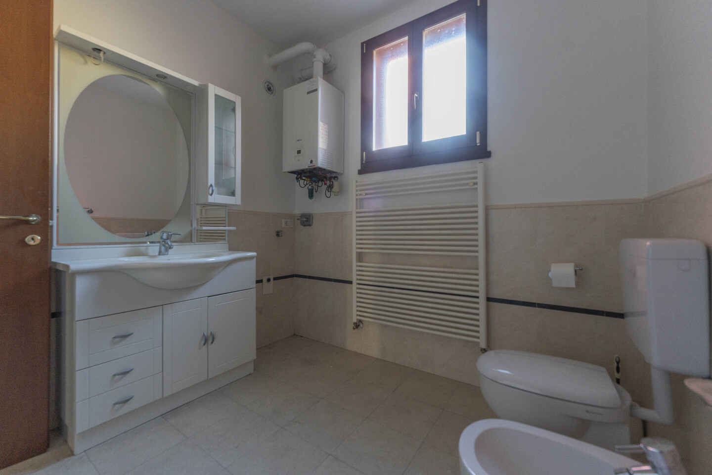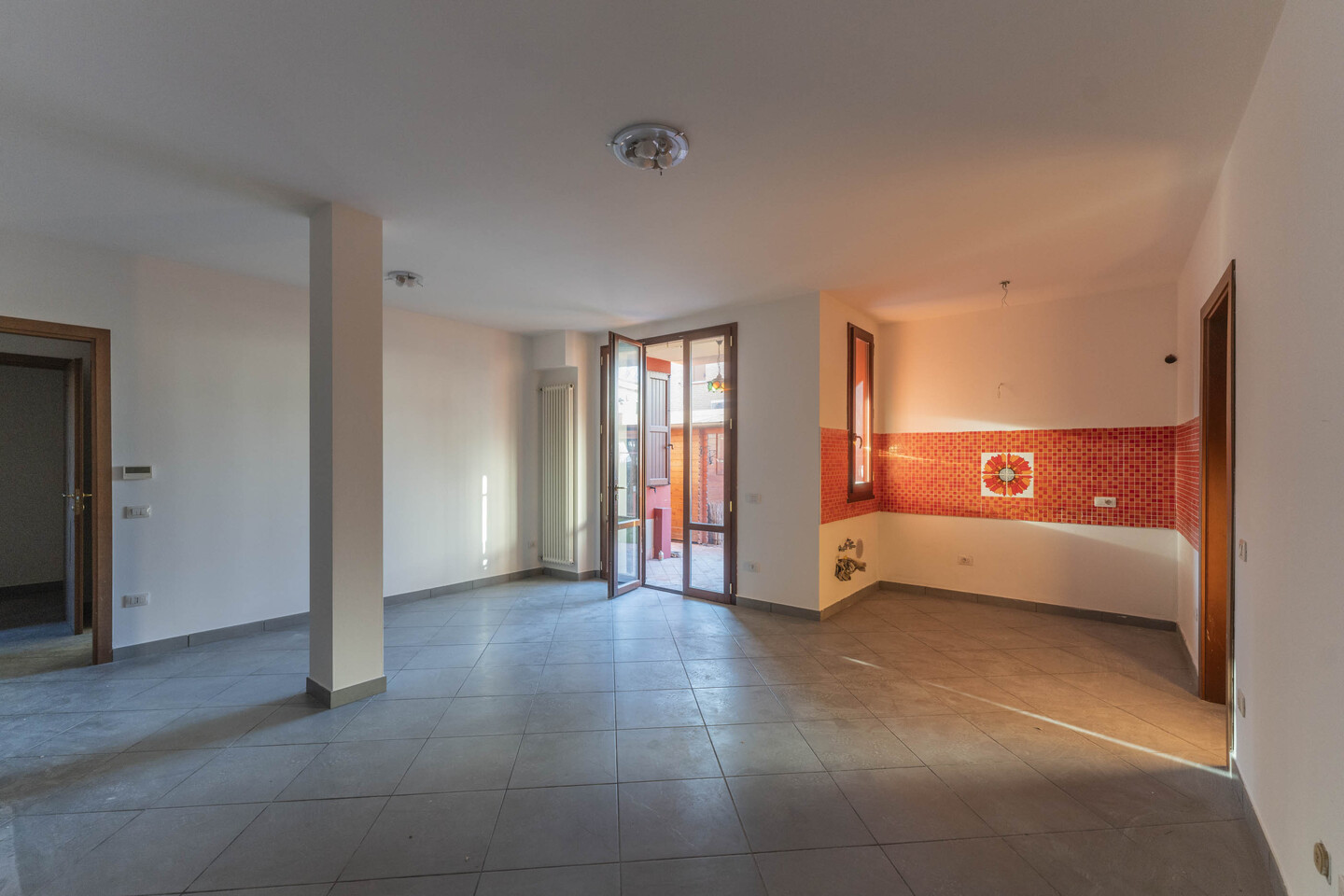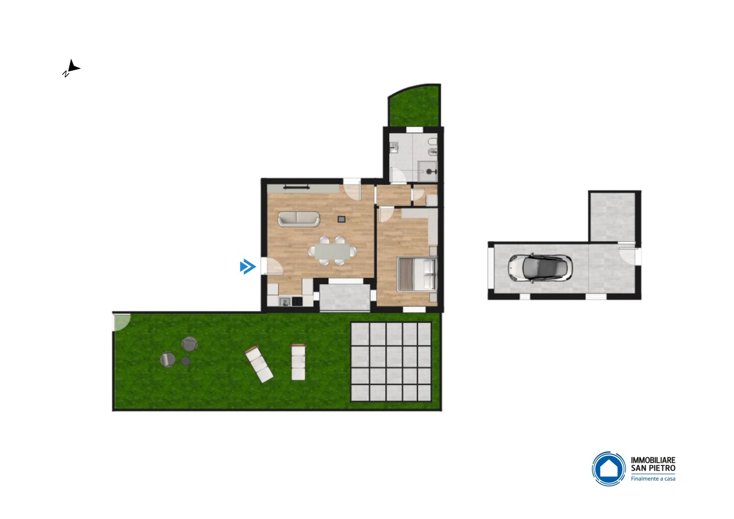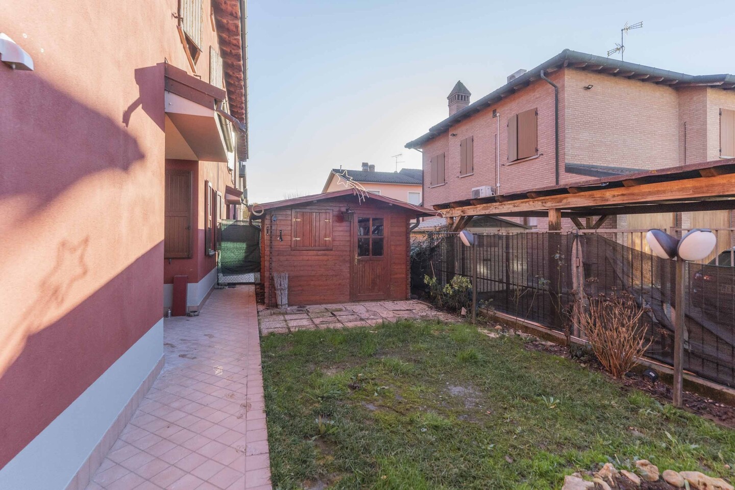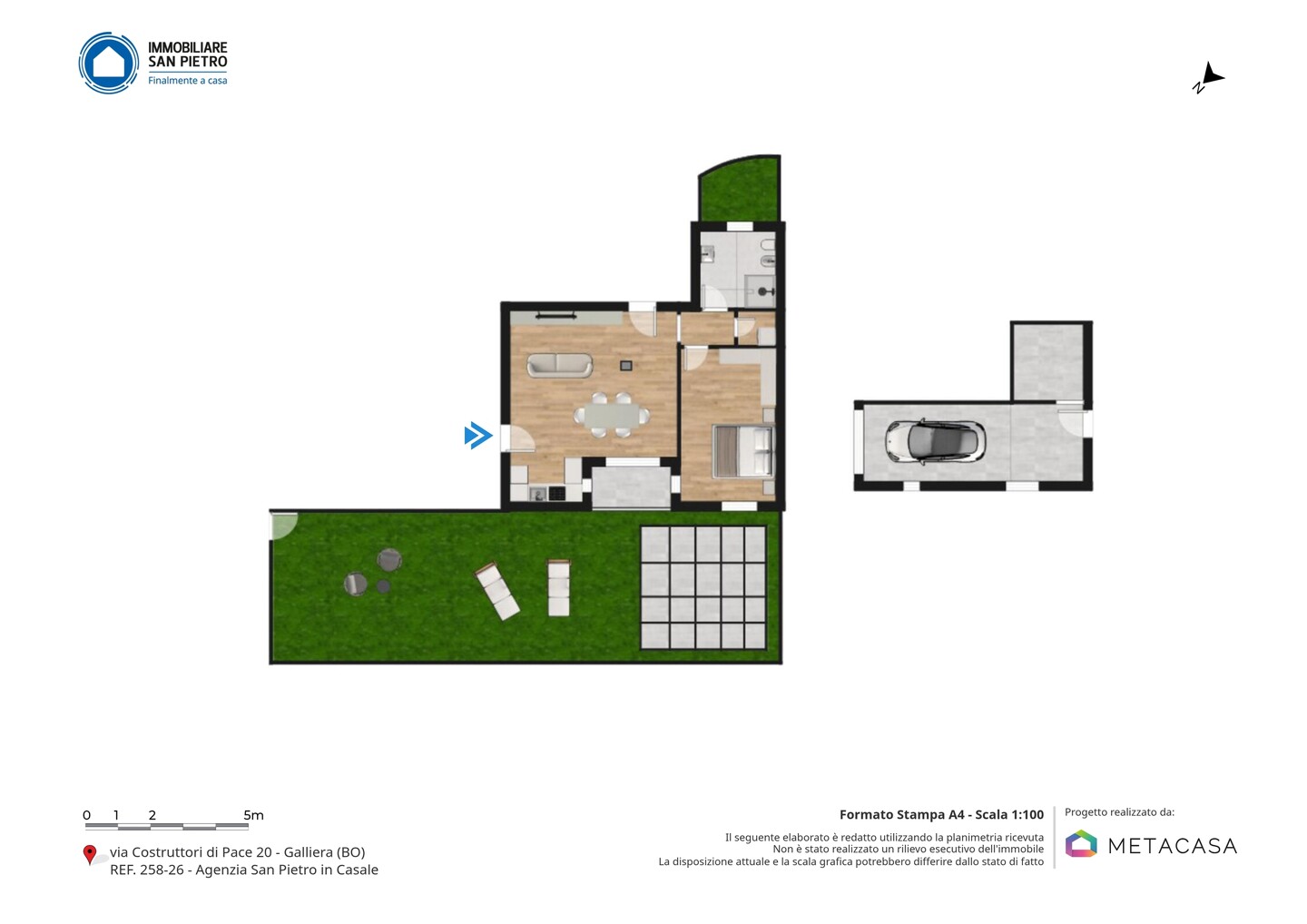 In palazzina costruita nel 2008, disponiamo di appartamento posto al piano terra con corte privata. L’immobile è composto da ingresso su soggiorno con cucina a vista, disimpegno zona notte, 1 camera matrimoniale, 1 bagno finestrato e 1 ripostiglio. Completano la proprietà 1 ampia autorimessa e 1 cantina, collegate direttamente all’abitazione, oltre al posto auto esclusivo attiguo alla corte privata. L’immobile si presenta in buone condizioni, con impianti a norma, termo autonomo, infissi in doppiovetro legno e porta blindata.