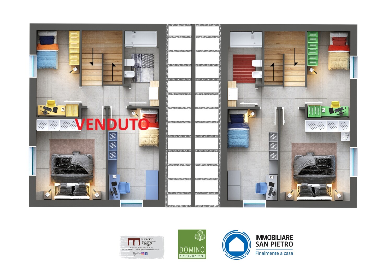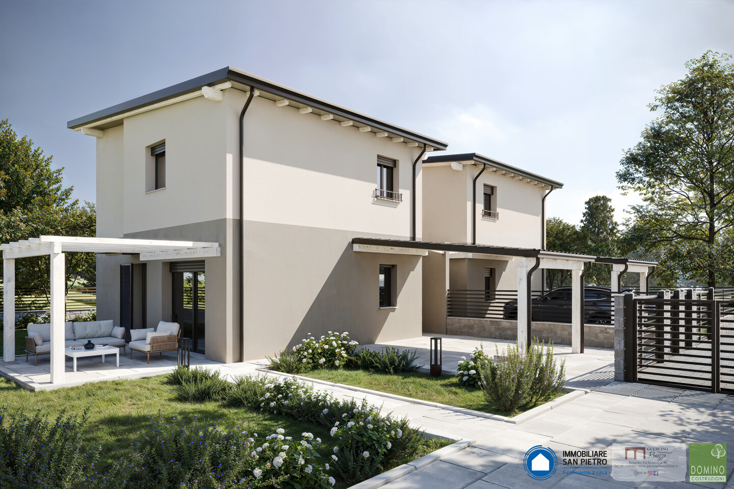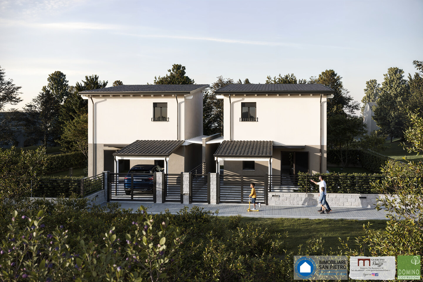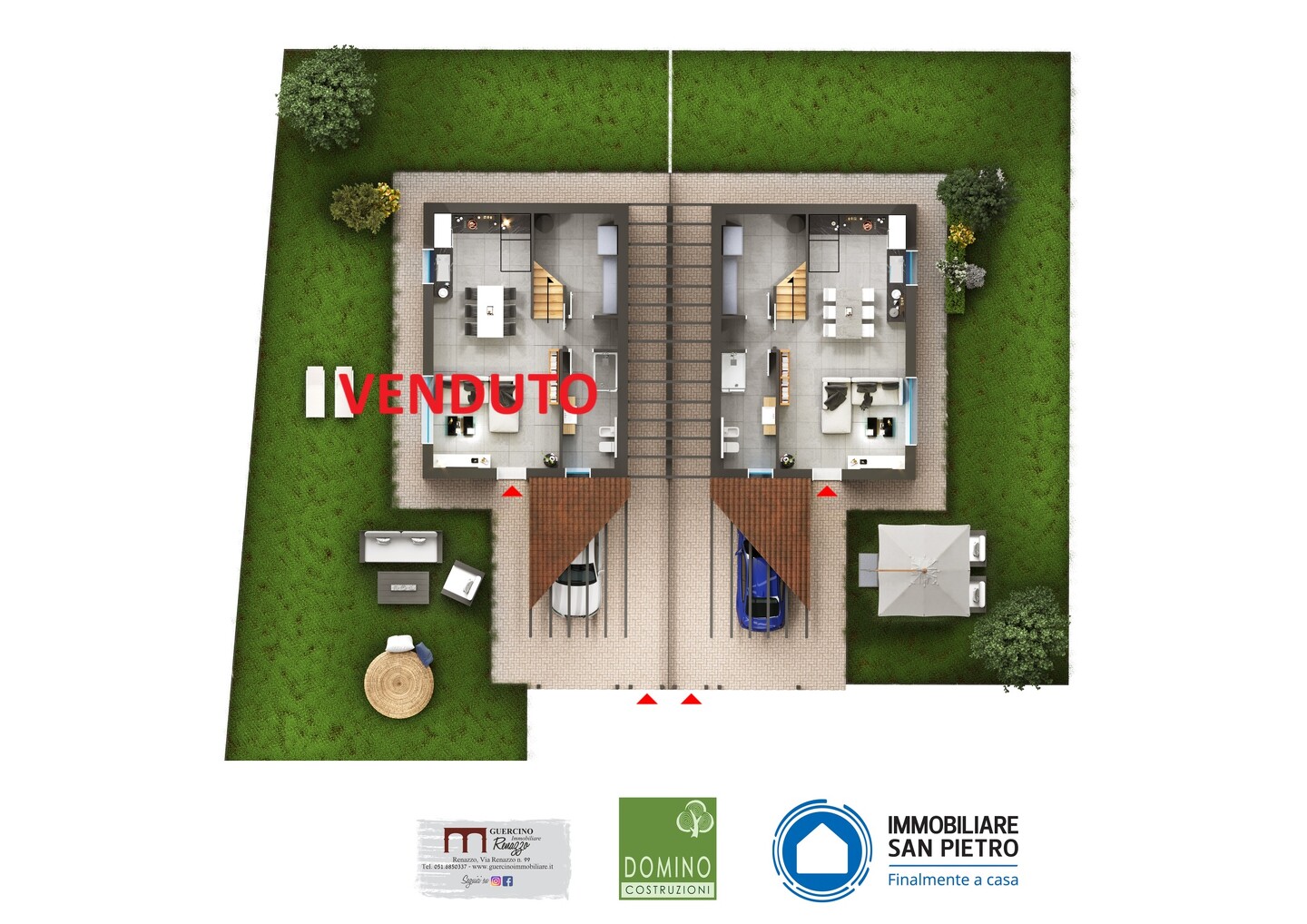 Splendida porzione di bifamiliare su due livelli con giardino privato che circonda l’immobile su tre lati. Al piano terra, spazio aperto con soggiorno e cucina a vista, bagno e locale tecnico. Al piano superiore, tre camere da letto e un ulteriore bagno.