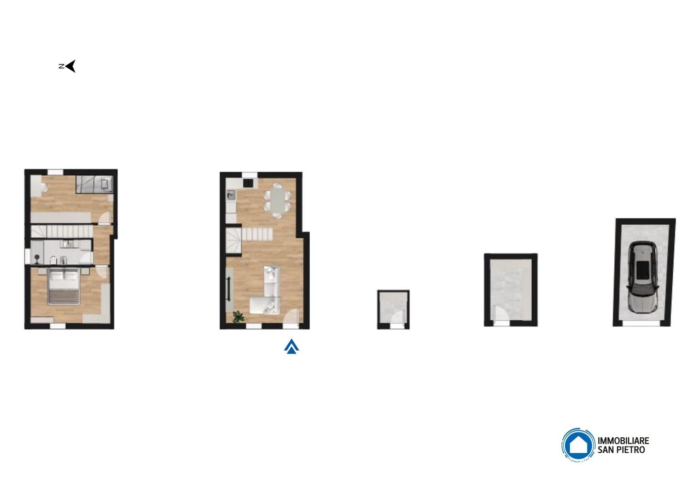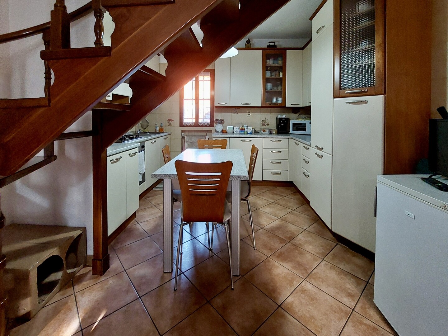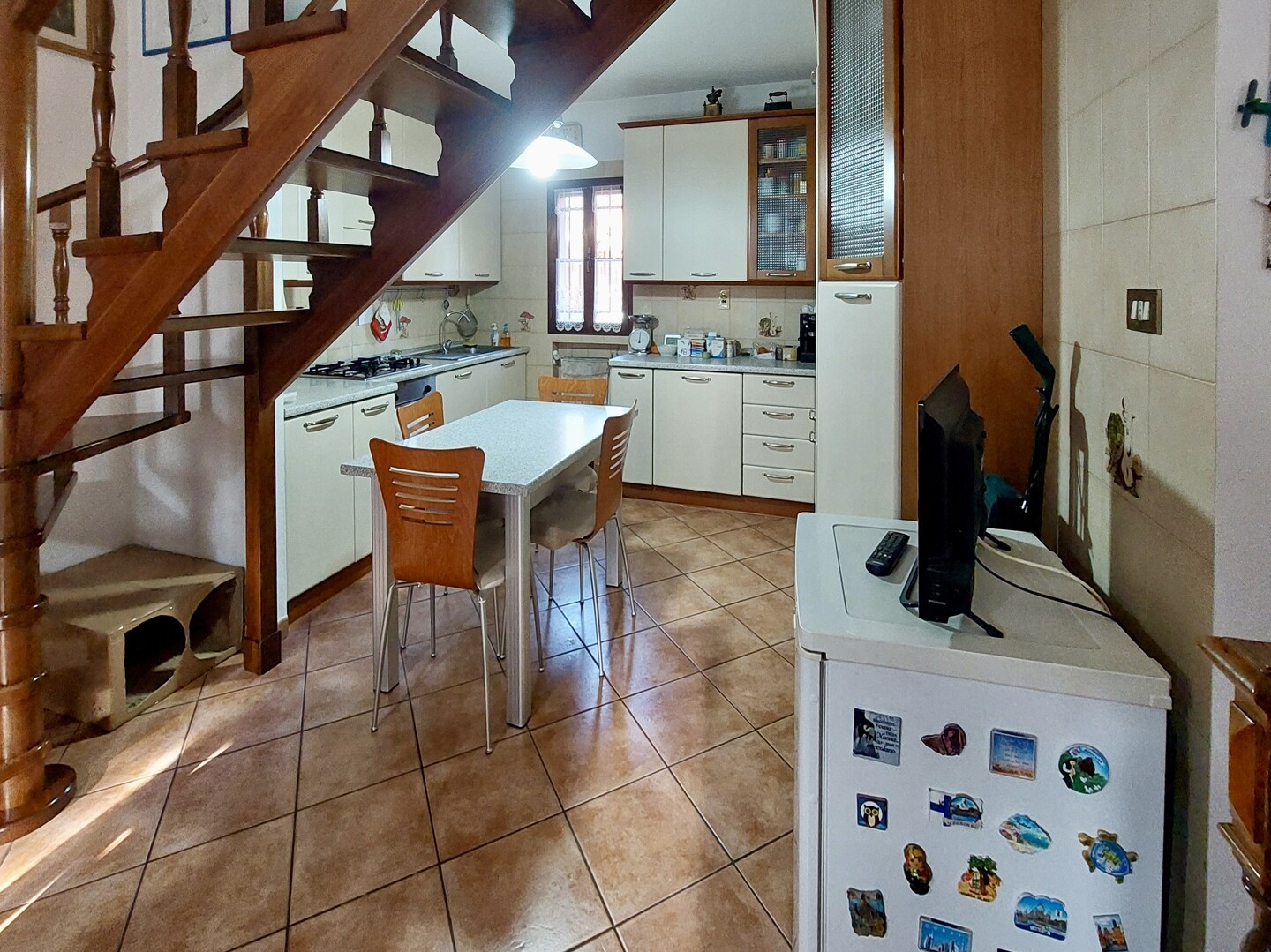 Al piano terra si apre un accogliente soggiorno con angolo cottura, luminoso e ben distribuito.