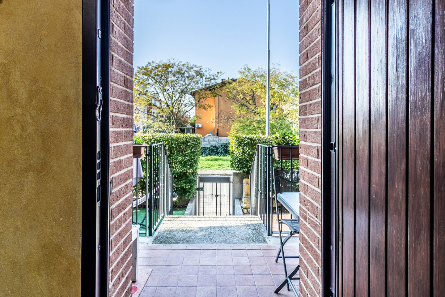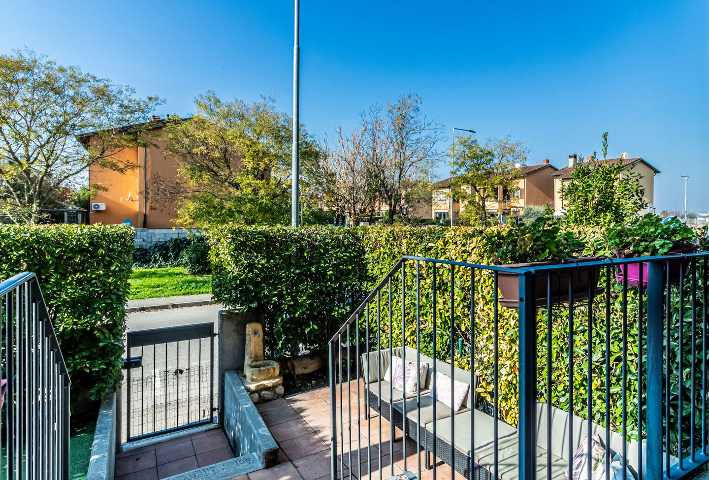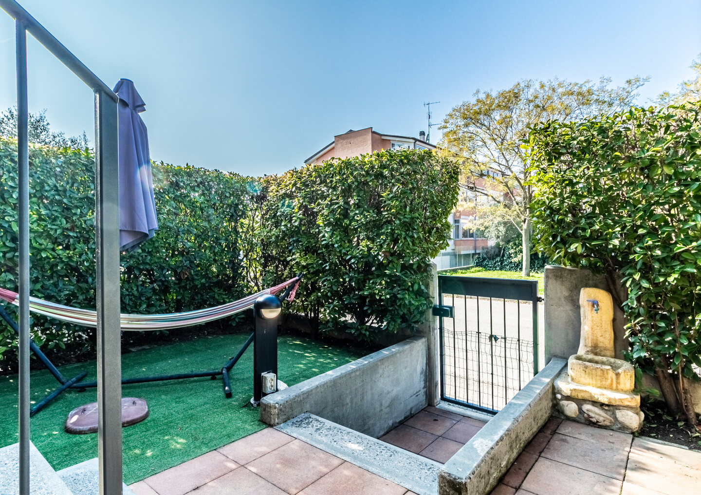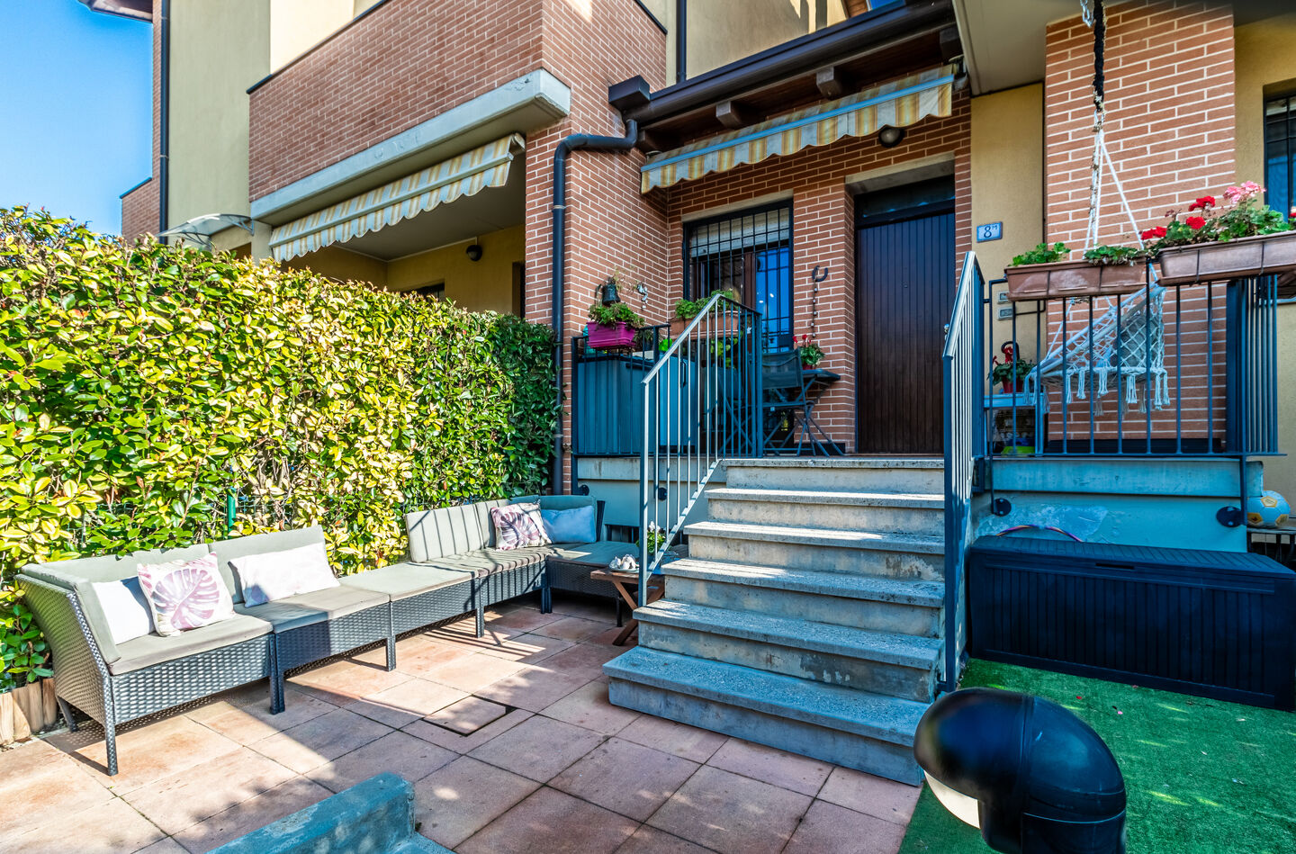 Il soggiorno esce su un terrazzo che guarda il proprio giardino privato.