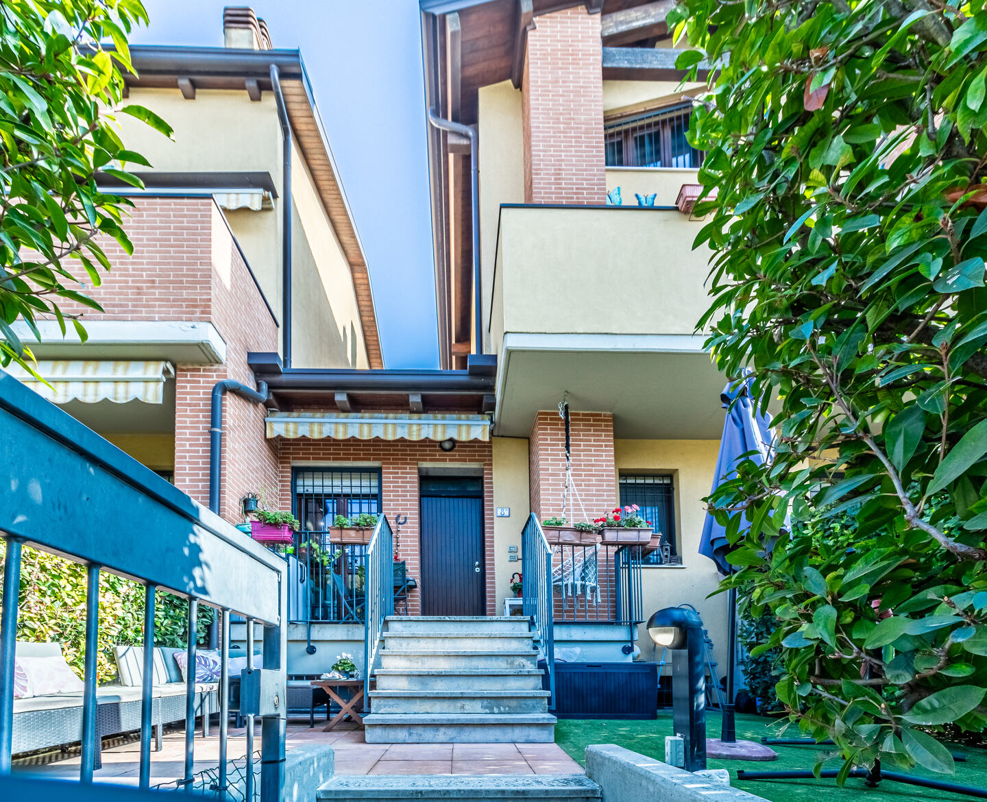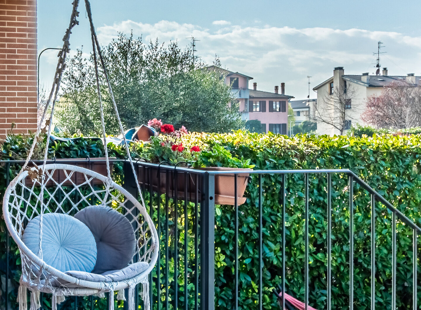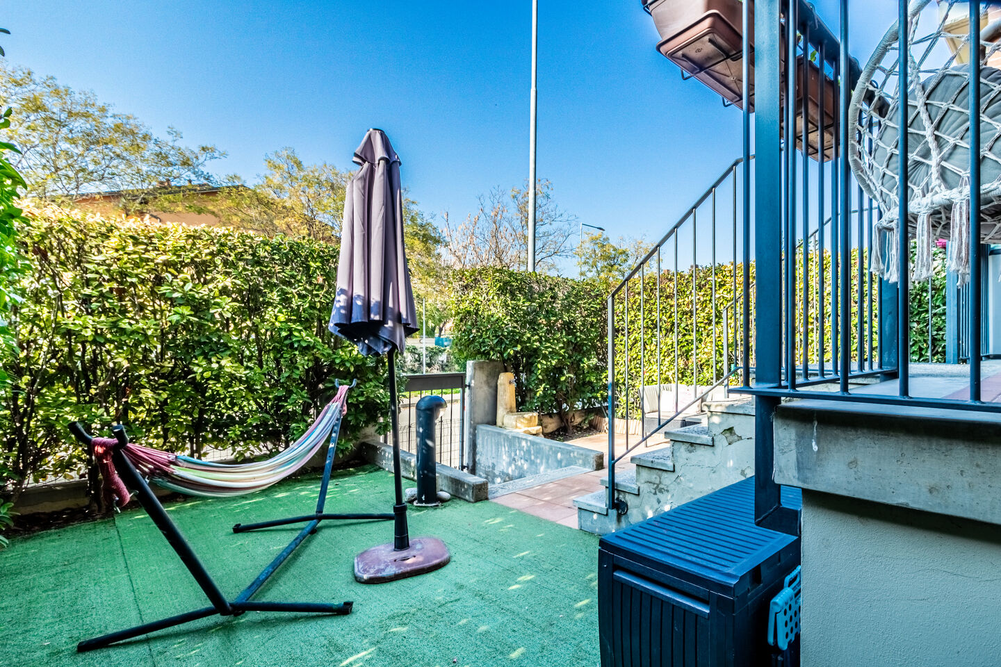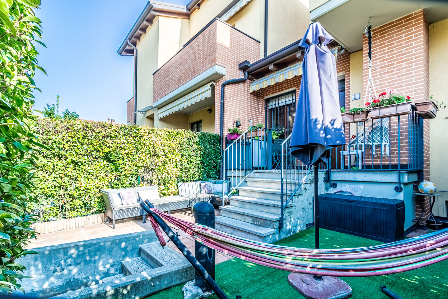 Il soggiorno esce su un terrazzo che guarda il proprio giardino privato.