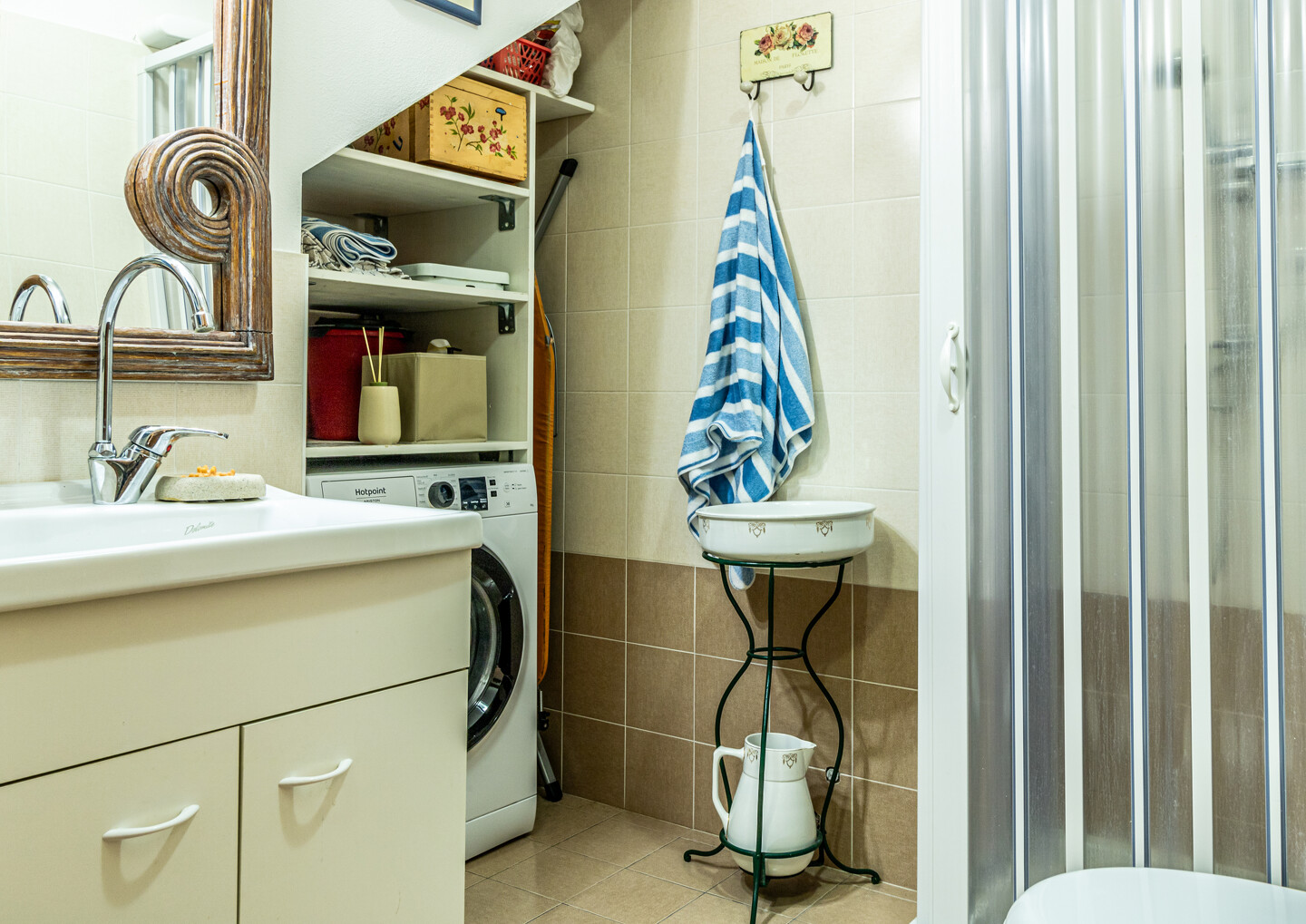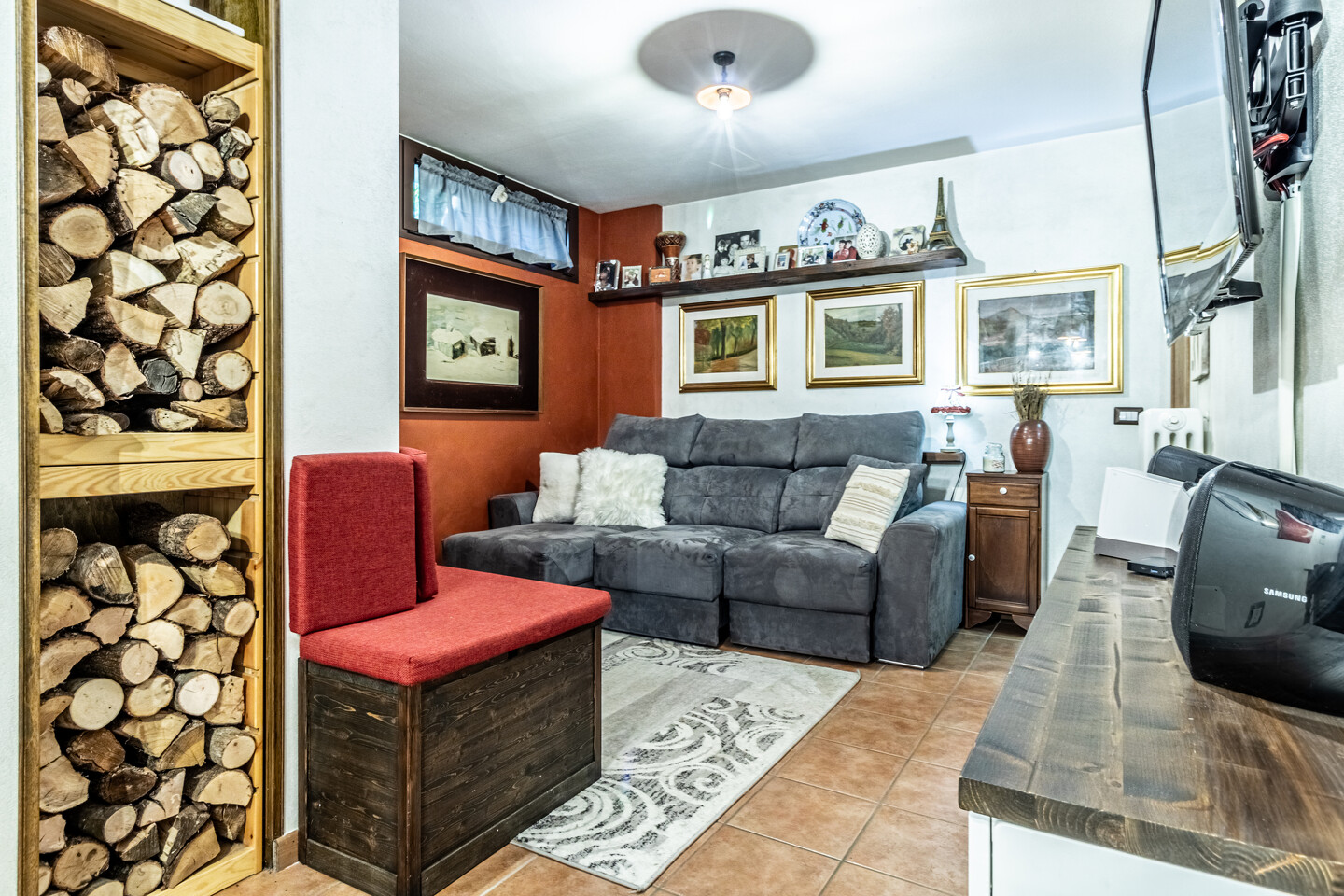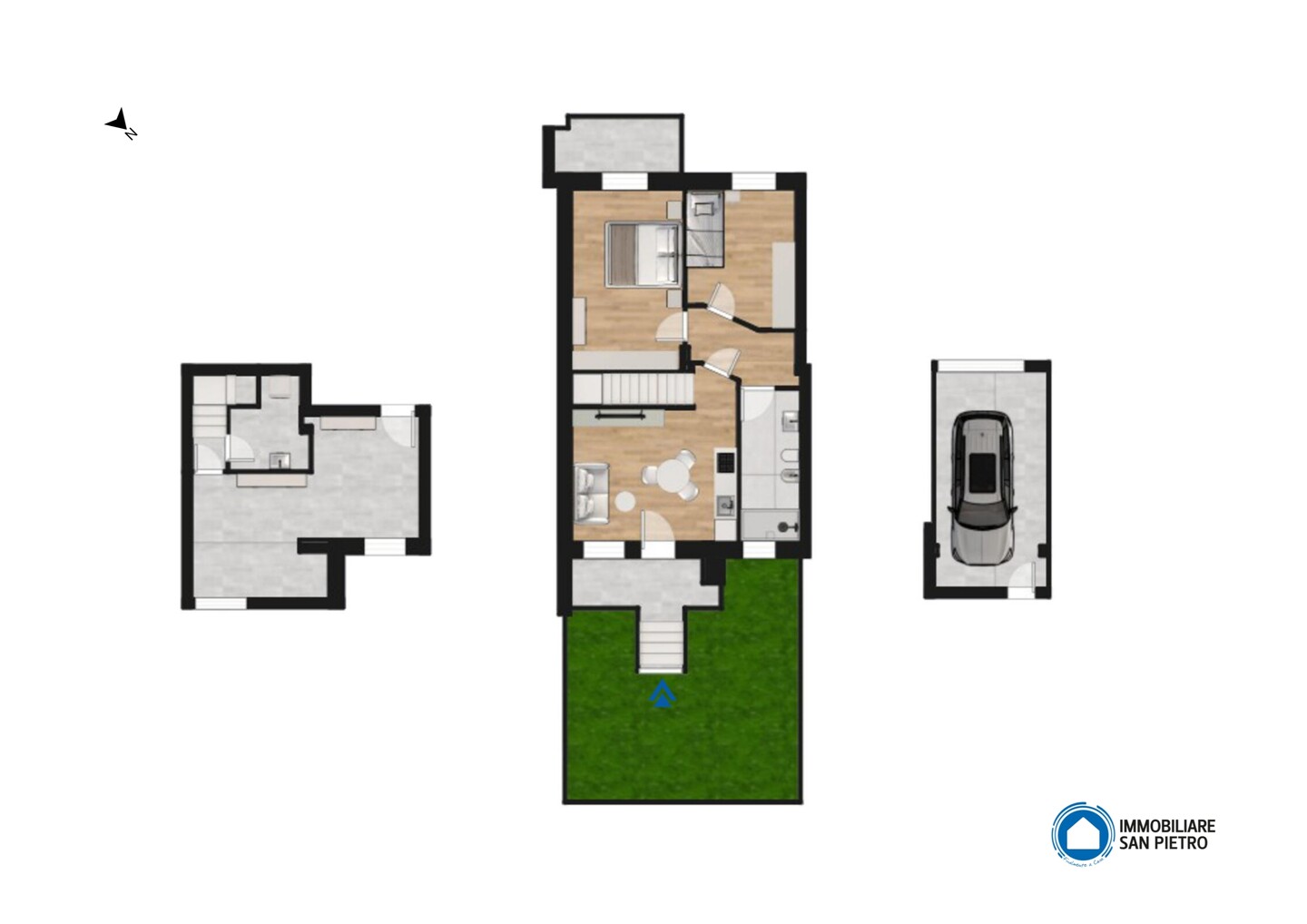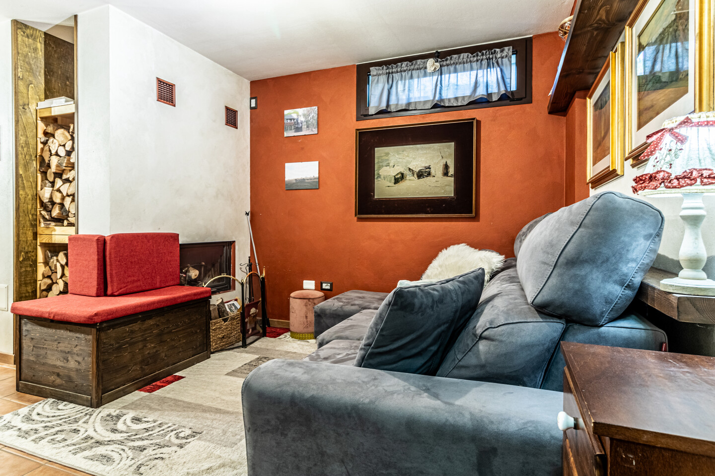Questo appartamento si compone di soggiorno con angolo cottura, due camere da letto ed un bagno. Tramite un collegamento interno si accede ad una ampia taverna con caminetto ed accesso al proprio garage. Al piano taverna si trova poi un ampio vano ad uso lavanderia.
