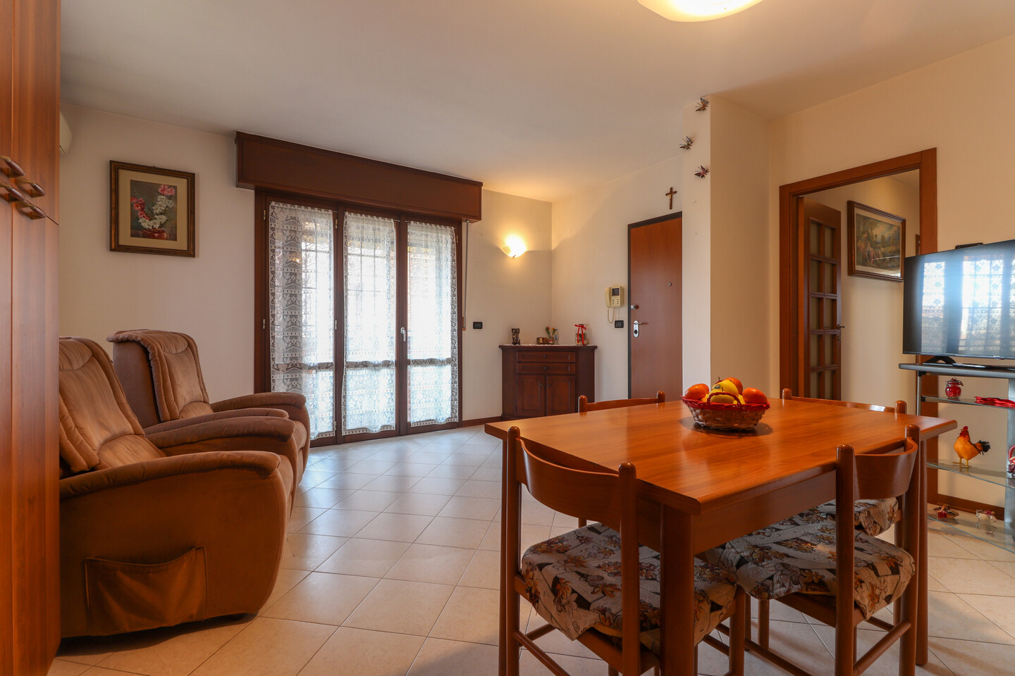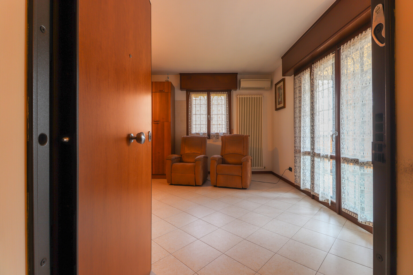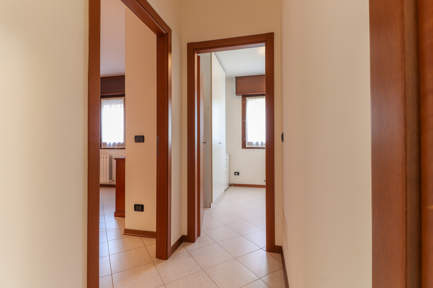 L’unità abitativa si sviluppa su un unico livello ed è così composta: ingresso su soggiorno con cucina e terrazzo coperto di oltre 10 mq, disimpegno, due camere da letto e bagno. Al piano terra si trovano il garage, la cantina ed una porzione di cortile pavimentato dove poter parcheggiare comodamente altre due auto. APE in fase di redazione