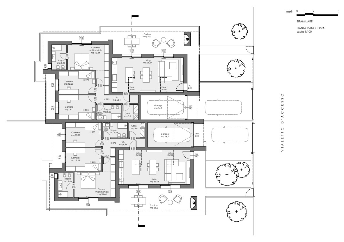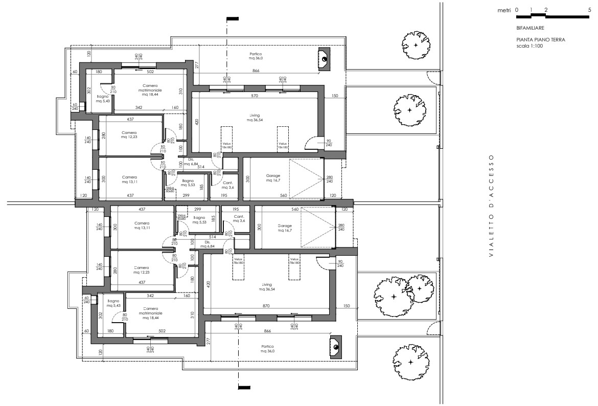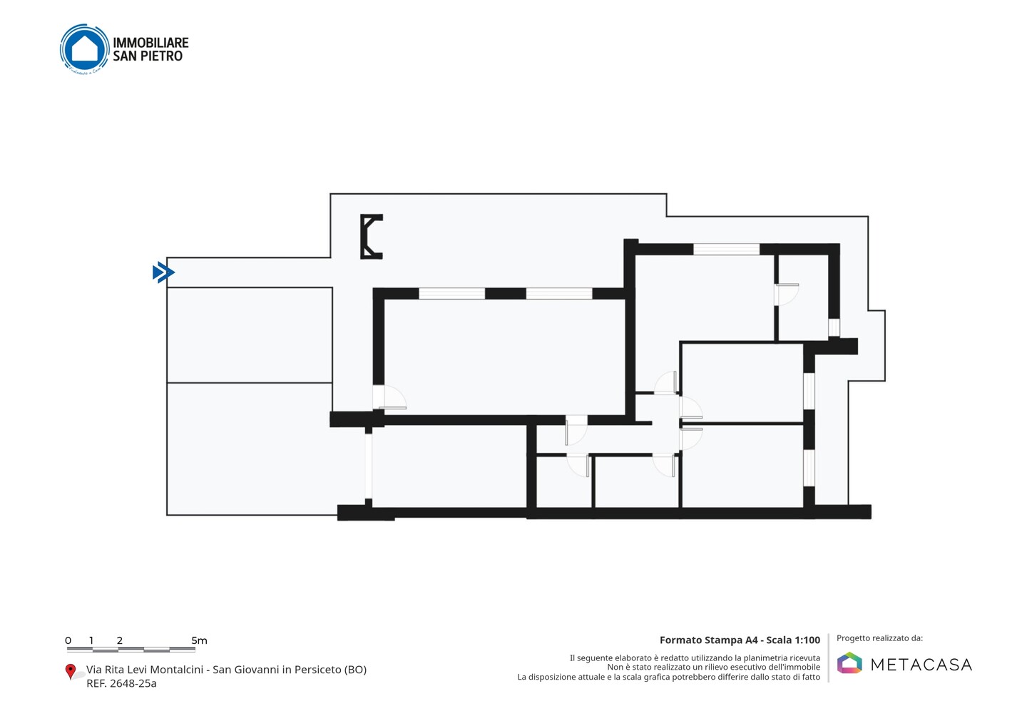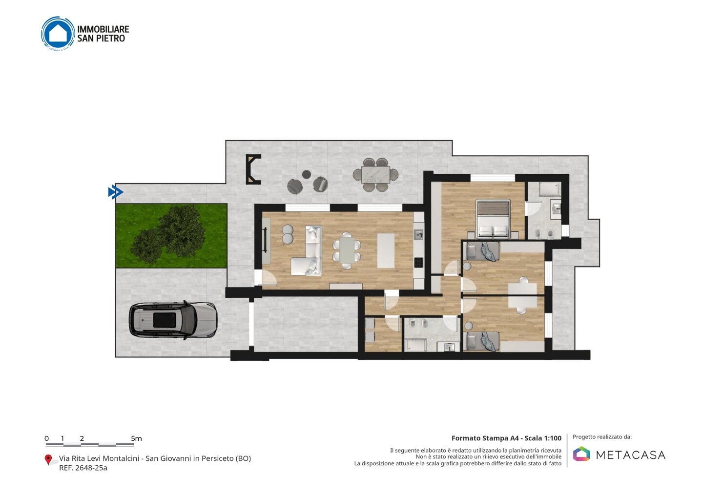 La villetta di 183 mq complessivi, è libera su 3 lati, si sviluppa interamente al piano terra e sorge su terreno della Partecipanza.