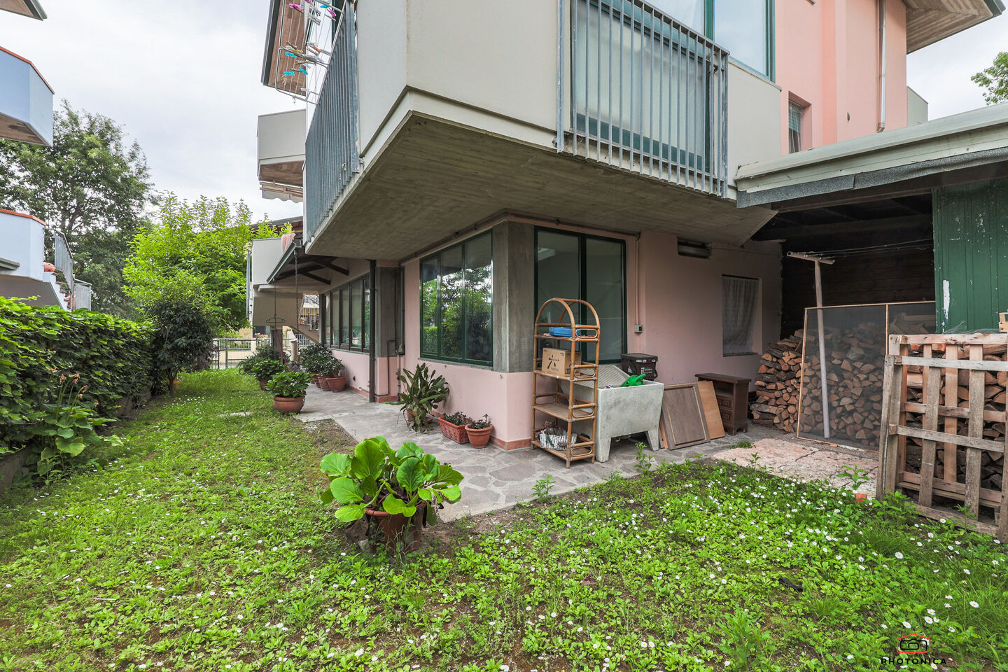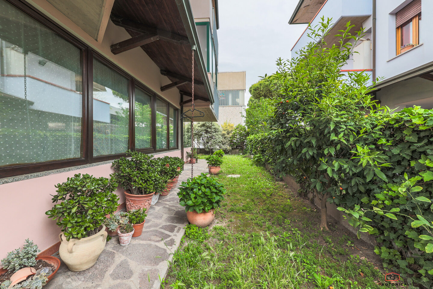Al piano terra troviamo un accogliente giardino privato e un ampio vano di servizio, perfetto da personalizzare come taverna, studio o area hobby.