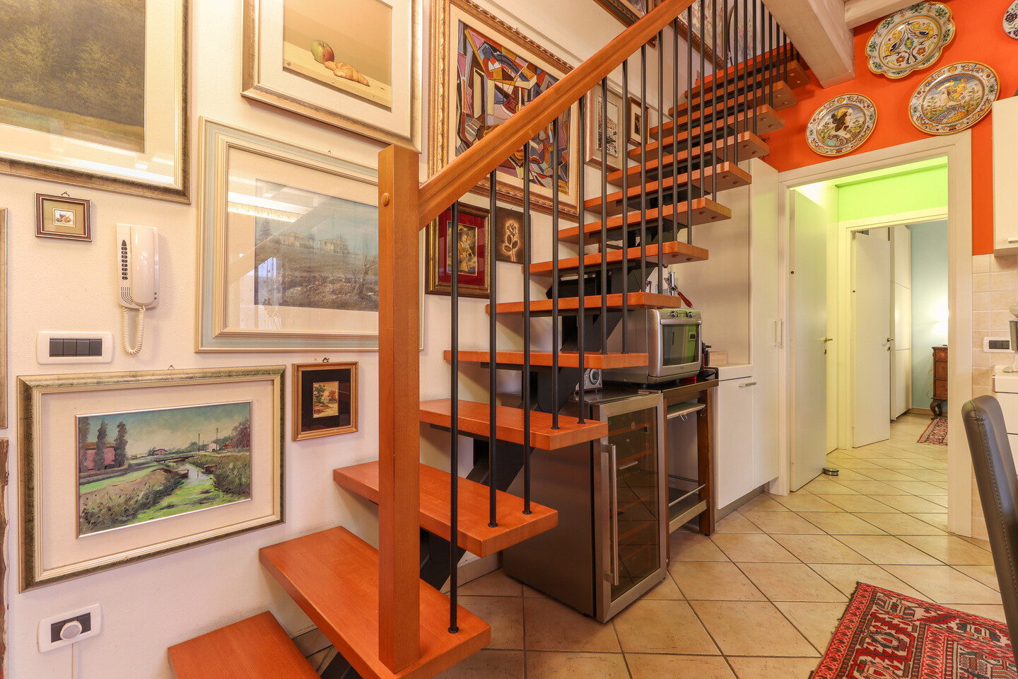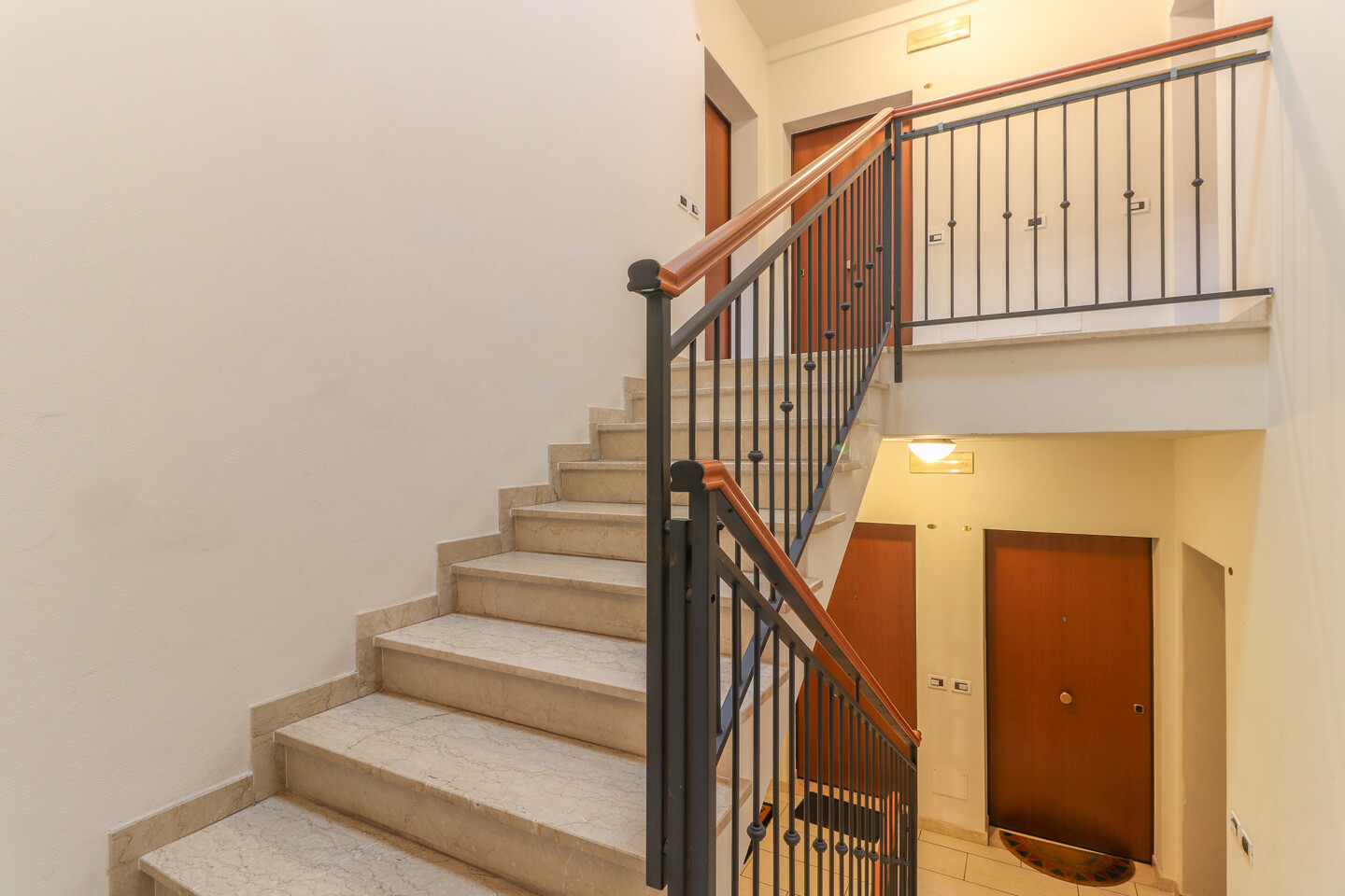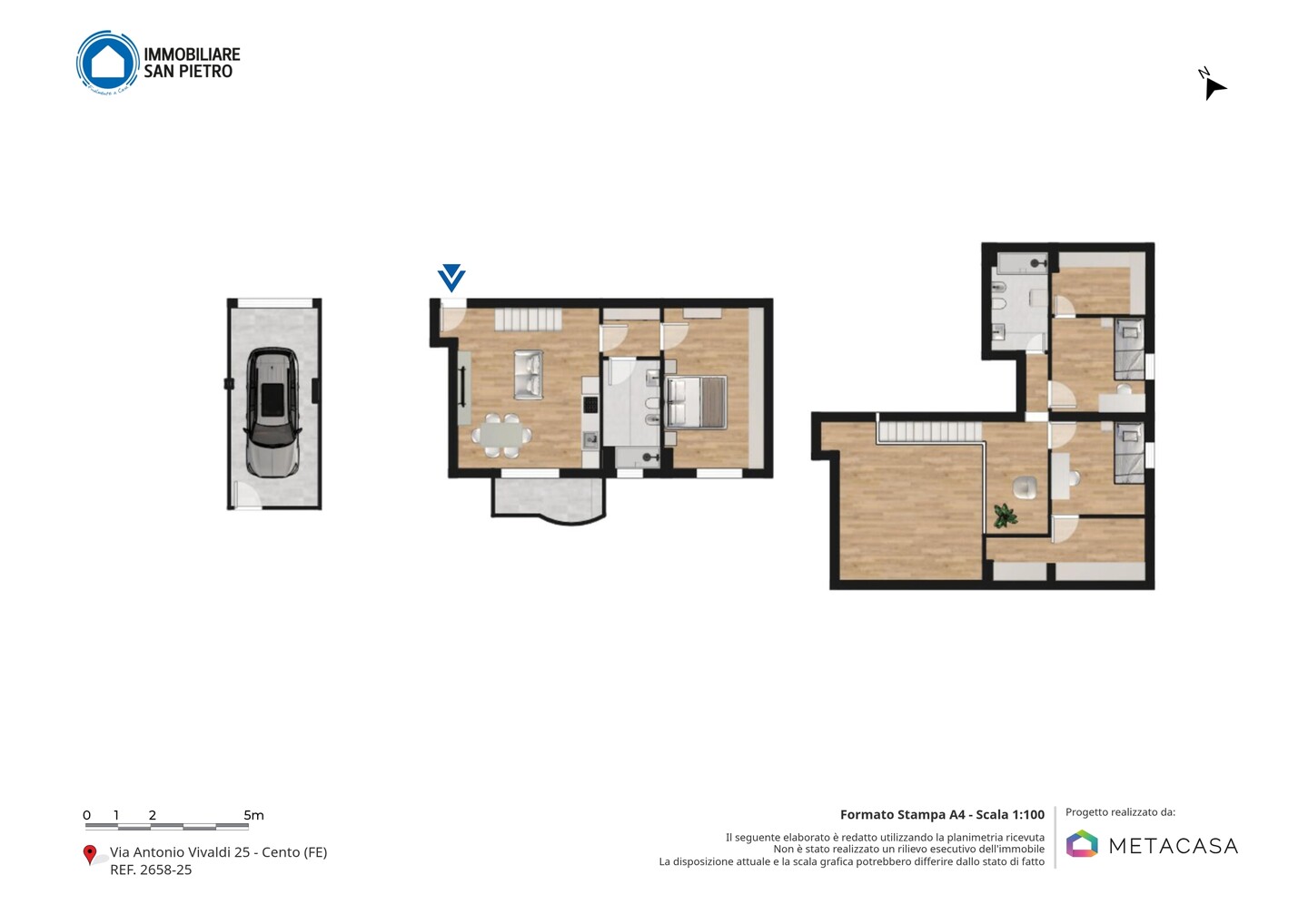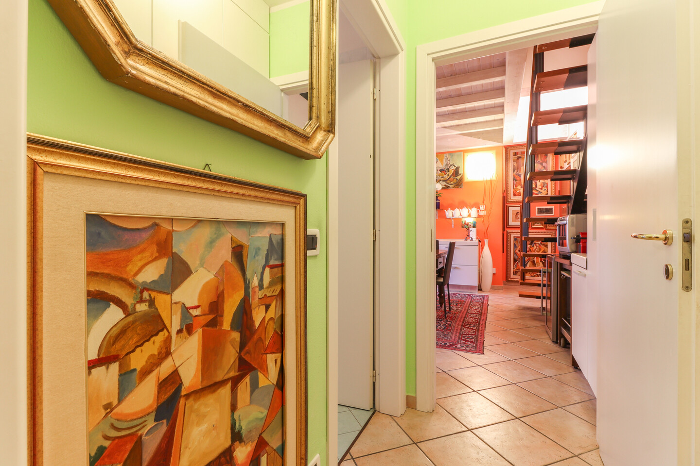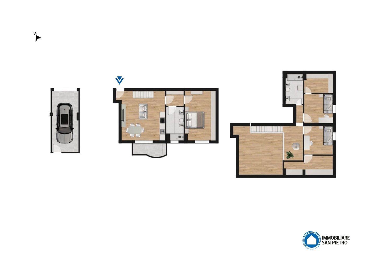 Appartamento posto al piano secondo ed ultimo, disposto su due livelli e così composto: ingresso su soggiorno con angolo cottura e balcone, disimpegno, camera e bagno. Piano sottotetto dove sono presenti altri due ambienti sottotetto utilizzabili come camere da letto con cabine armadio e ulteriore vano ad uso ripostiglio/lavanderia. Al piano terra, con accesso diretto dall’interno, autorimessa di pertinenza.