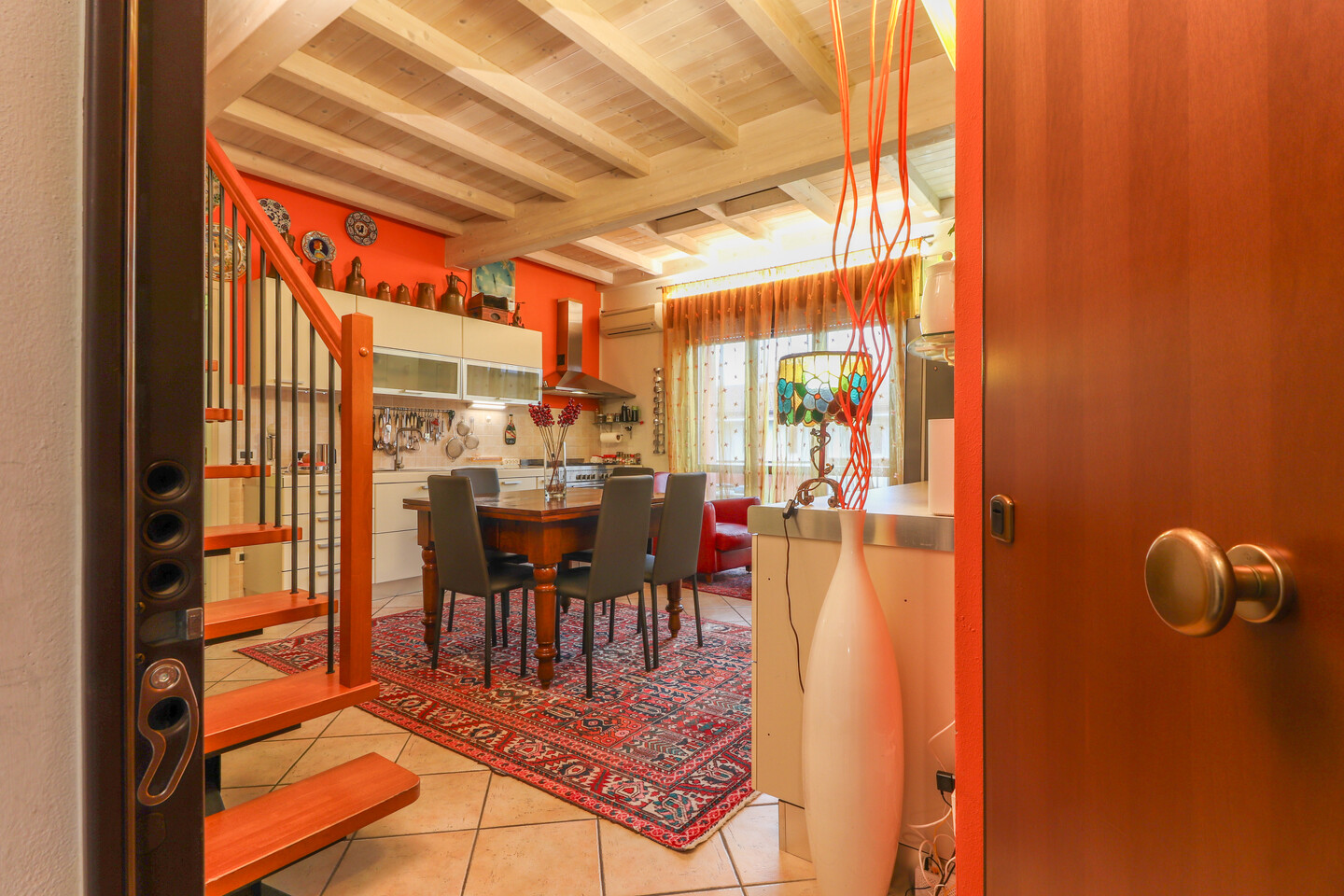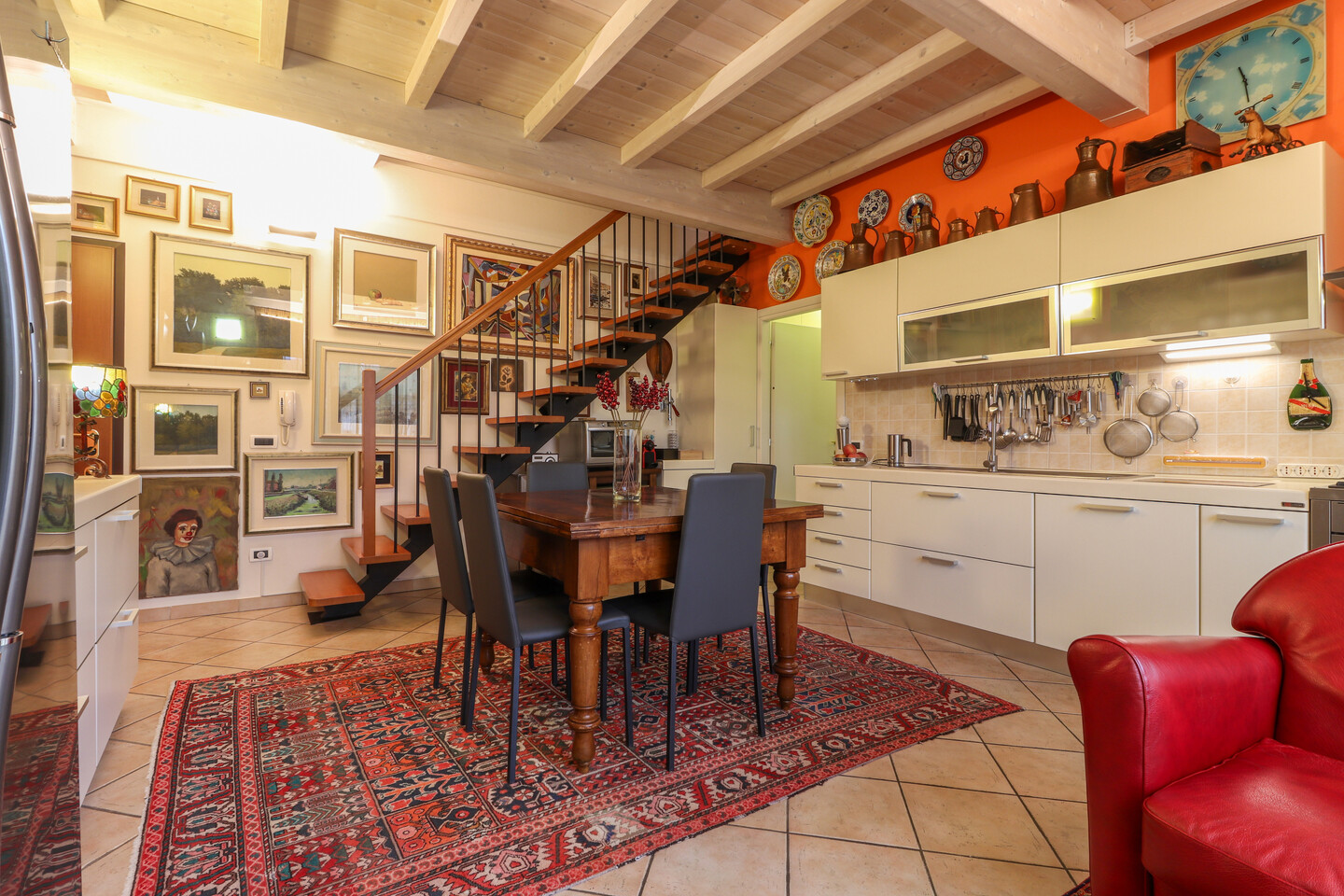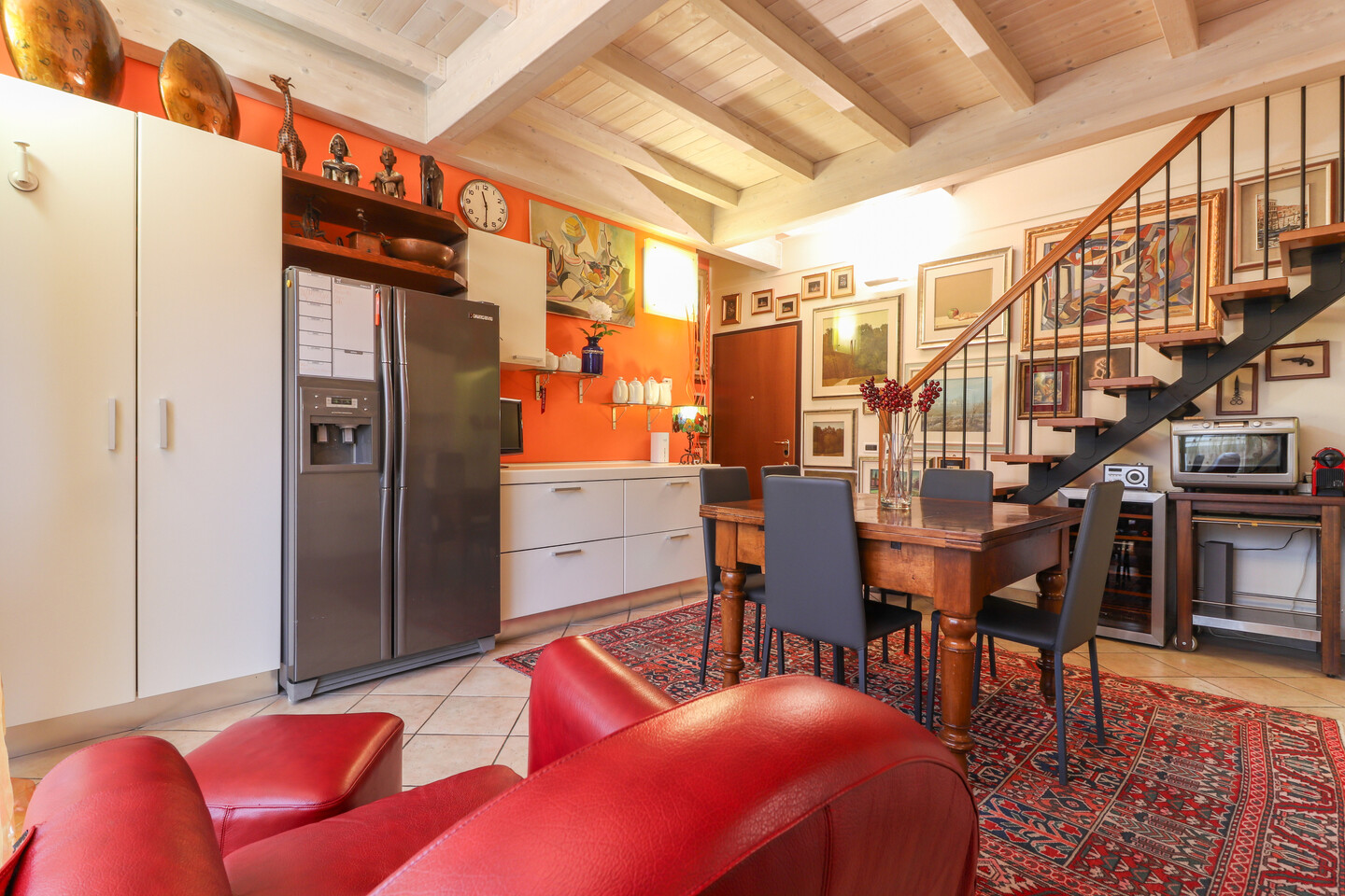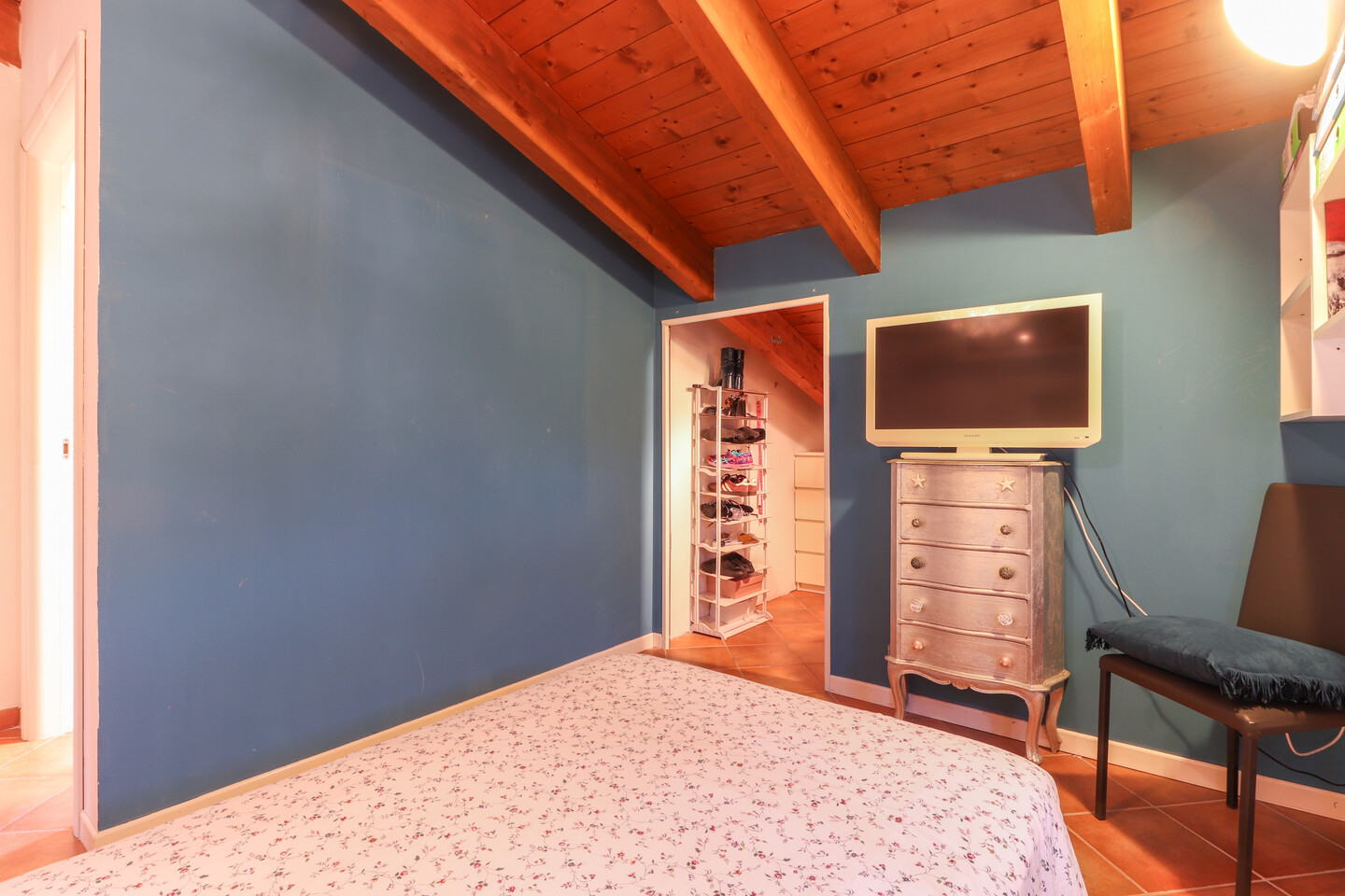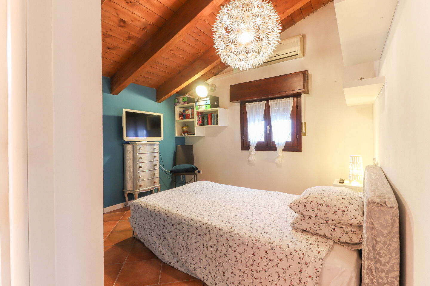 Appartamento posto al piano secondo ed ultimo, disposto su due livelli e così composto: ingresso su soggiorno con angolo cottura e balcone, disimpegno, camera e bagno. Piano sottotetto dove sono presenti altri due ambienti sottotetto utilizzabili come camere da letto con cabine armadio e ulteriore vano ad uso ripostiglio/lavanderia. Al piano terra, con accesso diretto dall’interno, autorimessa di pertinenza.