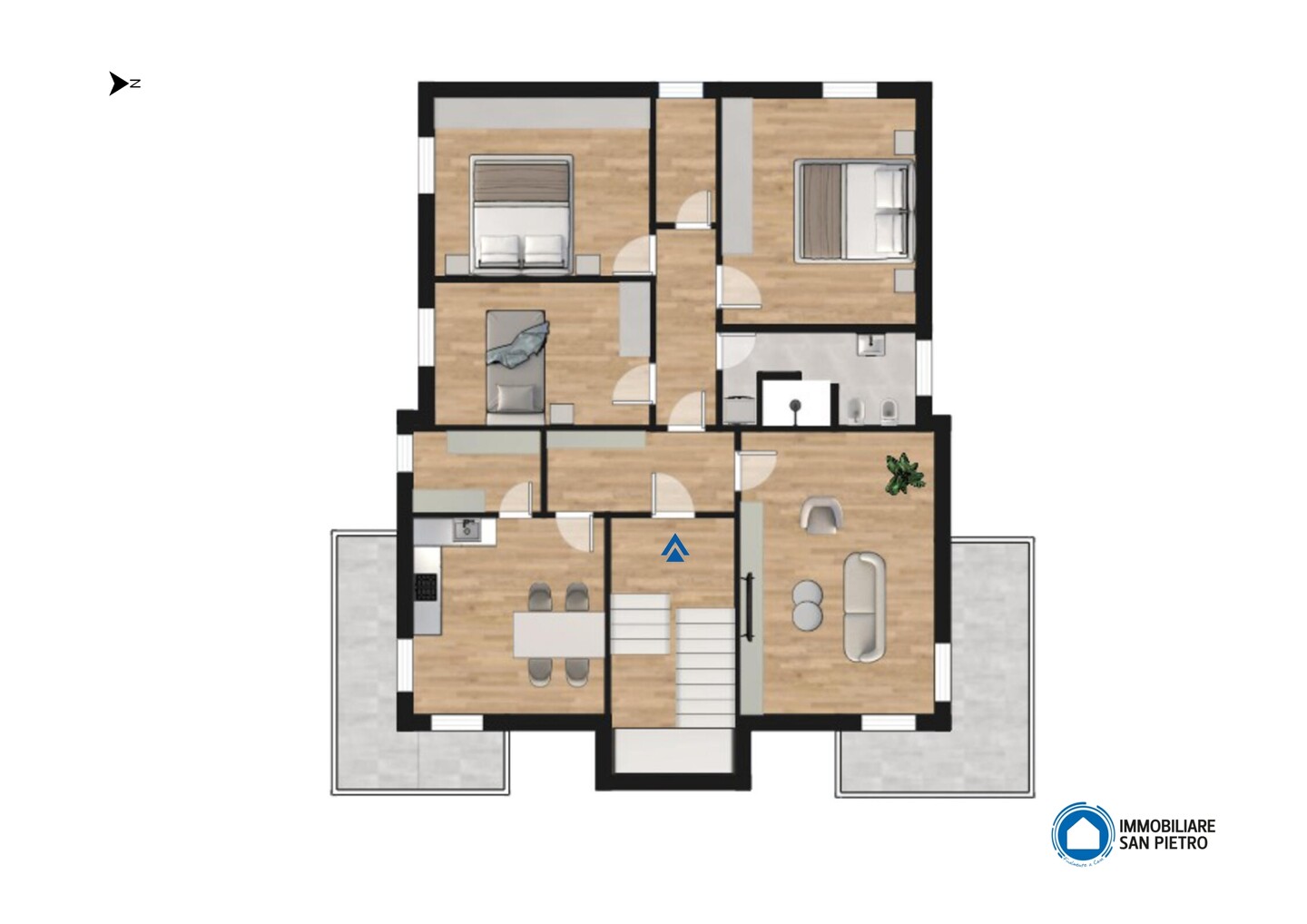 Villa bifamiliare composta da due appartamenti: al piano rialzato abbiamo ingresso su disimpegno, soggiorno con accesso al balcone, cucina abitabile con dispensa ed accesso al secondo balcone, disimpegno, 3 camere da letto e ripostiglio; Al piano primo si sviluppa il secondo appartamento così composto, ingresso su disimpegno, soggiorno con accesso al balcone, cucina abitabile con dispensa ed accesso al secondo balcone, disimpegno, 3 camere da letto e ripostiglio. A completare la proprietà, giardino privato sviluppato su tutti e quattro i lati dell’immobile, 3 autorimesse, 3 cantine ed una lavanderia al piano terra.