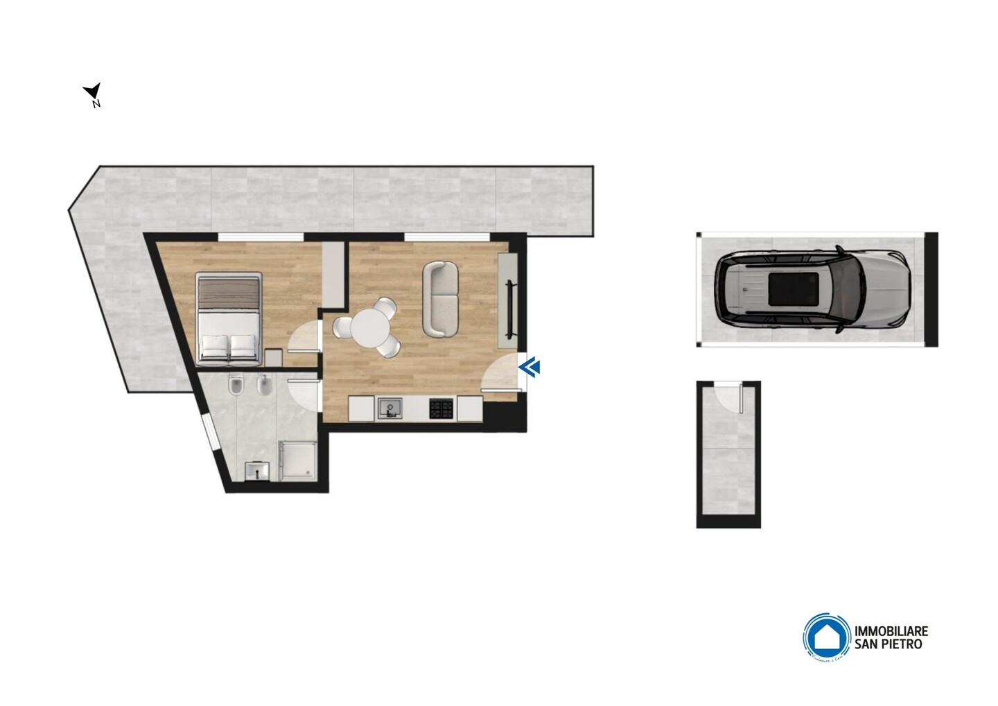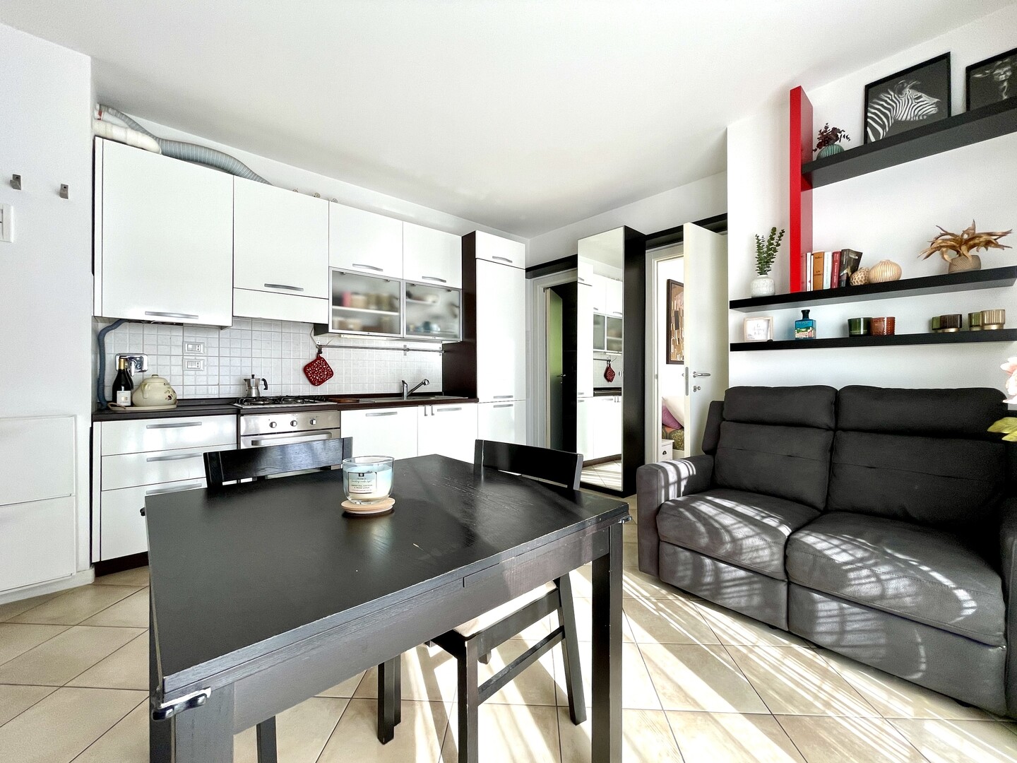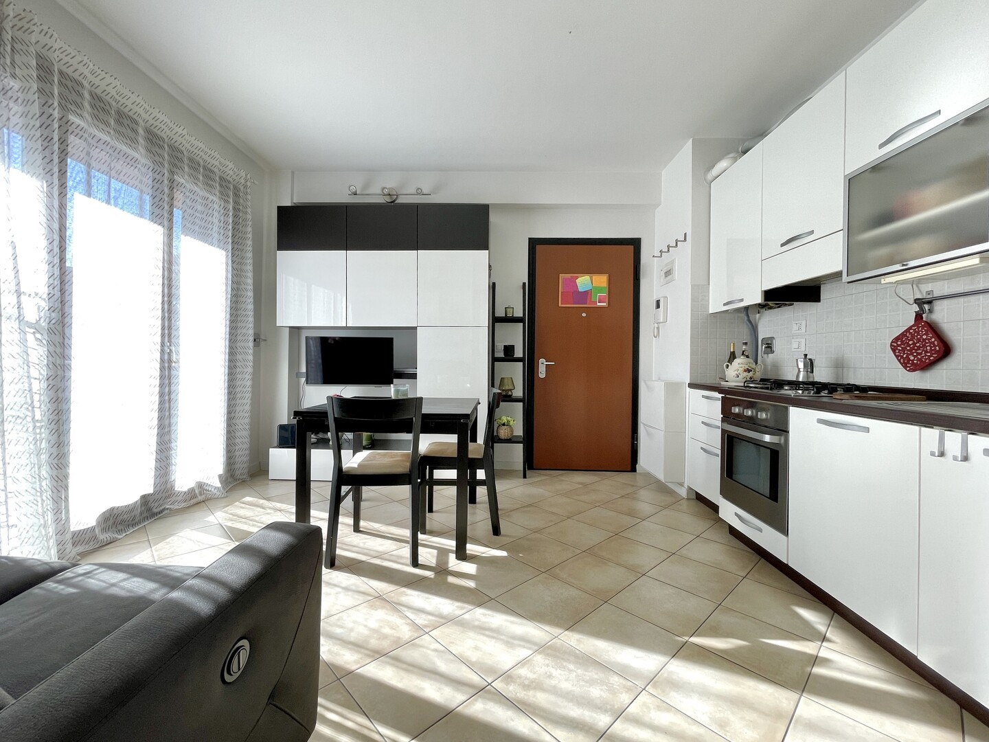 Composto da ingresso su soggiorno con angolo cottura, balcone, camera matrimoniale, bagno, cantina e box auto al piano seminterrato