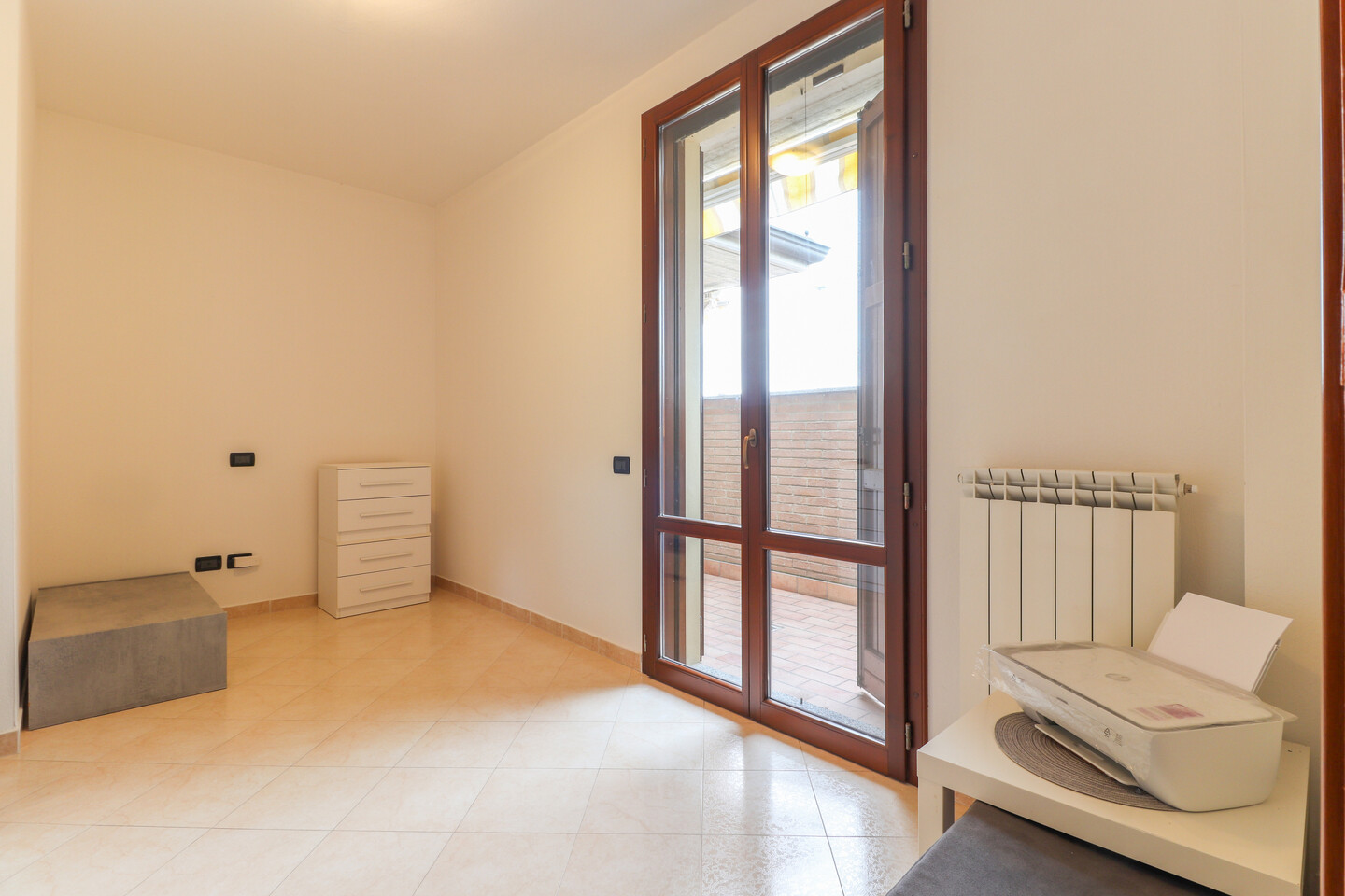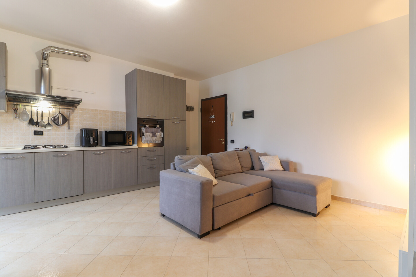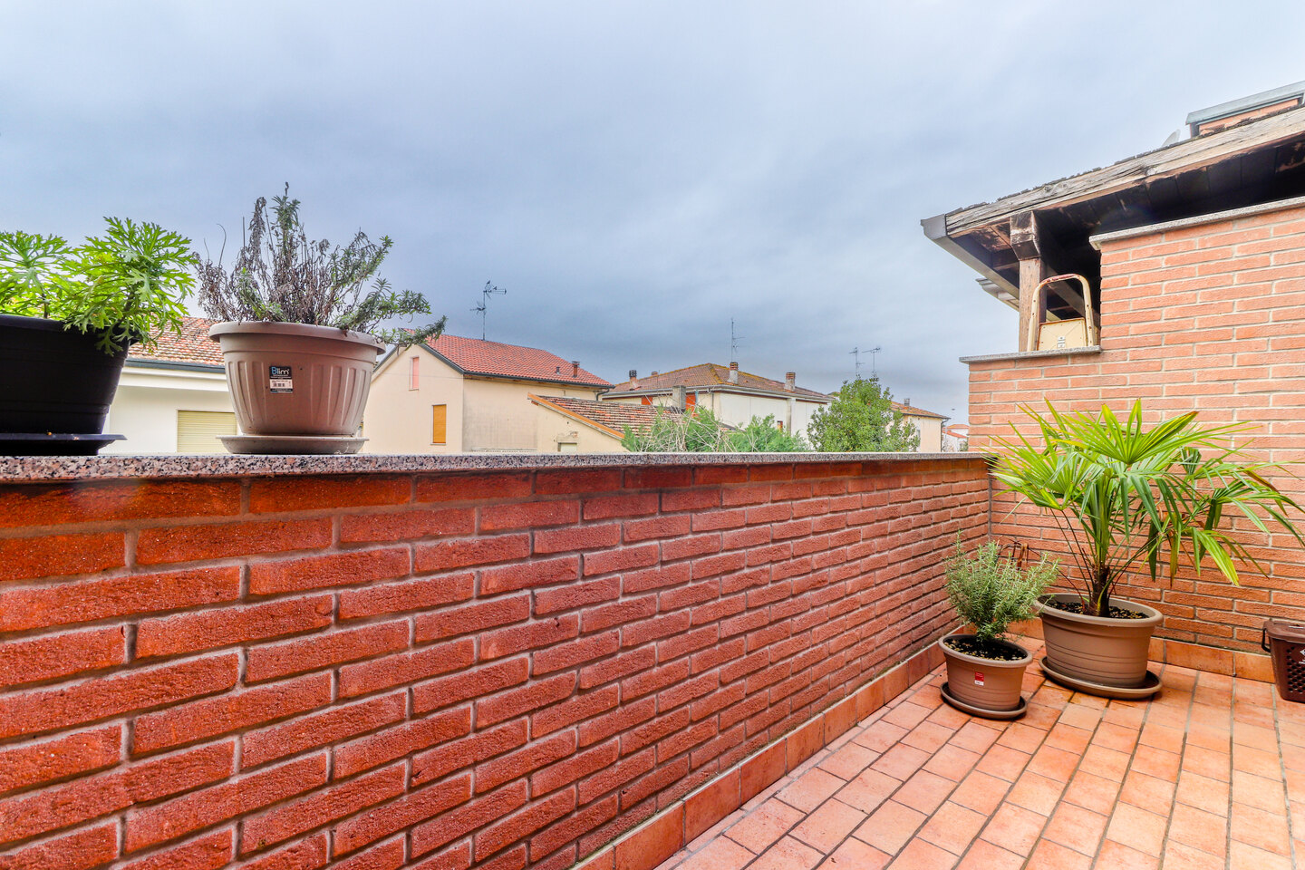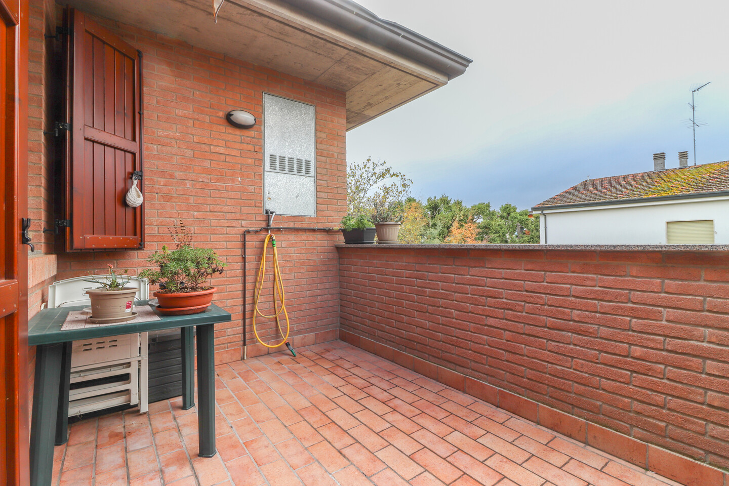 Al primo ed ultimo piano troviamo l’ingresso su soggiorno con angolo cottura e accesso al primo terrazzo abitabile, disimpegno, camera matrimoniale, camera singola con accesso al secondo terrazzino, bagno con box doccia. Al piano terra ampia autorimessa con buoni spazi esterni di manovra.