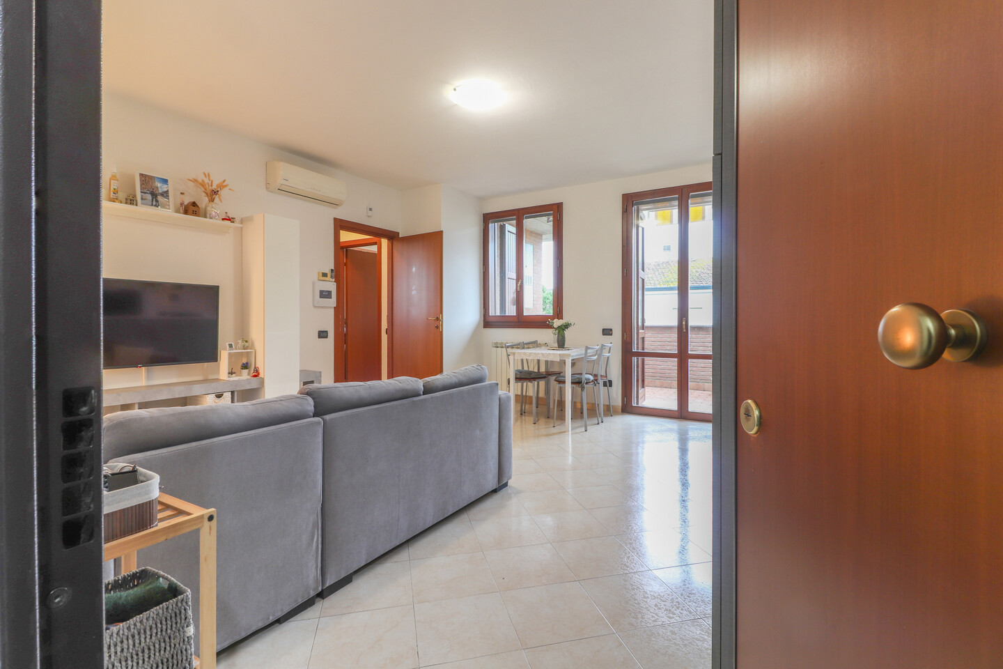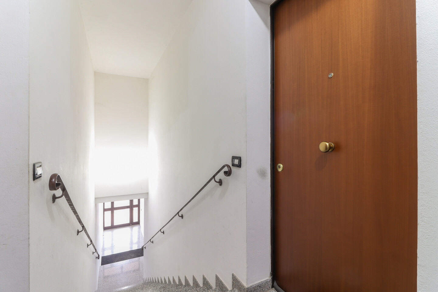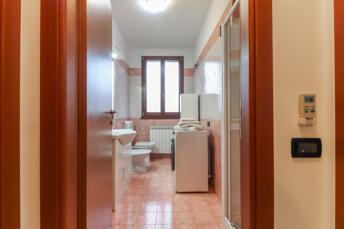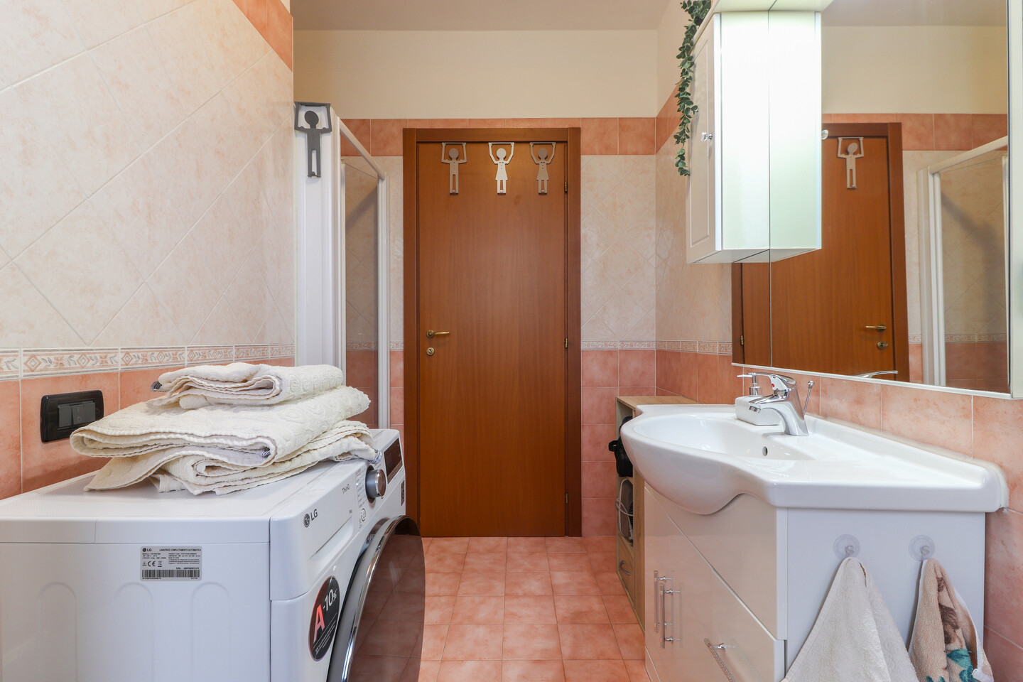 Al primo ed ultimo piano troviamo l’ingresso su soggiorno con angolo cottura e accesso al primo terrazzo abitabile, disimpegno, camera matrimoniale, camera singola con accesso al secondo terrazzino, bagno con box doccia. Al piano terra ampia autorimessa con buoni spazi esterni di manovra.
