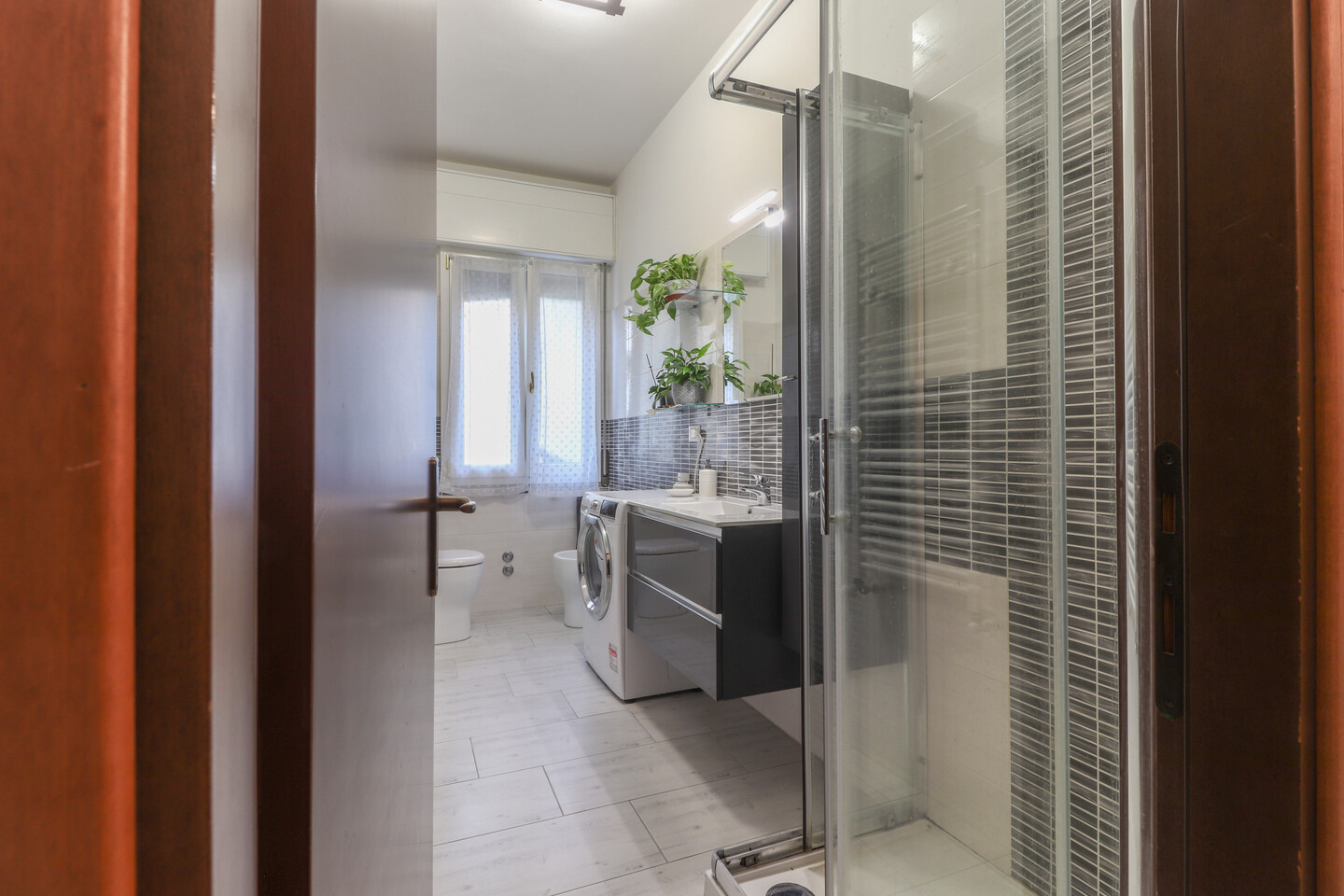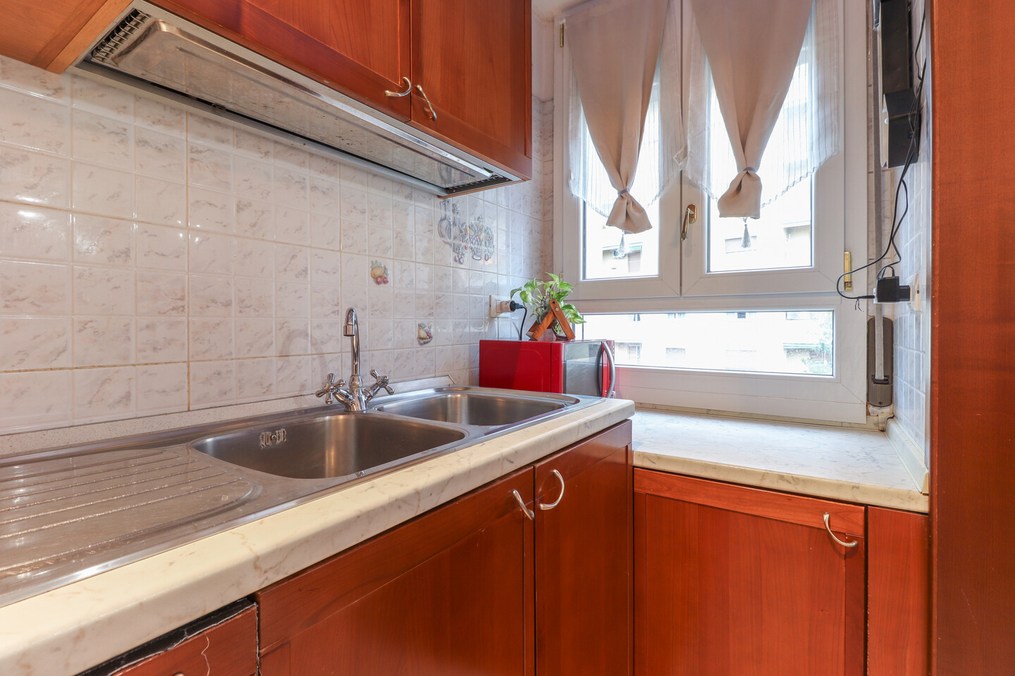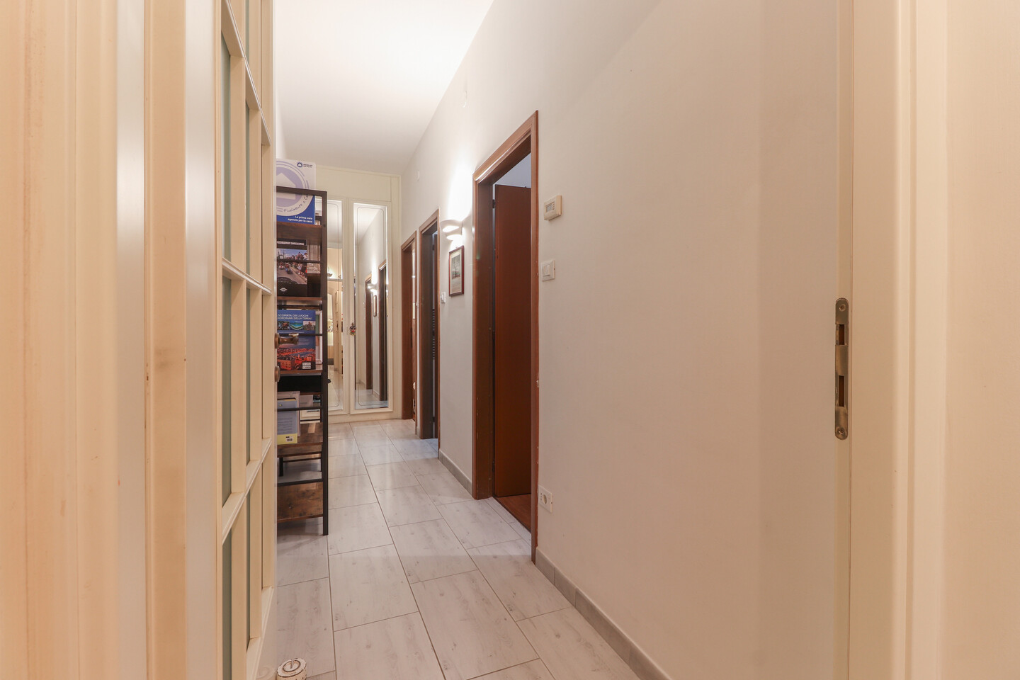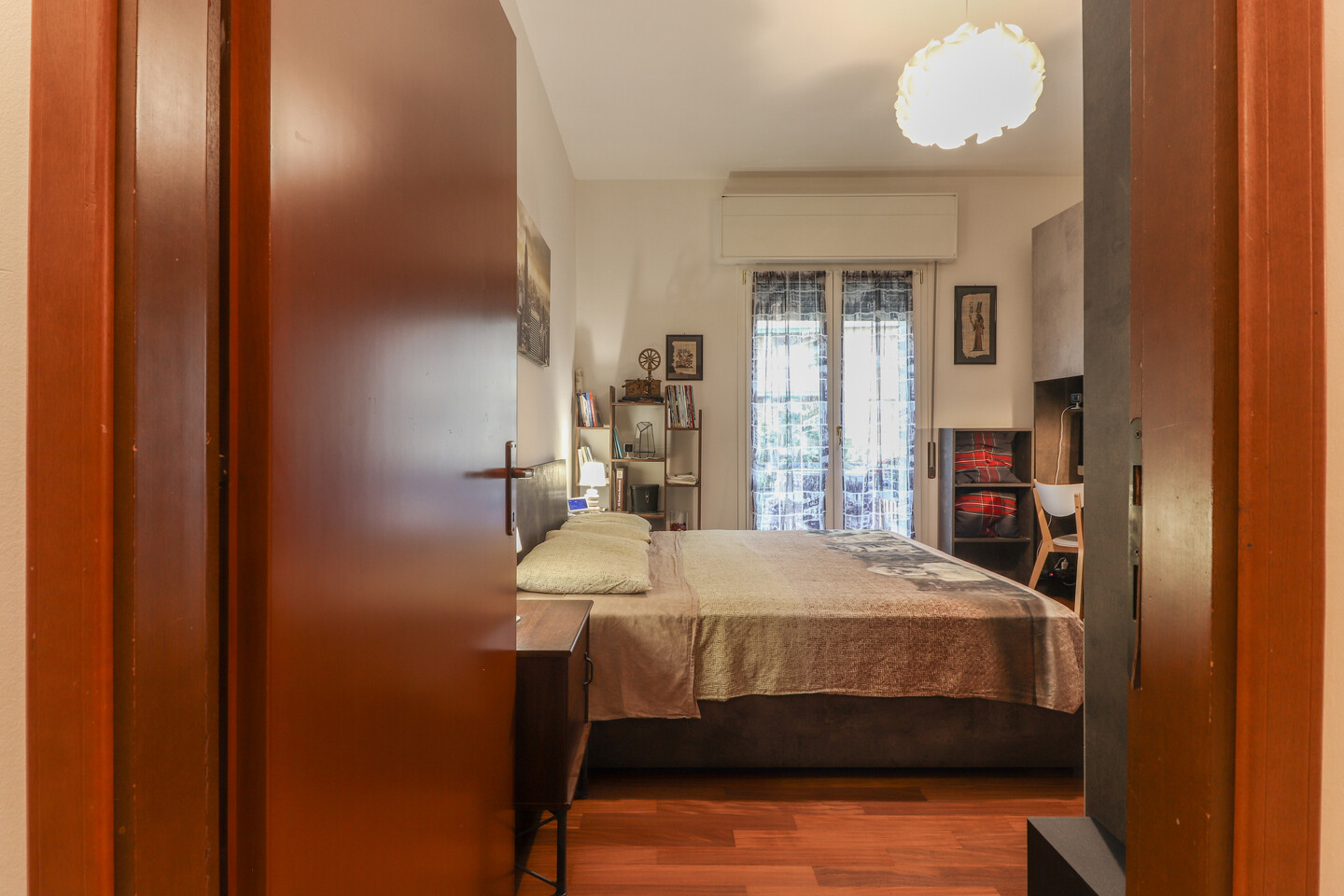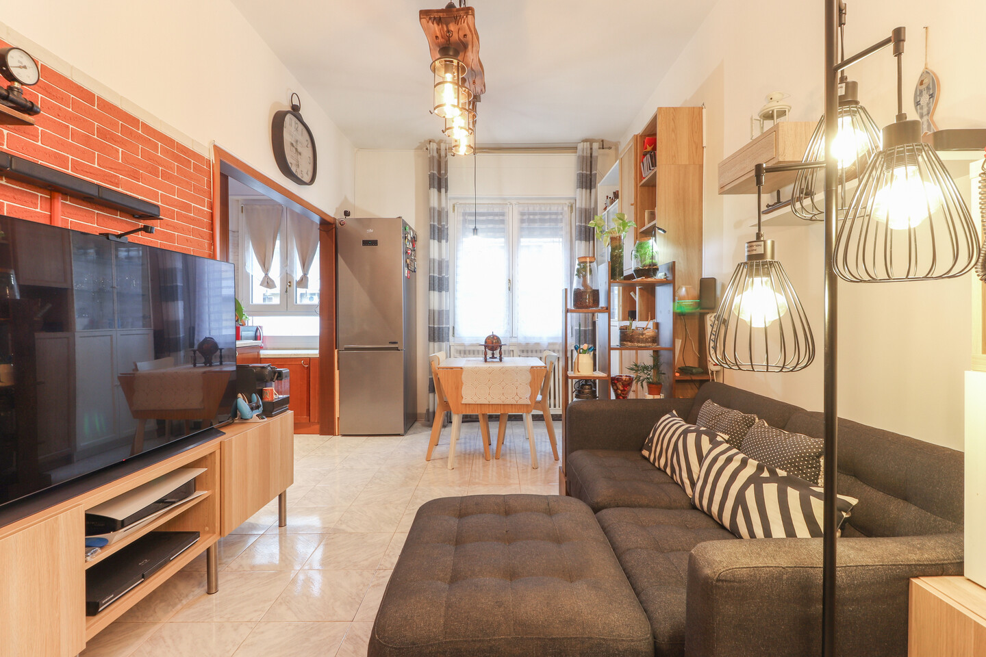 L’ingresso si apre su un luminoso soggiorno con cucinotto separato, perfetto per vivere la zona giorno in modo pratico e accogliente. Un comodo disimpegno conduce alla zona notte, dove trovano spazio due ampie camere matrimoniali, un bagno finemente rinnovato e un utile ripostiglio. L’appartamento, curato in ogni dettaglio, offre comfort e funzionalità in una posizione tranquilla e ben servita.