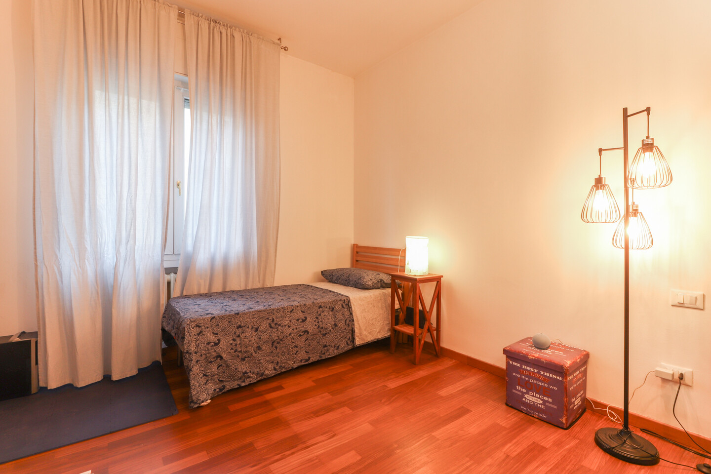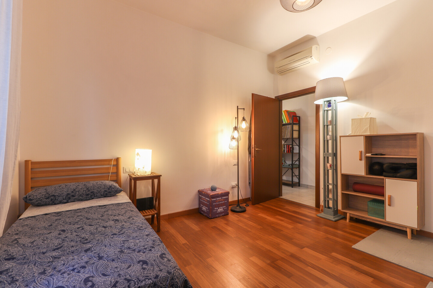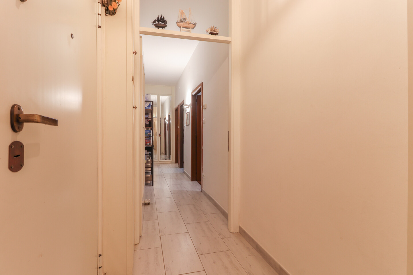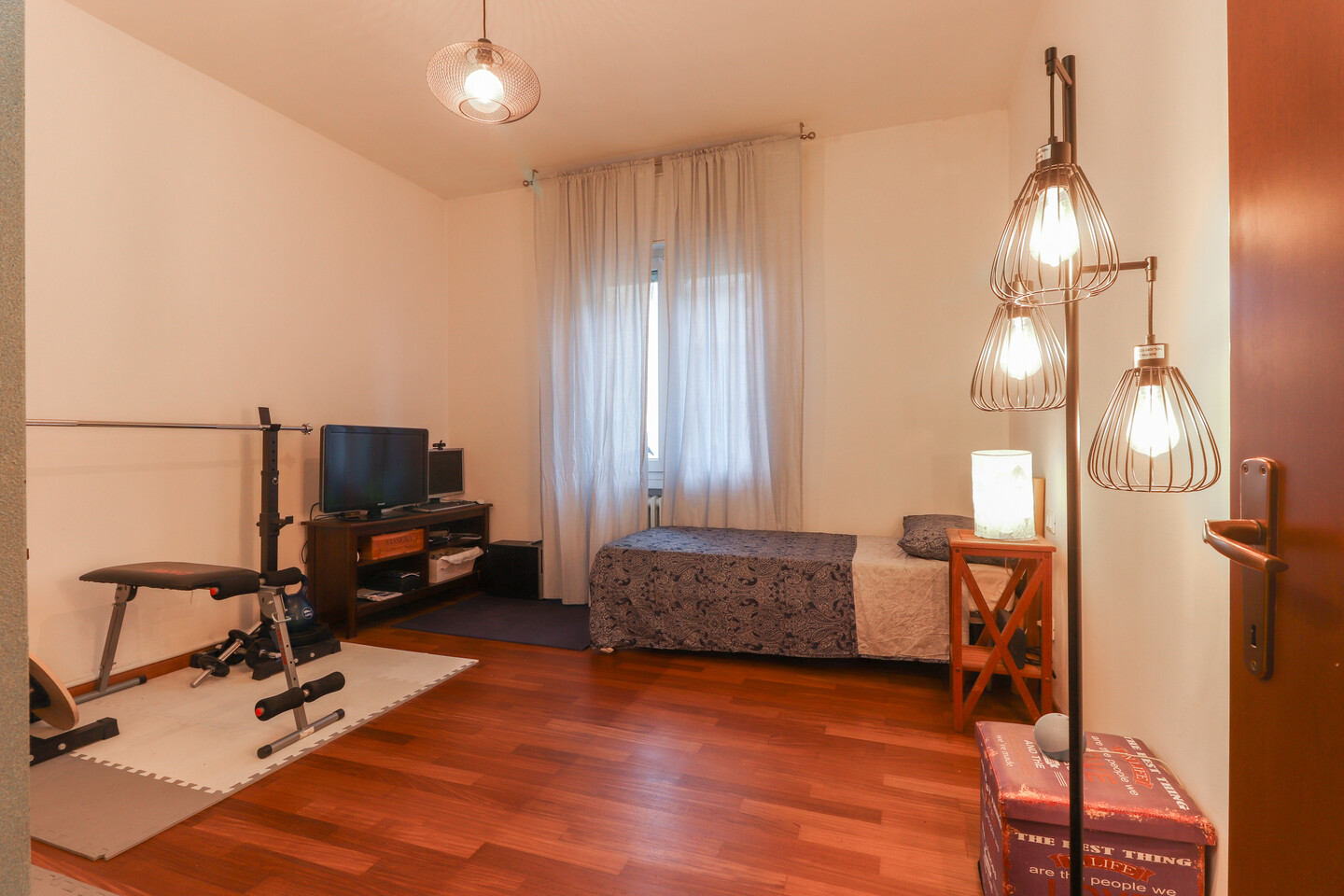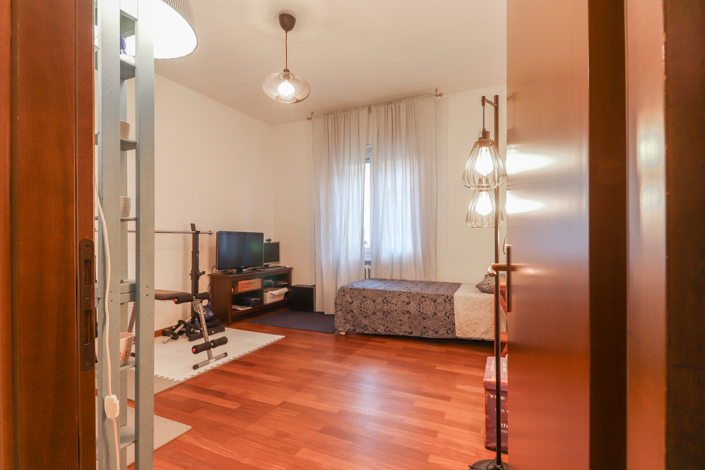 L’ingresso si apre su un luminoso soggiorno con cucinotto separato, perfetto per vivere la zona giorno in modo pratico e accogliente. Un comodo disimpegno conduce alla zona notte, dove trovano spazio due ampie camere matrimoniali, un bagno finemente rinnovato e un utile ripostiglio. L’appartamento, curato in ogni dettaglio, offre comfort e funzionalità in una posizione tranquilla e ben servita.