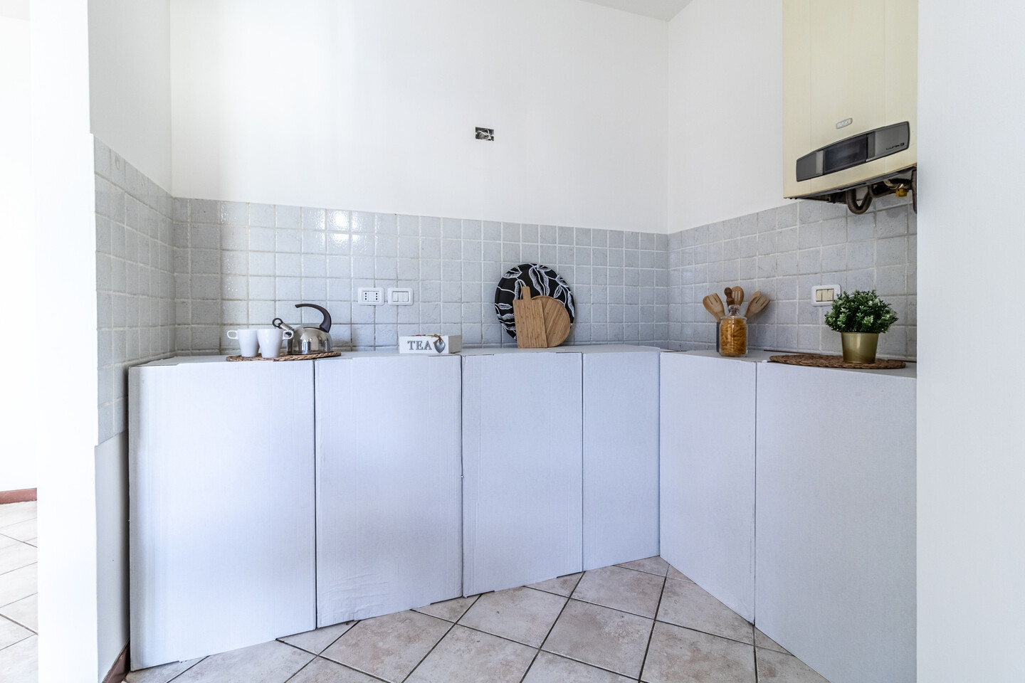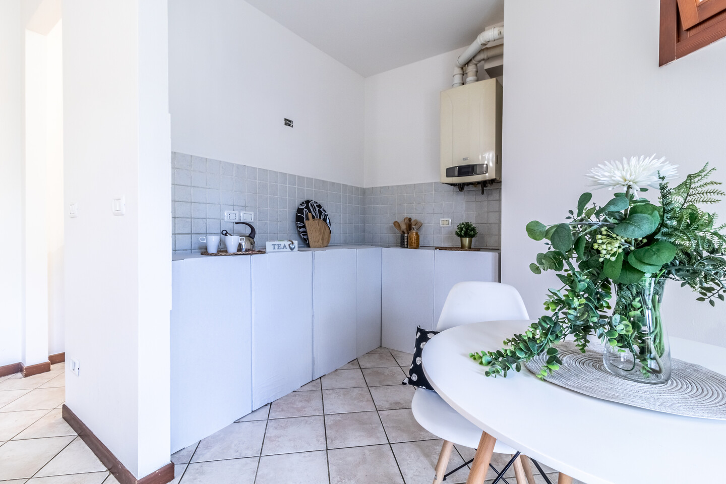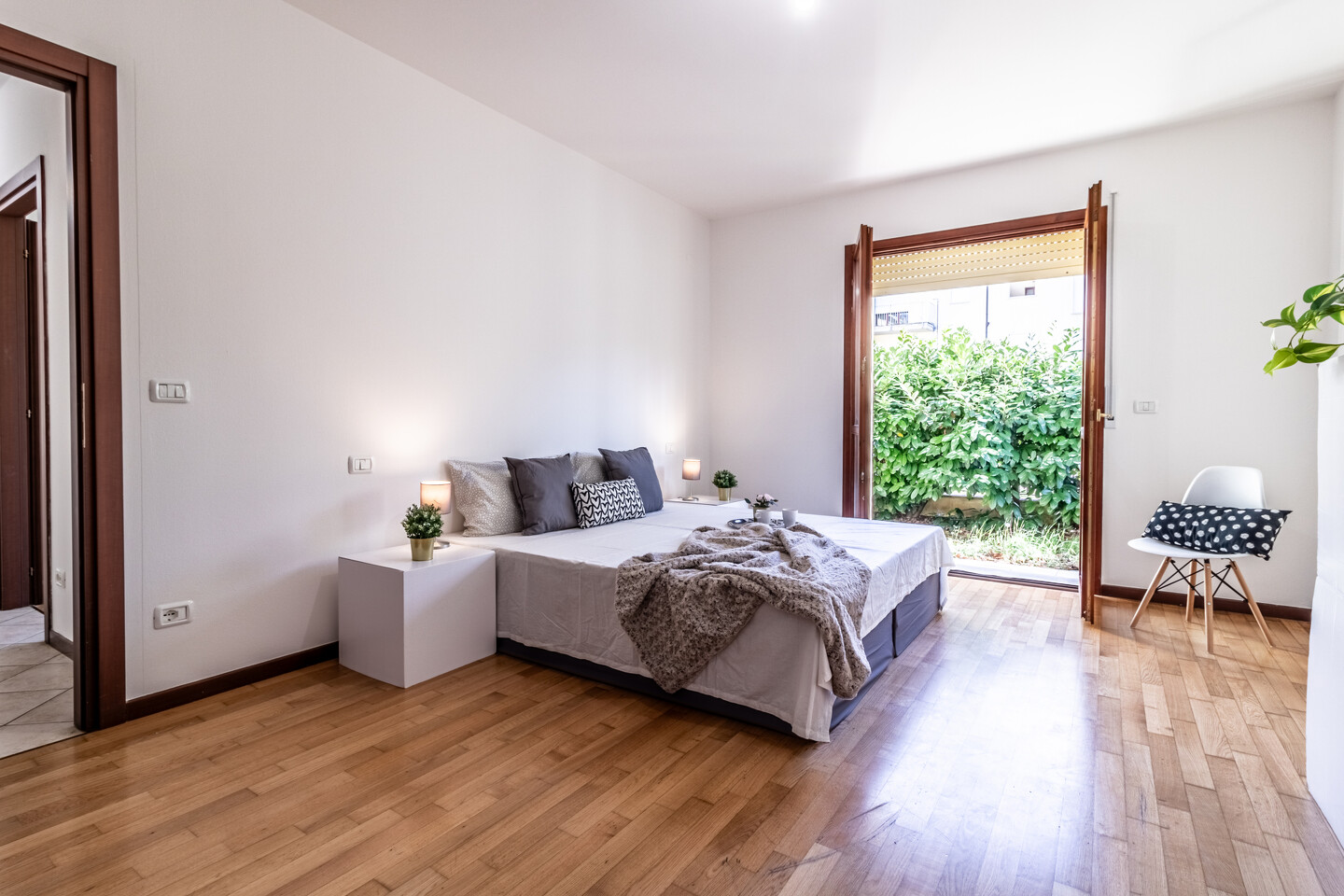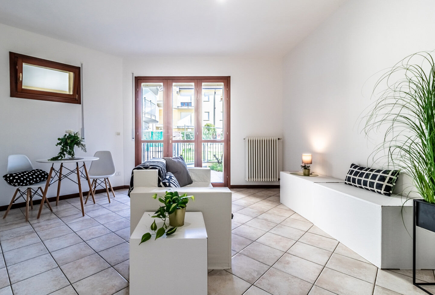L’appartamento è posto al piano terra ed è composto da un soggiorno luminoso con angolo cottura, che affaccia su una corte esclusiva che permette di godere di uno spazio esterno privato, perfetto per rilassarsi all’aperto o come piccolo giardino. La zona notte comprende una camera matrimoniale, una camera singola e un ampio bagno finestrato con doccia. Completano la proprietà cantina e garage al piano interrato.