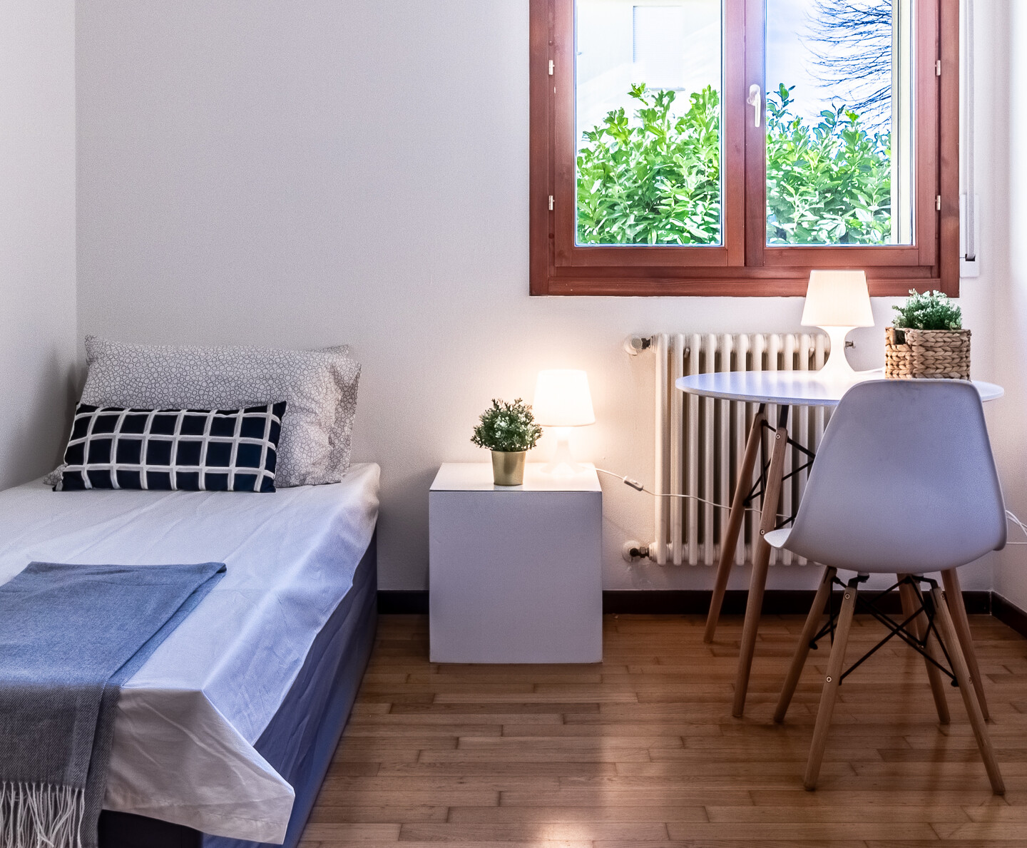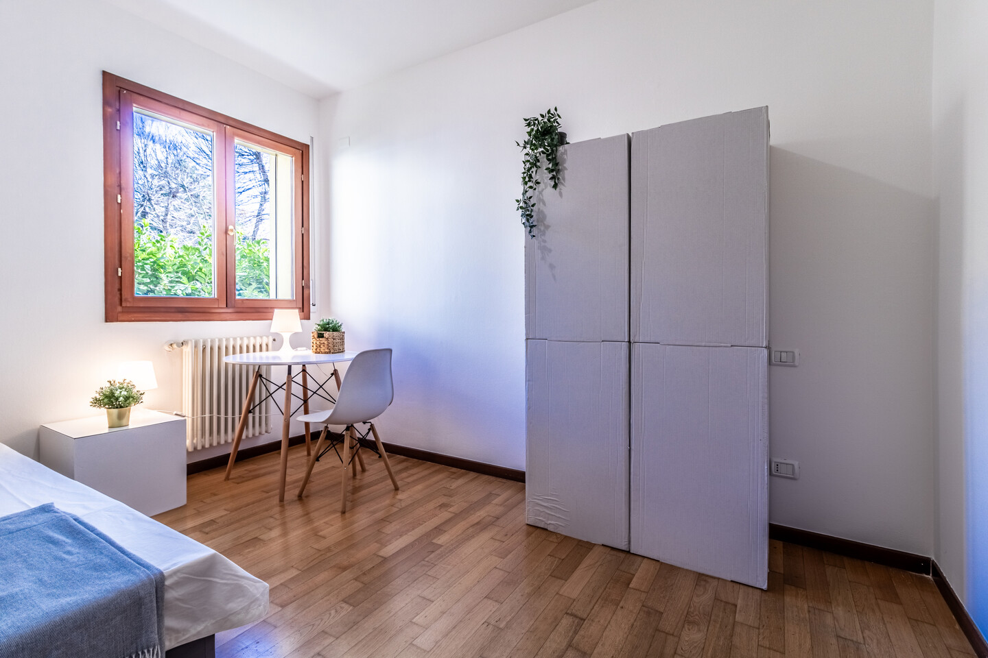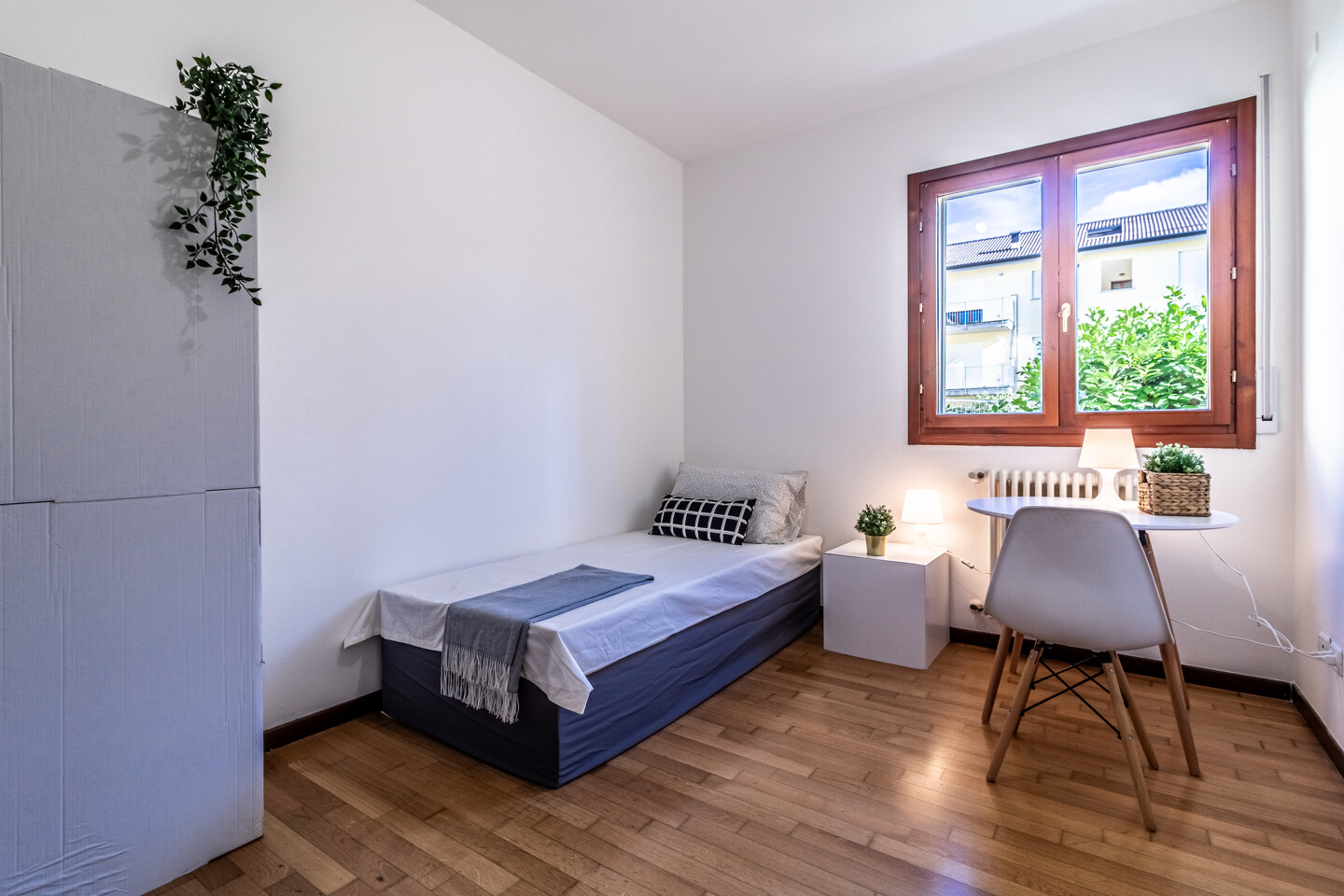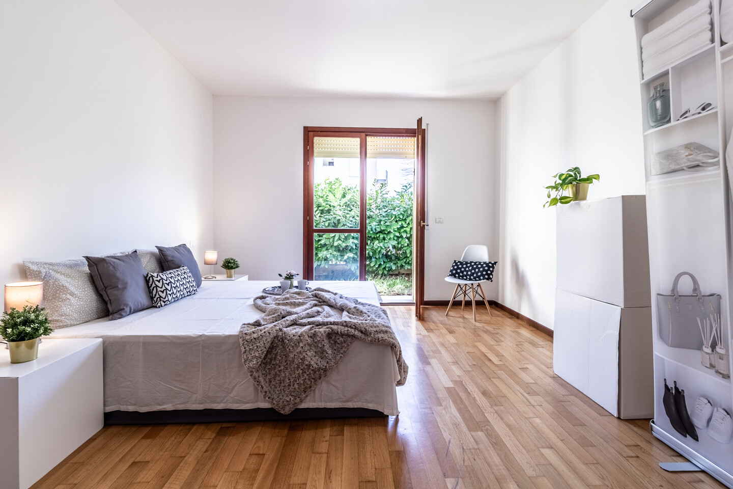 L’appartamento è posto al piano terra ed è composto da un soggiorno luminoso con angolo cottura, che affaccia su una corte esclusiva che permette di godere di uno spazio esterno privato, perfetto per rilassarsi all’aperto o come piccolo giardino. La zona notte comprende una camera matrimoniale, una camera singola e un ampio bagno finestrato con doccia. Completano la proprietà cantina e garage al piano interrato.