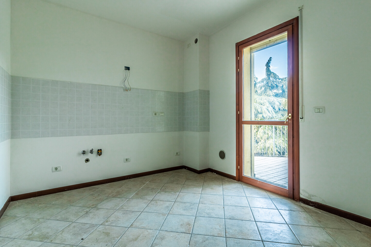 L’appartamento è posto al secondo ed ultimo piano ed è composto da soggiorno, cucina abitabile, camera matrimoniale, loggia e un ampio bagno finestrato con doccia. Completano la proprietà cantina e garage al piano interrato.