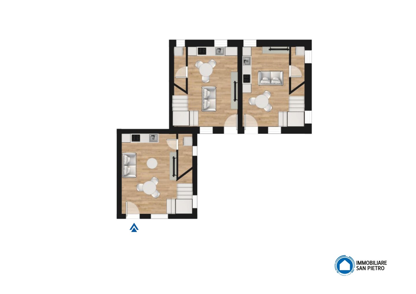 Il fabbricato è stato edificato nel 2024 e diviso in 3 mini appartamenti, ognuno con il proprio ingresso indipendente. Tutti gli alloggi sono disposti su due livelli: al piano terra troviamo soggiorno con angolo cottura e bagno; una scala conduce al primo piano dove sono presenti una camera matrimoniale e un ulteriore bagno. E’ compreso nella proprietà un lotto di terreno di 700 mq in cui è ancora possibile edificare 130 mq (indicativamente altre due unità come questa).