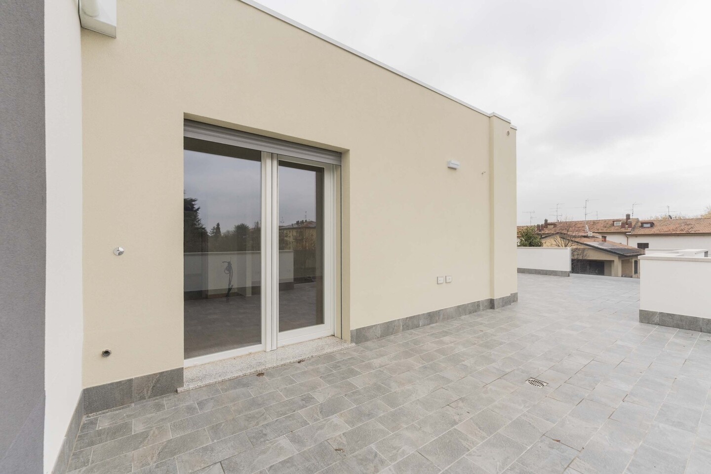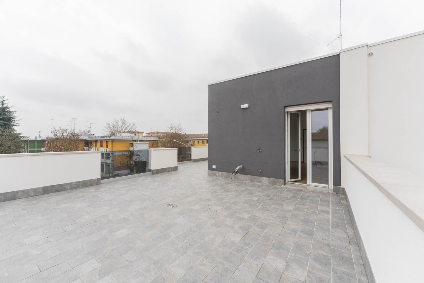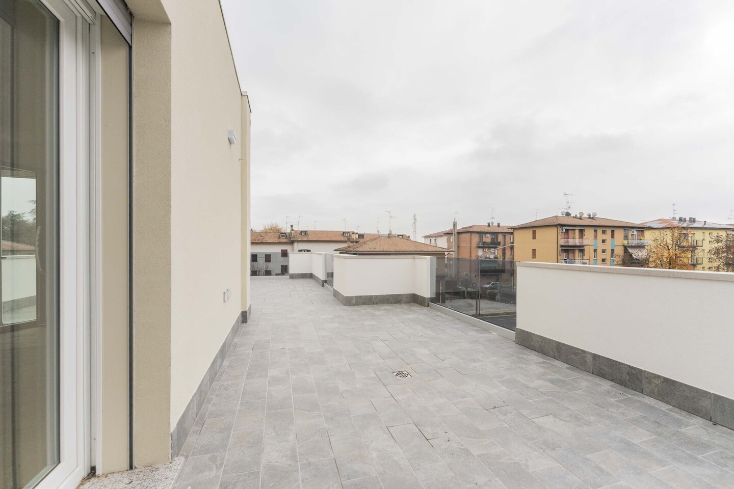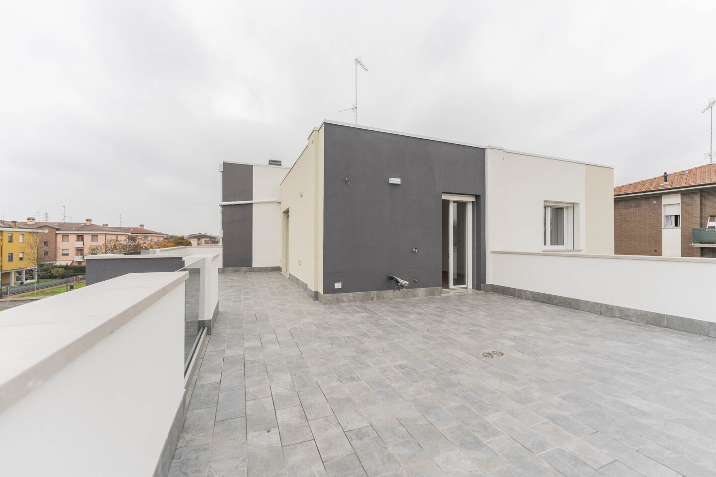 L’ingresso si apre su una luminosa zona giorno con cucina a vista, ambiente ideale per la convivialità e il relax, con un primo affaccio diretto su un magnifico terrazzo di 40mq. La residenza si distingue per i suoi materiali di pregio: tutti gli spazi abitativi presentano uno splendido pavimento in legno che conferisce calore e raffinatezza, abbinato al massimo comfort garantito dal moderno sistema di riscaldamento a pavimento. L’immobile si completa con la zona notte che comprende una confortevole camera matrimoniale, una spaziosa camera doppia e due bagni entrambi finestrati. Il vero gioiello di questa proprietà è però l’esterno! Potrai godere di una magnifica terrazza panoramica, perfetta per cene, lounge estivi o semplicemente per godersi momenti di pace all’aperto. Questo attico rappresenta l’unione perfetta tra design, ampi spazi esterni e l’efficienza di una costruzione all’avanguardia.