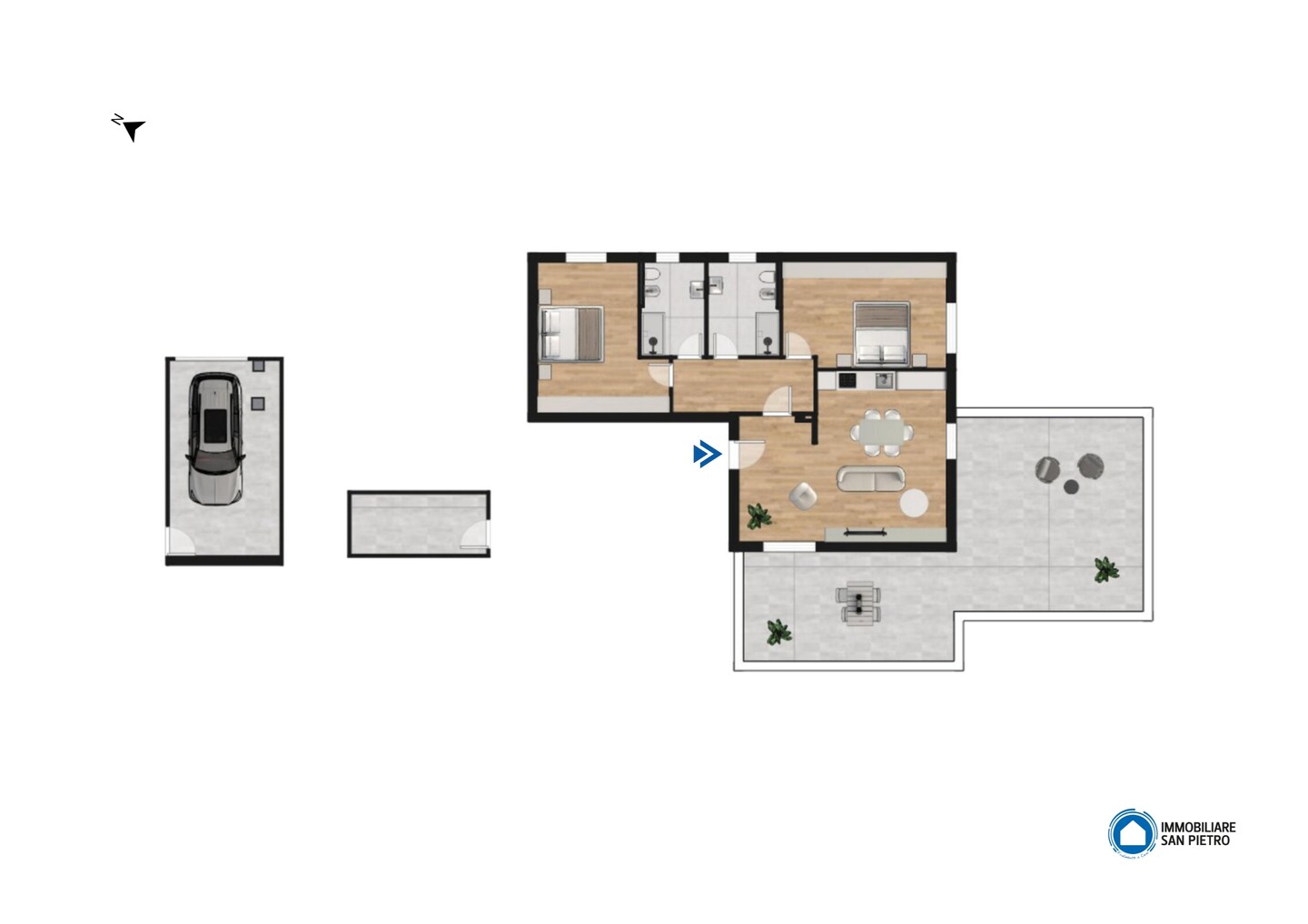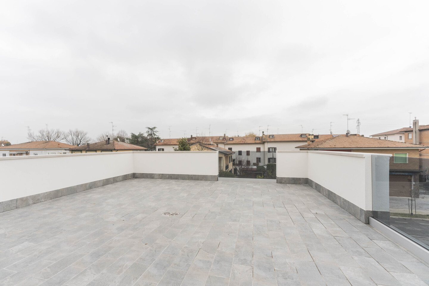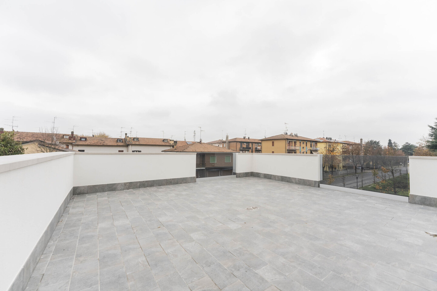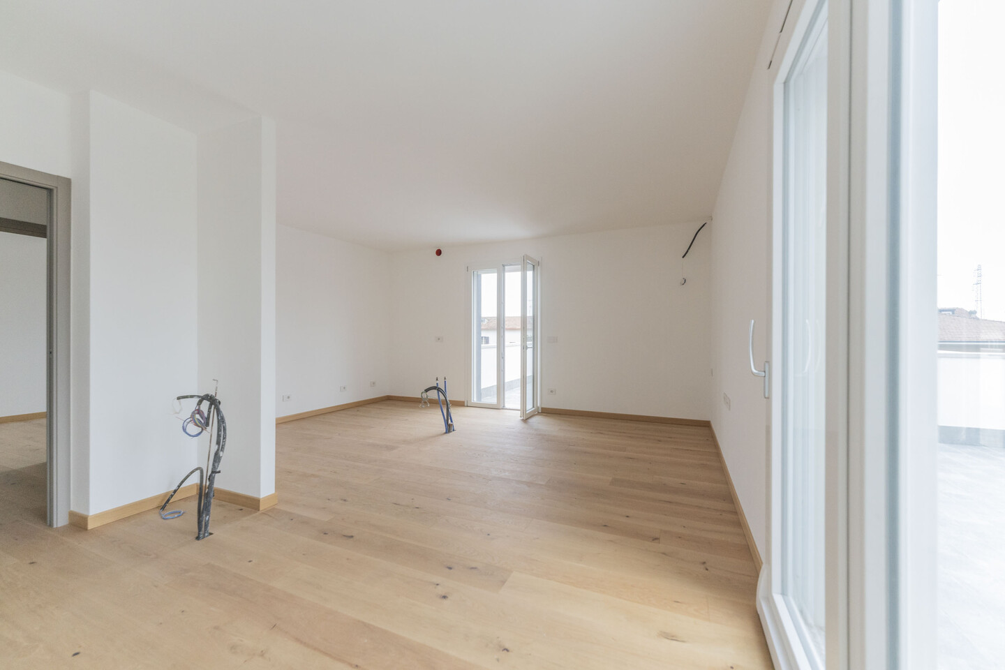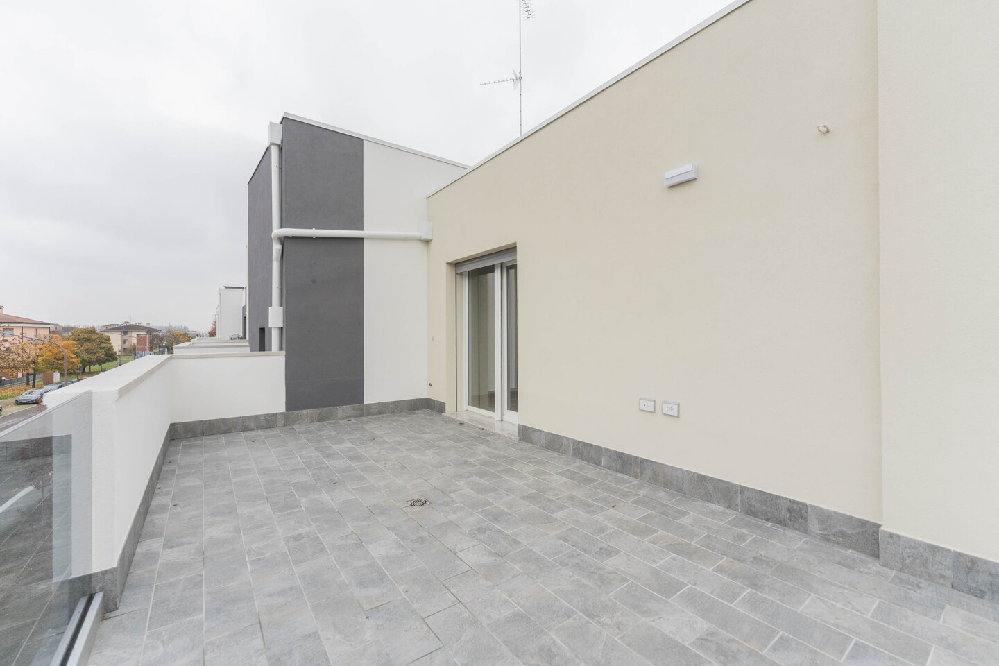 L’ingresso si apre su una luminosa zona giorno con cucina a vista, ambiente ideale per la convivialità e il relax, con un primo affaccio diretto su un magnifico terrazzo di 40mq. La residenza si distingue per i suoi materiali di pregio: tutti gli spazi abitativi presentano uno splendido pavimento in legno che conferisce calore e raffinatezza, abbinato al massimo comfort garantito dal moderno sistema di riscaldamento a pavimento. L’immobile si completa con la zona notte che comprende una confortevole camera matrimoniale, una spaziosa camera doppia e due bagni entrambi finestrati. Il vero gioiello di questa proprietà è però l’esterno! Potrai godere di una magnifica terrazza panoramica, perfetta per cene, lounge estivi o semplicemente per godersi momenti di pace all’aperto. Questo attico rappresenta l’unione perfetta tra design, ampi spazi esterni e l’efficienza di una costruzione all’avanguardia.