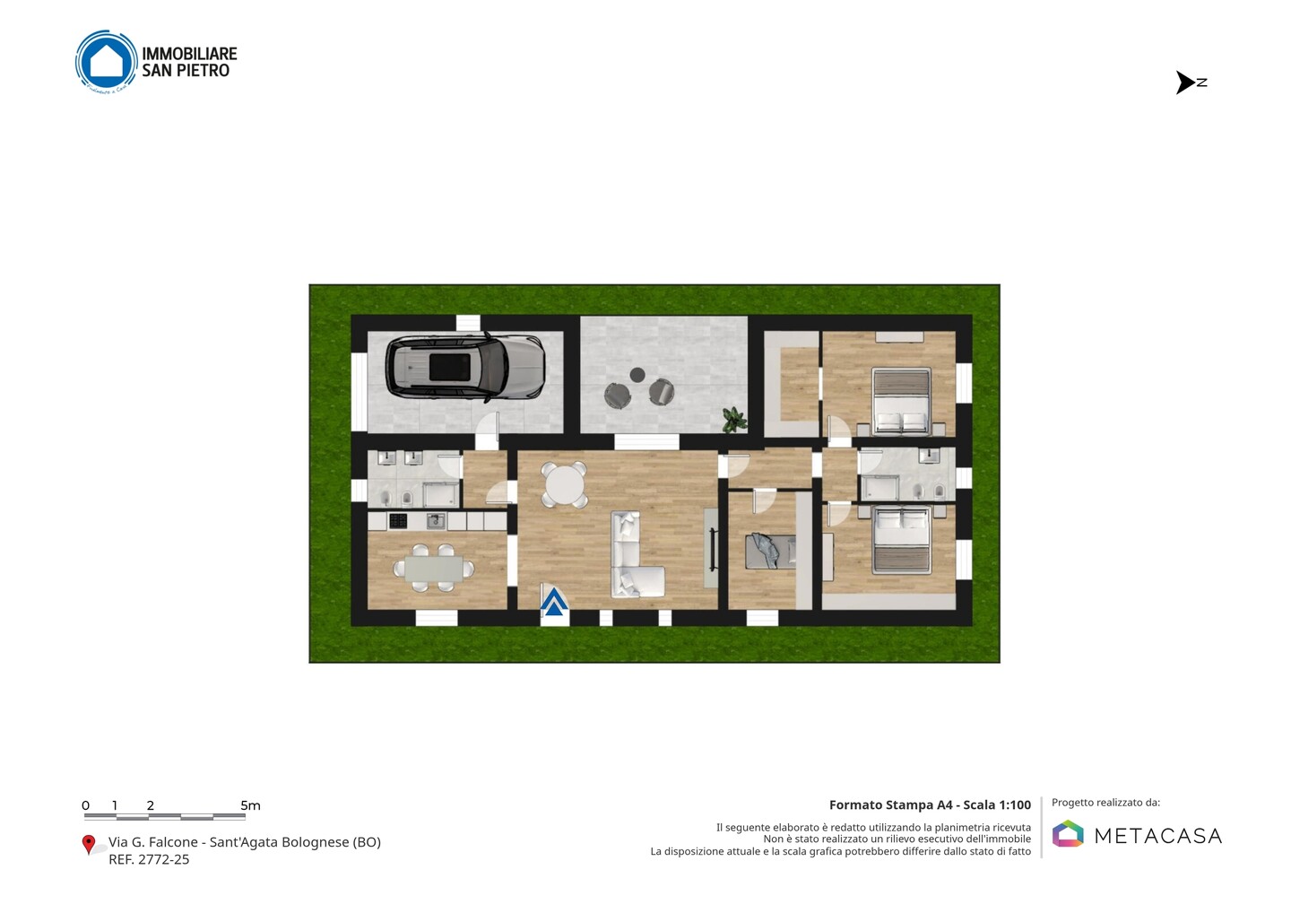 Nelle vicinanze si trovano supermercati, farmacia, scuole, campo sportivo, impianti sportivi e attività commerciali, tutti raggiungibili in pochi minuti. Il centro del paese è comodamente raggiungibile a piedi o in bicicletta, mentre le fermate degli autobus presenti nelle vicinanze collegano rapidamente Sant’Agata con i comuni limitrofi e con la stazione ferroviaria di San Giovanni in Persiceto, posta a circa 10 minuti di auto.