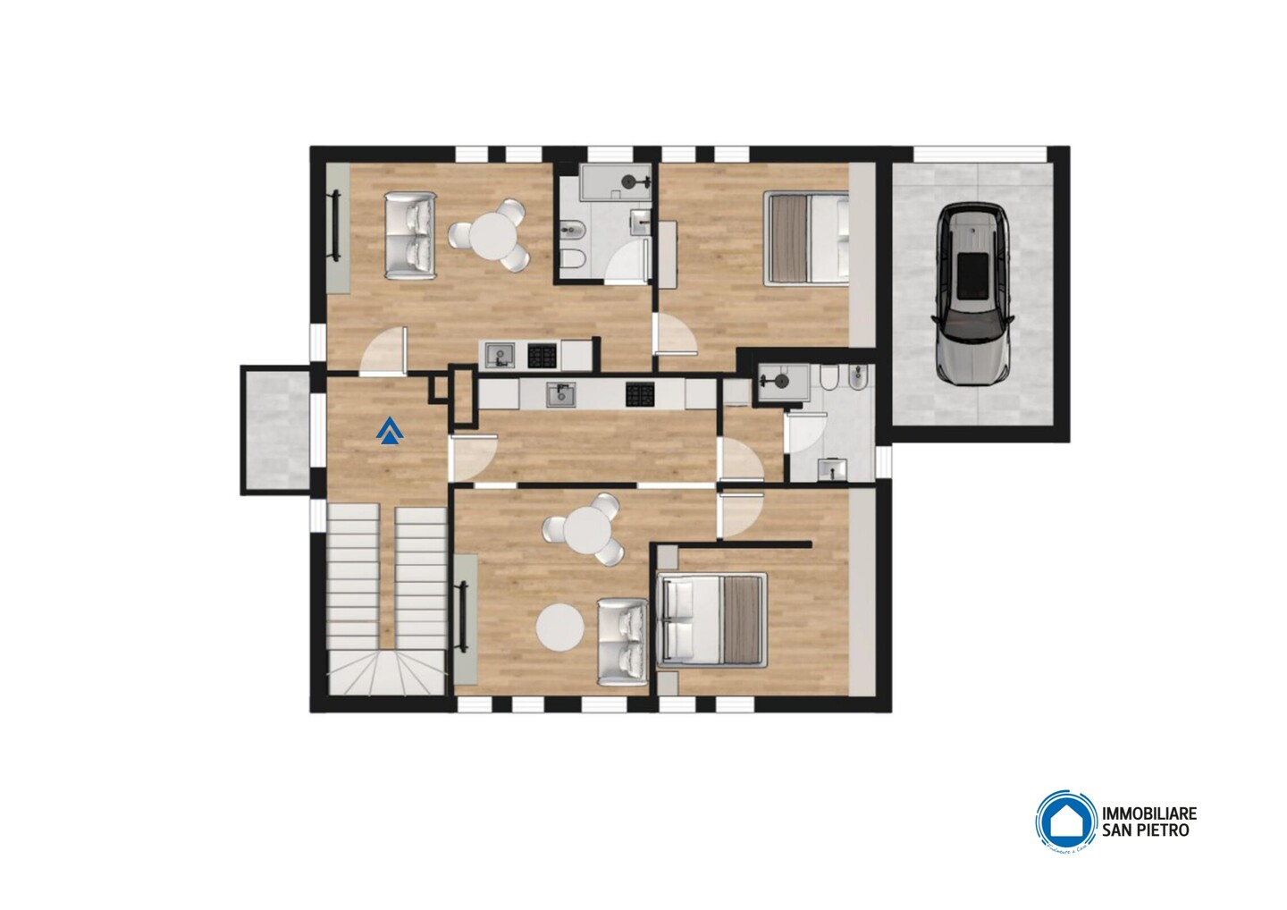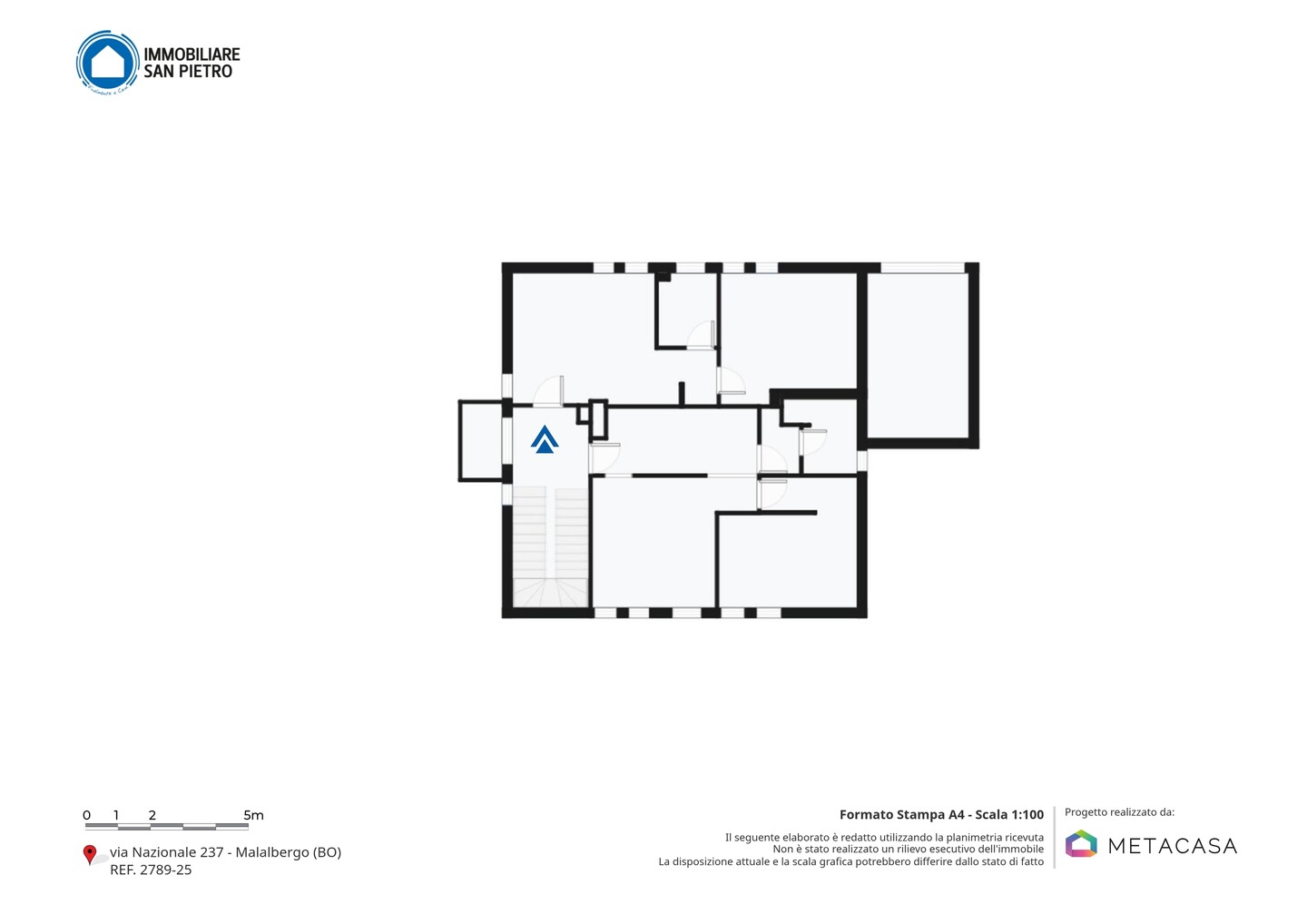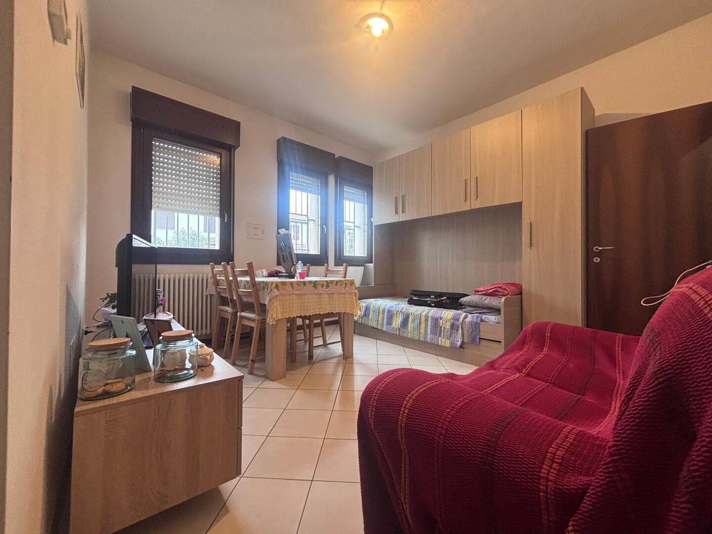 L’immobile è situato interamente al piano terra, facente parte di un fabbricato di recente ristrutturazione (2005) e così composto: ingresso, soggiorno con cucina a vista, camera matrimoniale, antibagno e bagno.