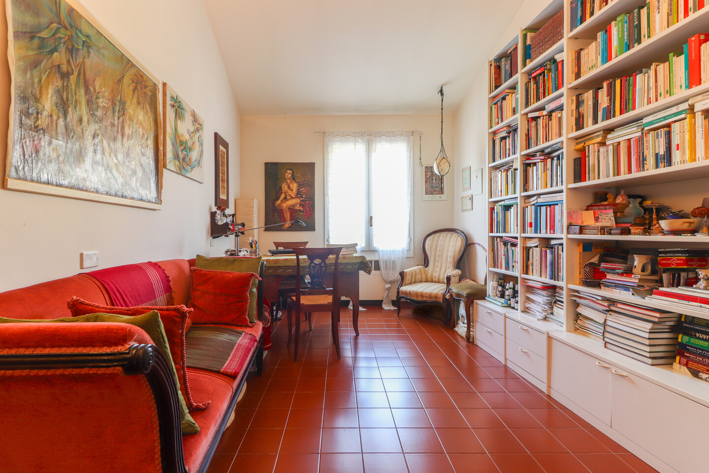 Alcuni ambienti di collegamento, ampi e ben proporzionati, offrono inoltre la possibilità di essere attrezzati o arredati con elementi come librerie, armadiature o spazi funzionali su misura, valorizzando ogni metro disponibile. L’accesso avviene tramite una strada interna, lontana dal traffico, che garantisce quiete e privacy. Il giardino condominiale, curato e rigoglioso, rappresenta un valore aggiunto: uno spazio verde da godere ogni giorno. Completano la proprietà una cantina spaziosa e un posto auto scoperto ad uso esclusivo. Questa casa ha un carattere definito: romantico, autentico, con un delicato sapore “boutique”.