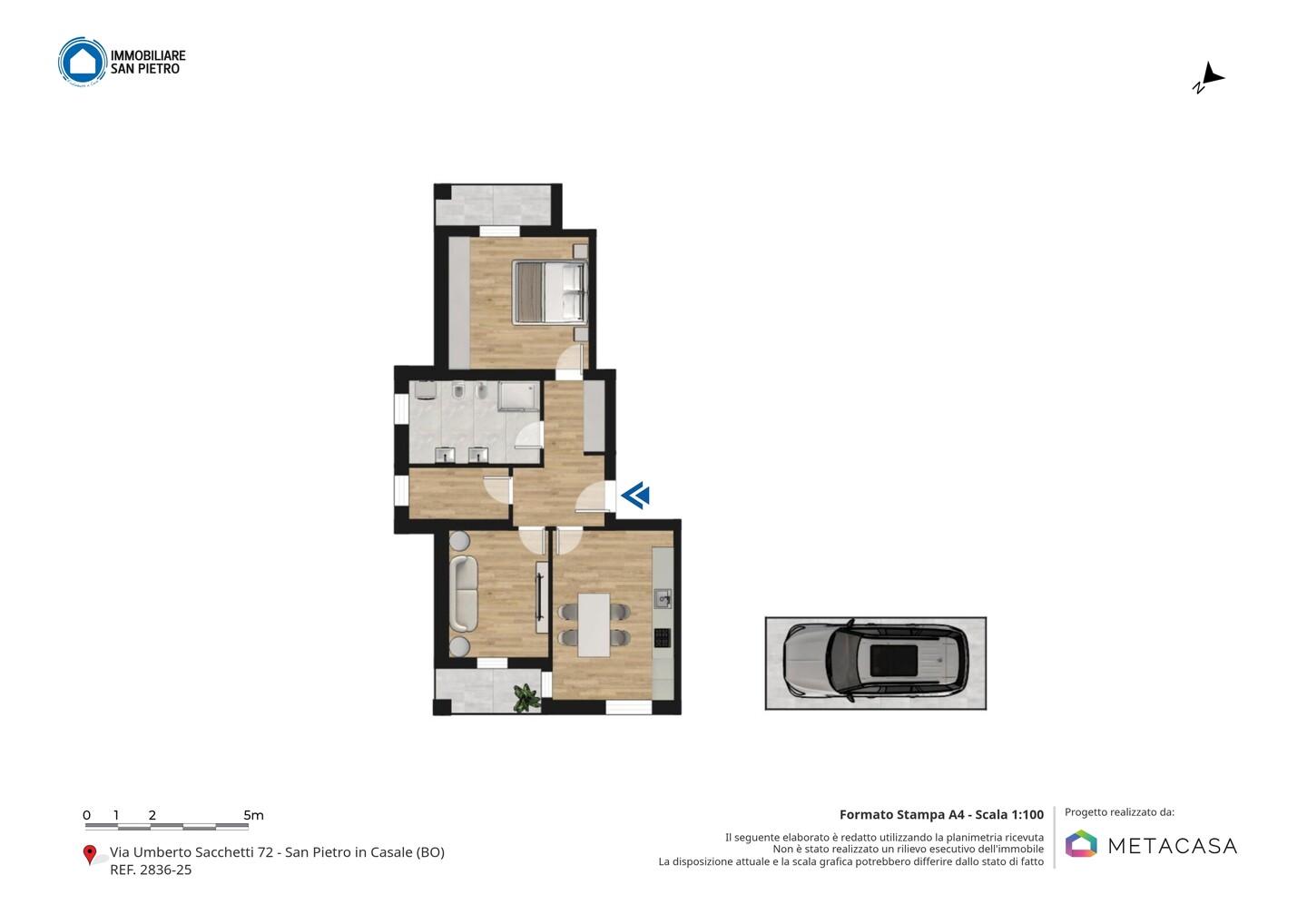 L’appartamento si trova in contesto tranquillo e riservato, a pochi minuti a piedi dal centro di San Pietro in Casale, paese ben fornito di tutti i servizi utili alla vivibilità quotidiana come bar, tabacchi, banche, poste, uffici comunali, supermercati e negozi di alimentari, farmacie, asilo nido, scuola materna, elementari e medie. Sono inoltre presenti numerose fermate dell’autobus di linea 97 (Tper) e la stazione ferroviaria che ti collegherà a Bologna e Ferrara in circa 30 minuti, senza bisogno di utilizzare il tuo mezzo personale! E’ ben provvisto anche di servizi secondari, ma comunque fondamentali per lo svago ed il tempo libero come ristoranti, parchi, centro sportivo con piscina (a cui l’immobile è estremamente vicino) e biblioteche.