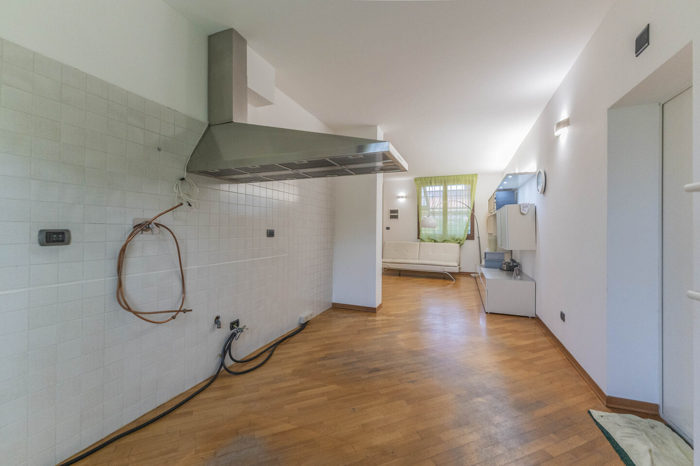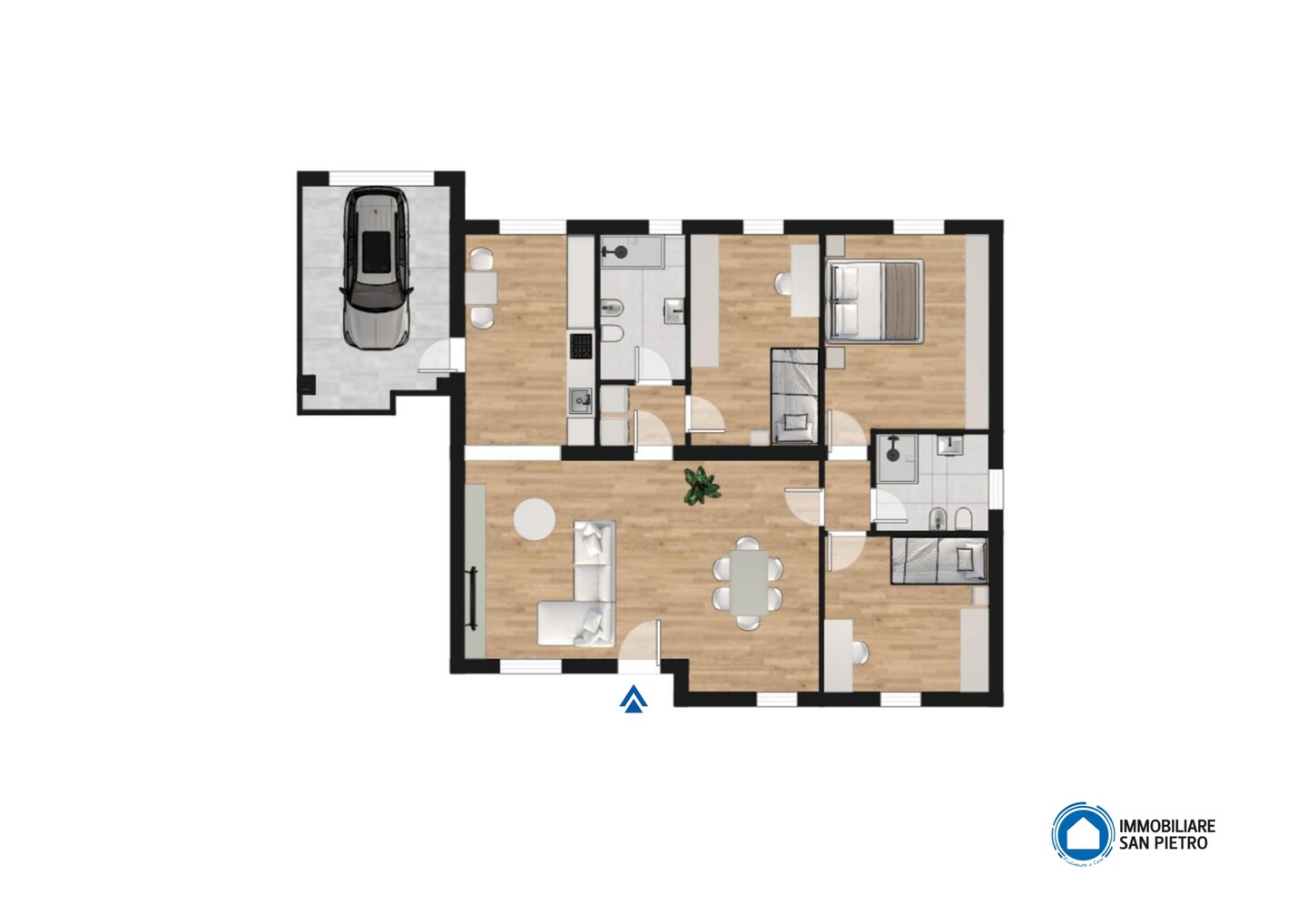 Ingresso su soggiorno, cucina abitabile con accesso diretto al garage, disimpegno , 2 camere da letto singole, 1 camera da letto matrimoniale e 2 bagni finestrati. Sottotetto accessibile tramite scala retrattile. A completare la proprietà giardino privato e garage.