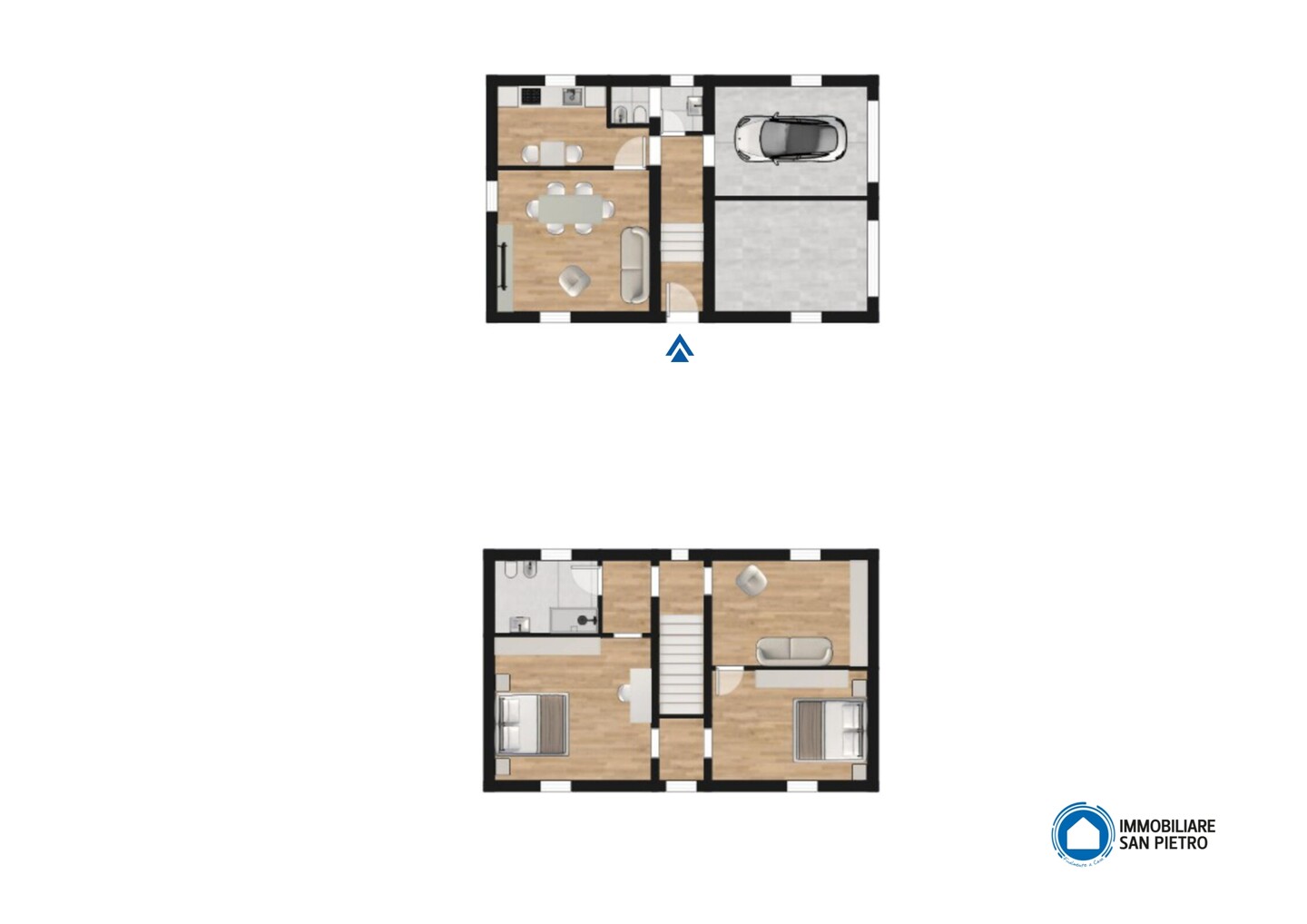 Al piano terra troviamo l’ingresso su disimpegno, un soggiorno, una cucina abitabile separata, un bagno finestrato con antibagno, oltre a un garage di circa 17 mq e una cantina di 15 mq, spazi ideali anche come locali di servizio o deposito. Il primo piano ospita la zona notte, composta da 3 camere da letto, due matrimoniali e una doppia, oltre a un bagno di generose dimensioni anch’esso finestrato. La disposizione degli ambienti consente molteplici soluzioni progettuali, sia per una ristrutturazione conservativa sia per una rivisitazione più moderna degli spazi.