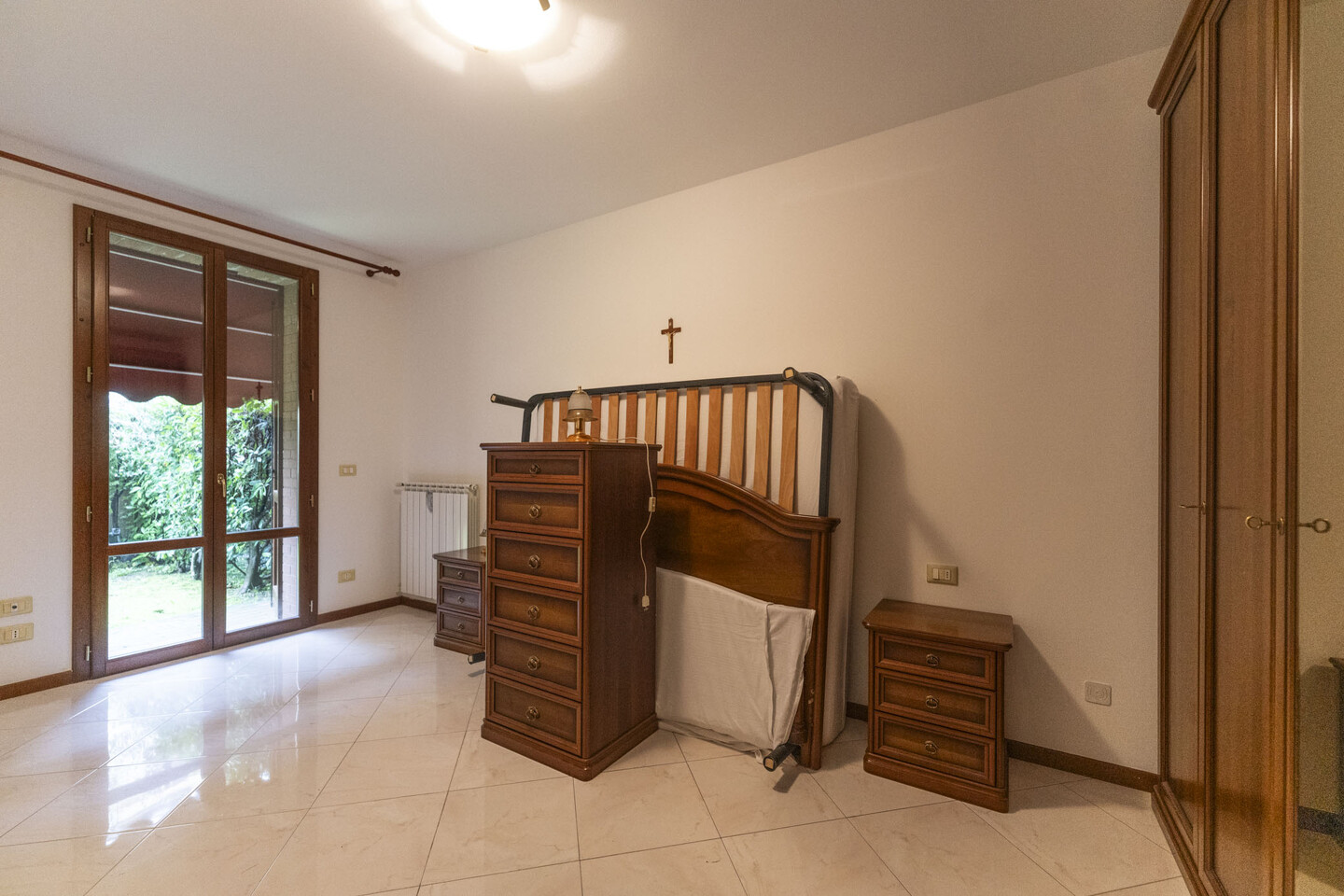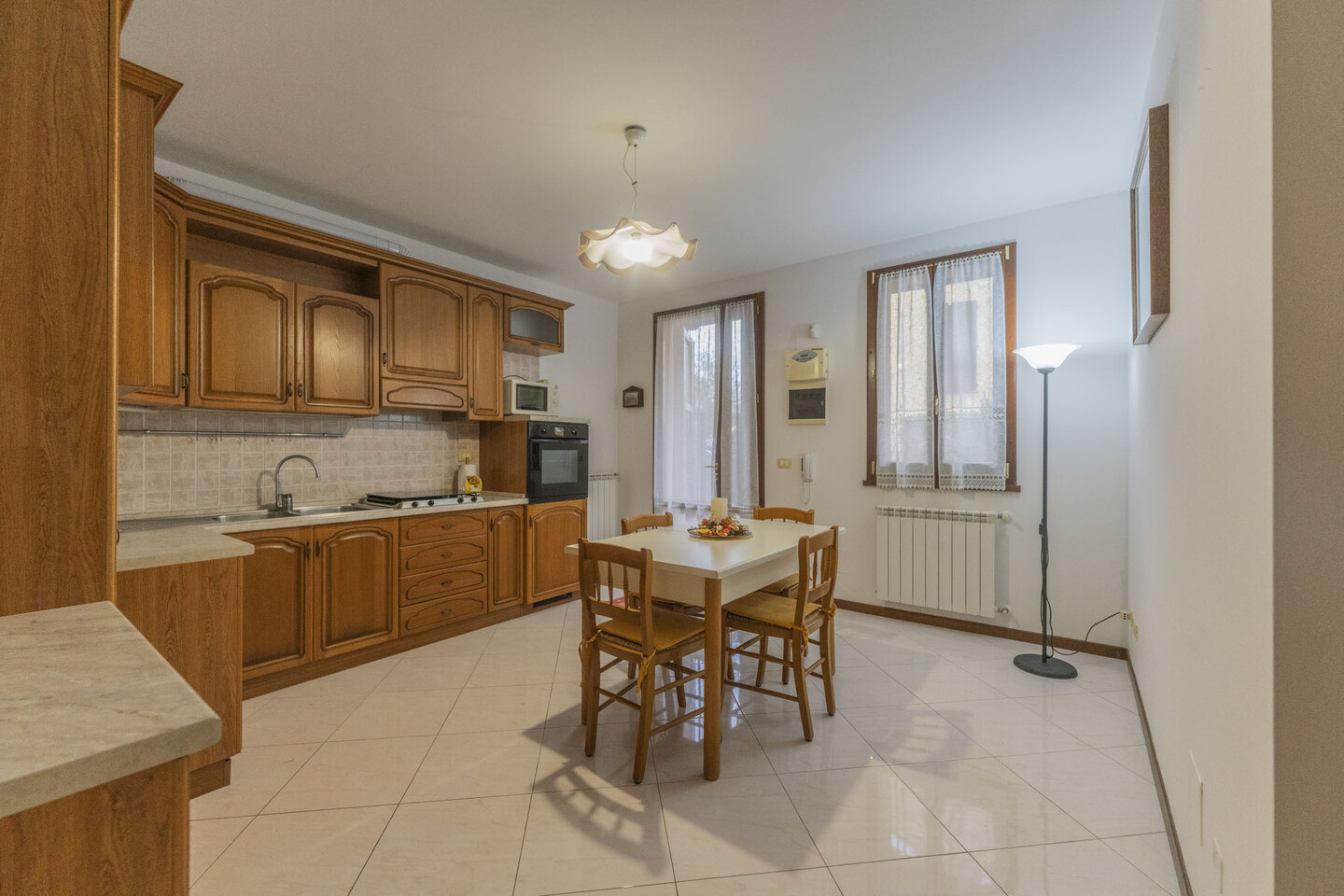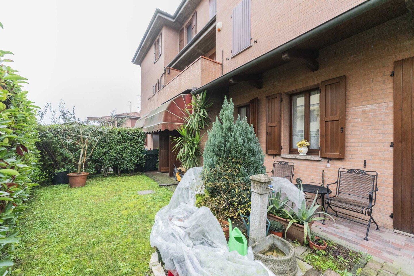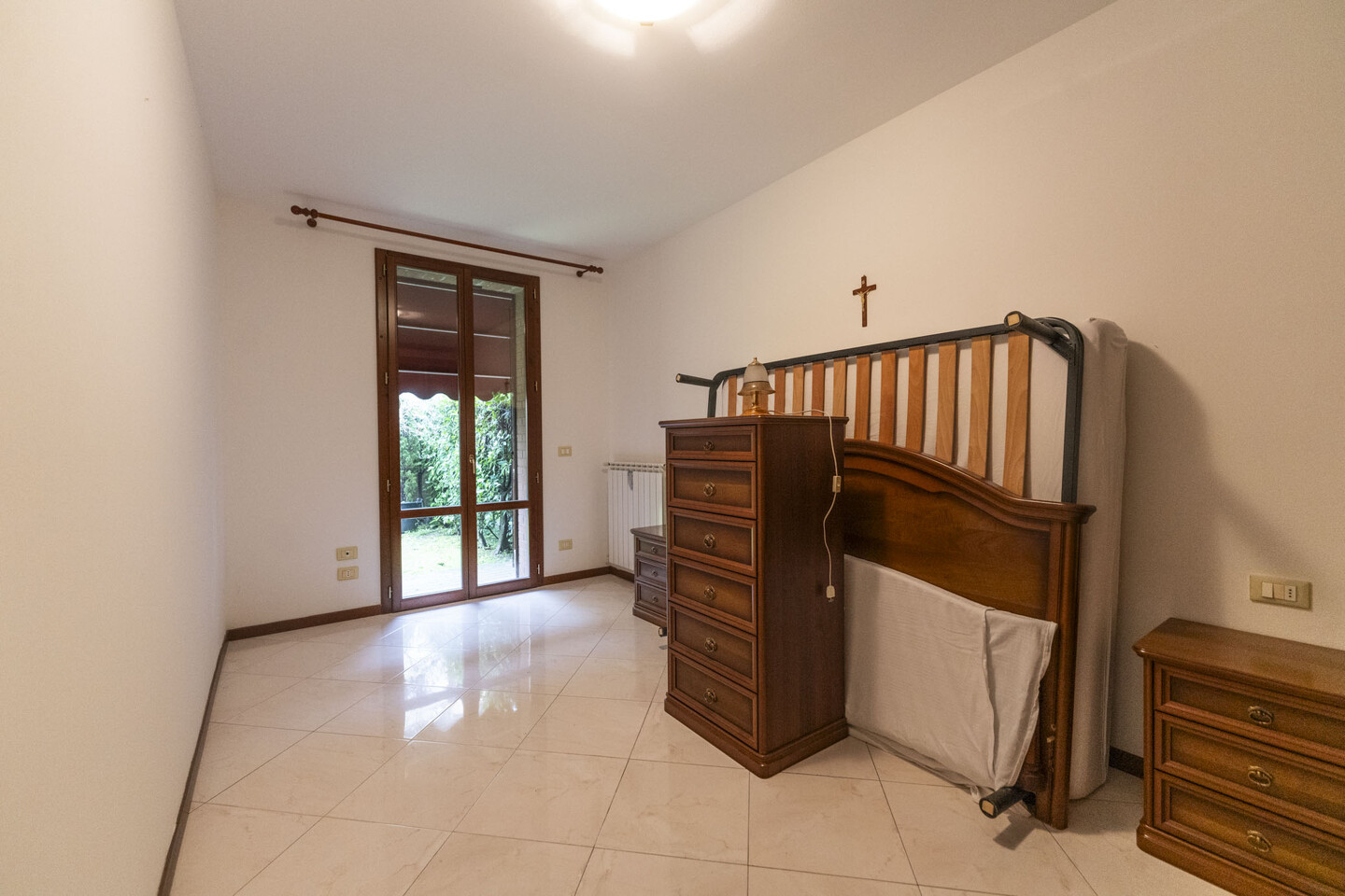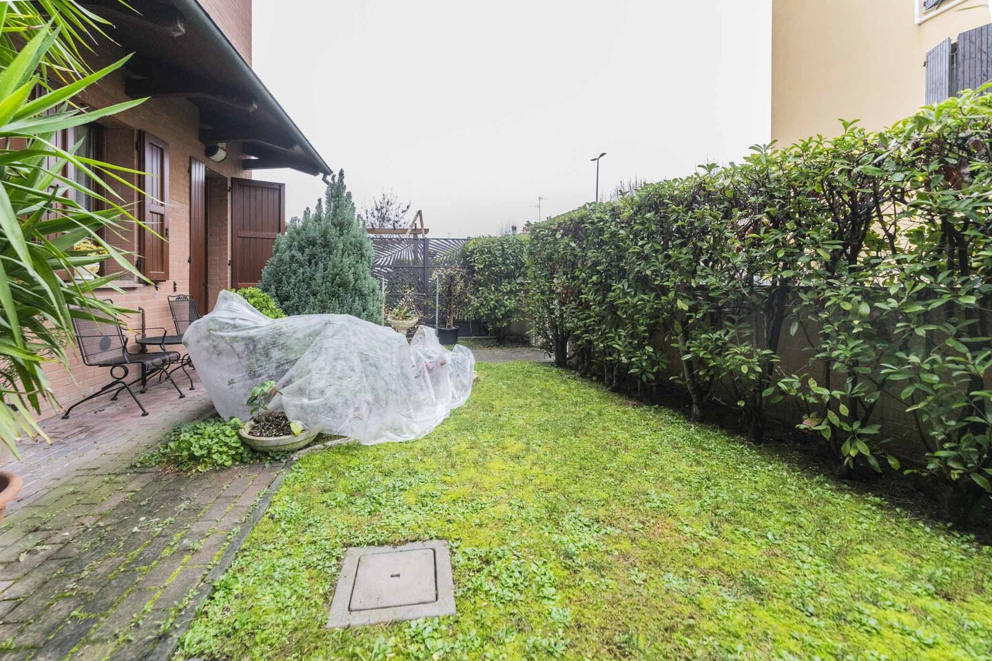 L’immobile è sviluppato interamente al piano terra, caratterizzato da ingresso indipendente e così composto: ingresso su soggiorno con angolo cottura, sala da pranzo oppure camera da letto matrimoniale, seconda camera da letto (sempre matrimoniale) e bagno. Completano la proprietà un posto auto coperto adiacente all’abitazione e il giardino privato.