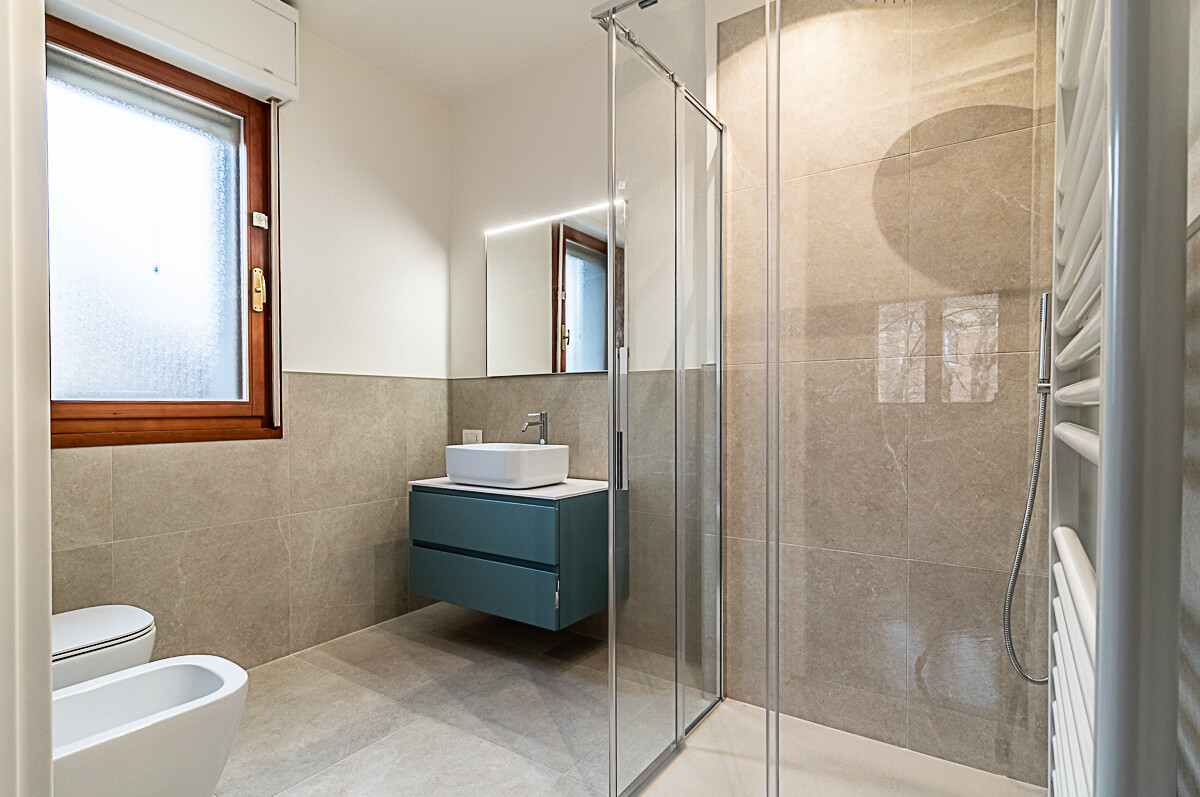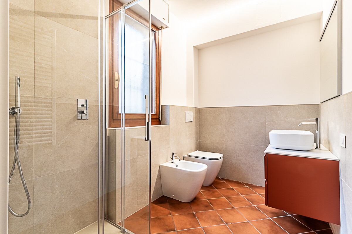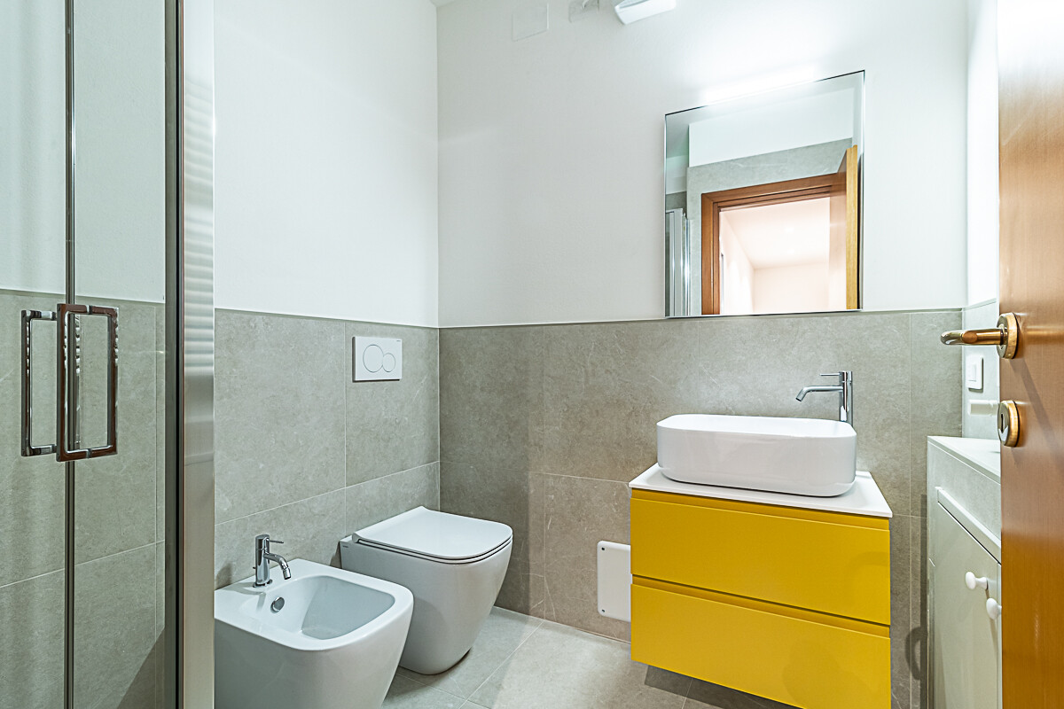 L’appartamento al primo piano è composto da ingresso, cucina abitabile già arredata e soggiorno luminoso, entrambi serviti da un comodo terrazzo. Un disimpegno conduce alla zona notte composta da tre camere da letto e due bagni, di cui uno a servizio di una delle camere da letto. Dalla sala una comoda scala interna porta al piano terra dove troviamo un grande ambiente dotato di un secondo ingresso indipendente, con angolo già predisposto per una cucina o per lavanderia e una camera con bagno privato.