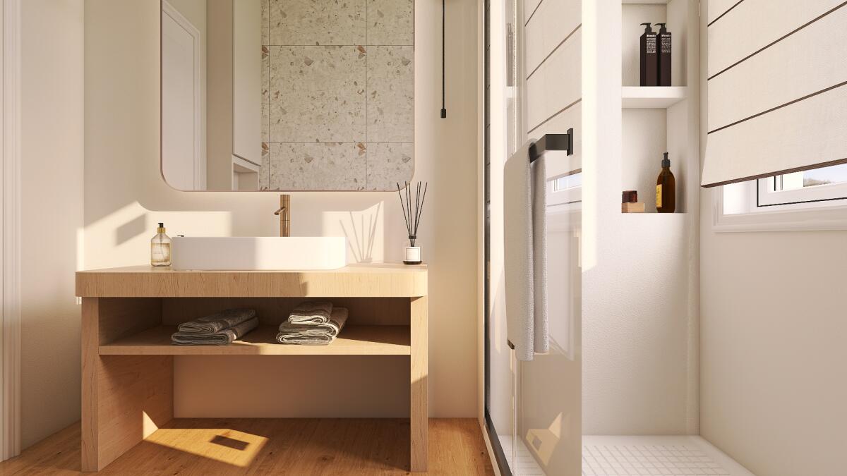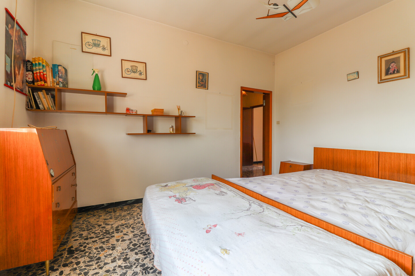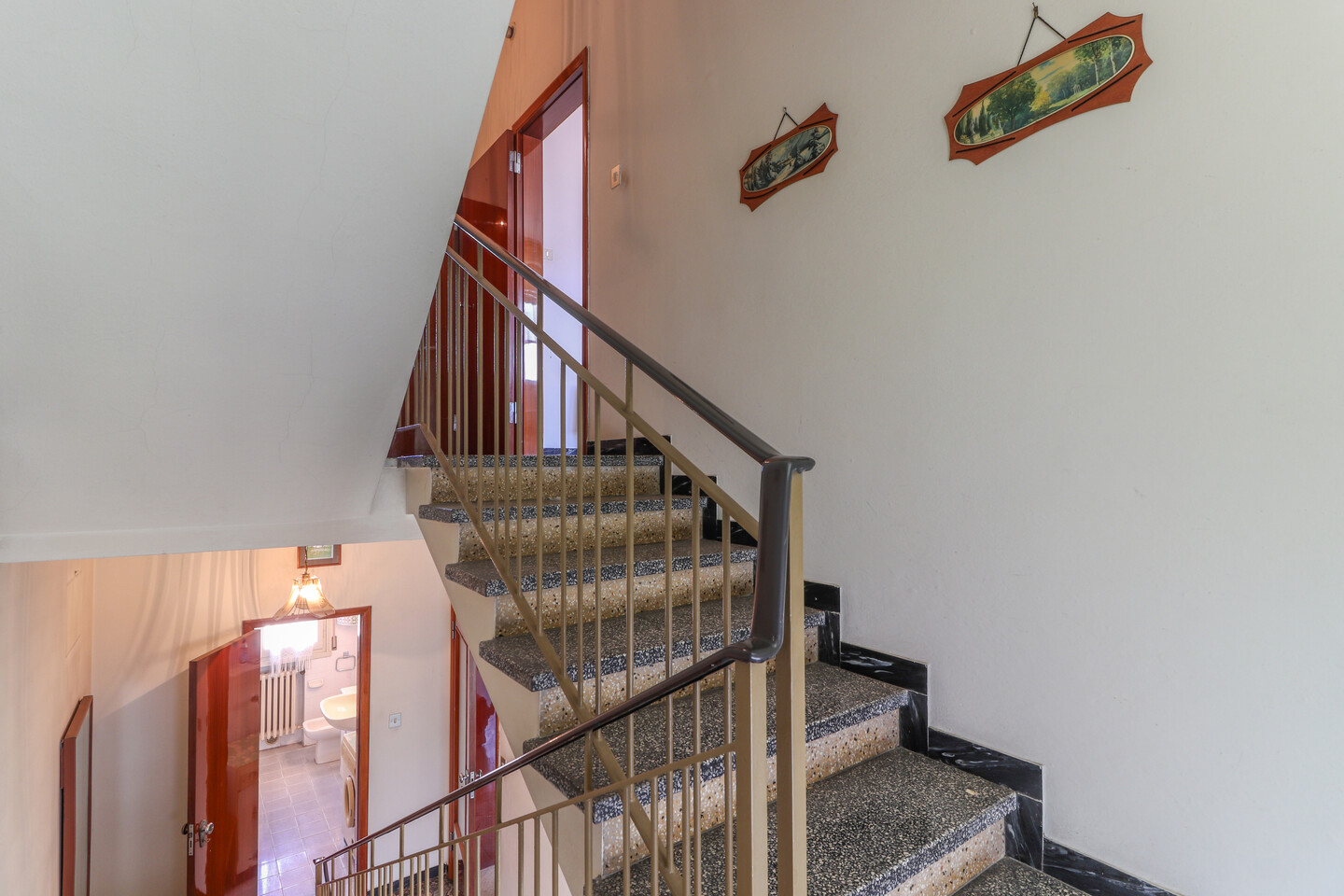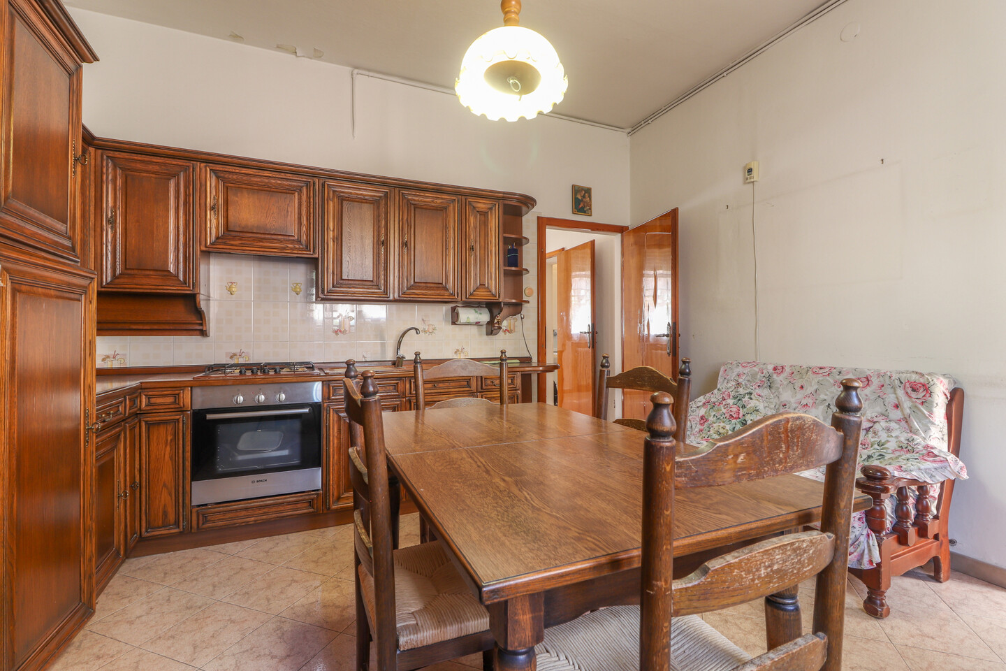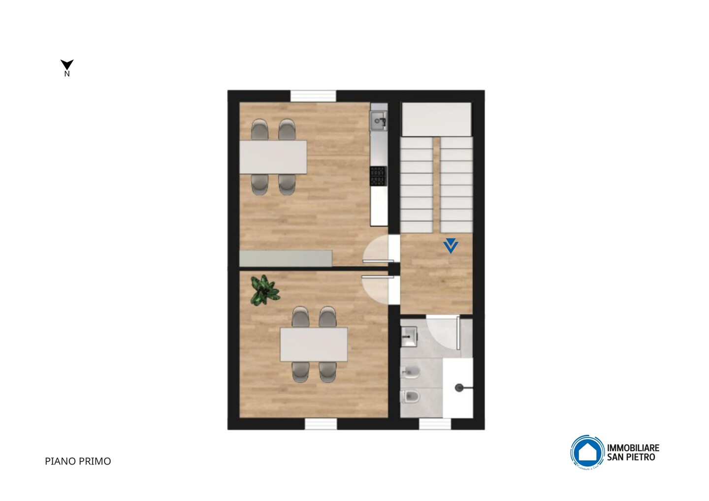 Porzione di casa indipendente composta da: al piano terra ingresso, cucina, letto e bagno. Al piano primo soggiorno, cucina e bagno. Al piano secondo due camere e un ripostiglio. Completa la proprietà un locale di circa 11 mq ad uso autorimessa all’interno di una corte comune.