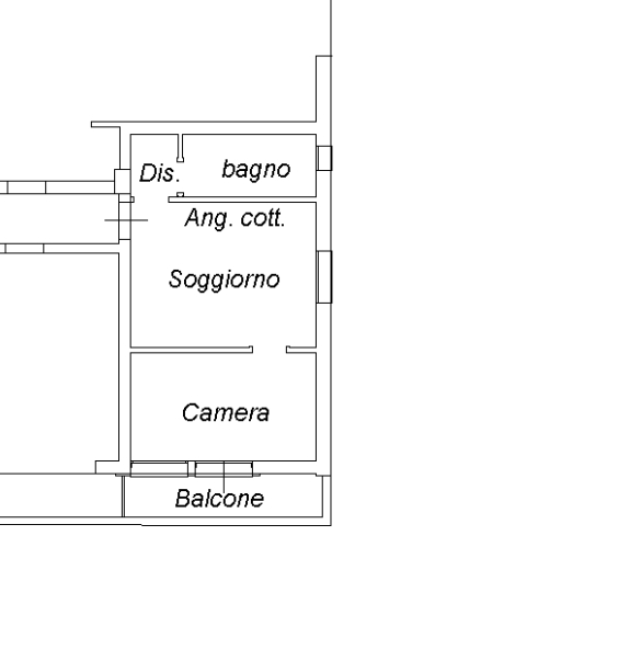 Ingresso sul soggiorno con angolo cottura, camera matrimoniale con balcone e disimpegno con bagno. Posto auto e cantina.