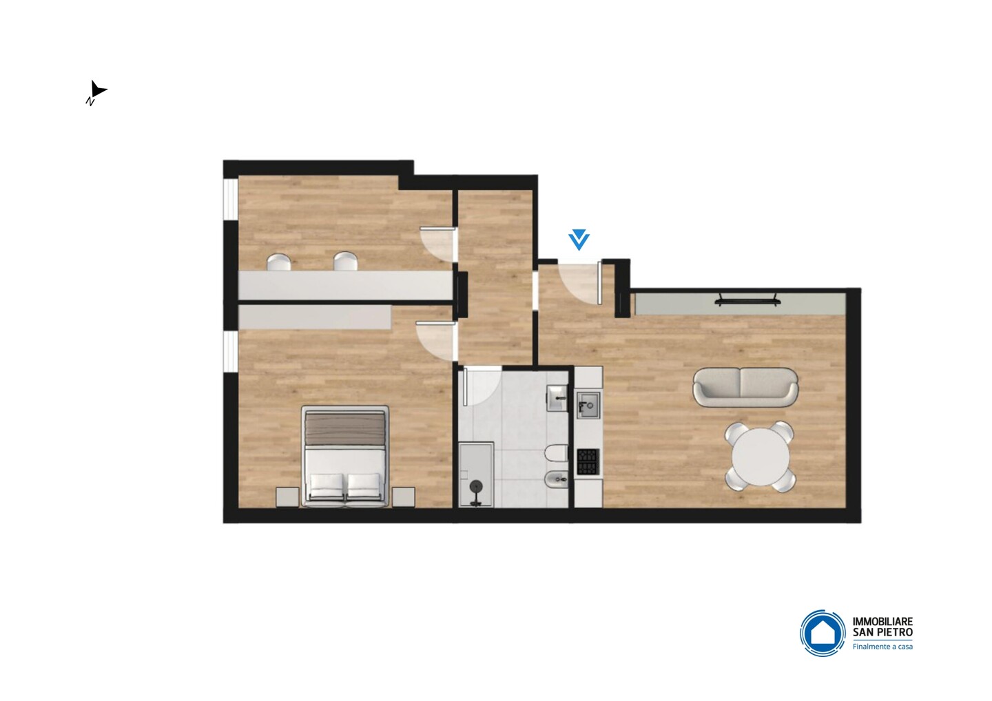 Al secondo ed ultimo piano troviamo poi 2 ulteriori unità: un trilocale di 77 mq completamente ristrutturato e libero, composto da: ingresso, soggiorno con angolo cottura, 1 camera matrimoniale, 1 camera singola o studio e 1 bagno; e un secondo trilocale di 80mq già locato, venduto quindi a reddito, composto da: soggiorno con angolo cottura, 1 camera matrimoniale, 1 studio o cameretta e 1 bagno.