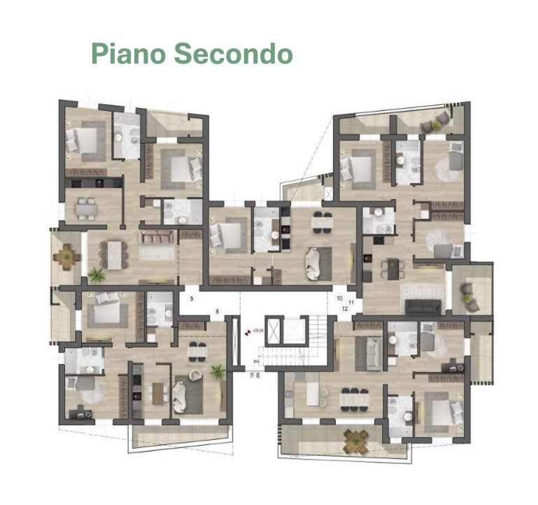 Completano la proposta impianti di ultima generazione che prevedono: pannelli fotovoltaici per la produzione di energia elettrica in modo autonomo per ogni singolo alloggio, con inverter ibridi e predisposizione per batterie di accumulo; pompa di calore per riscaldamento e climatizzazione tramite impianto autonomo di Ventilazione Meccanica Controllata; impianto domotico per la gestione delle tapparelle e dell’illuminazione interna.