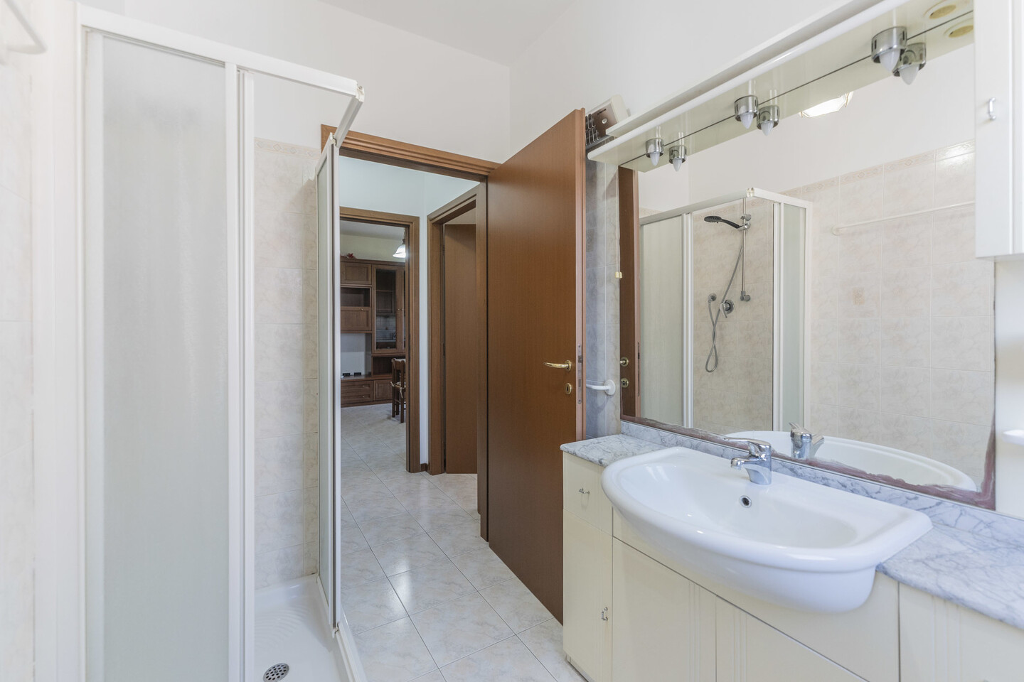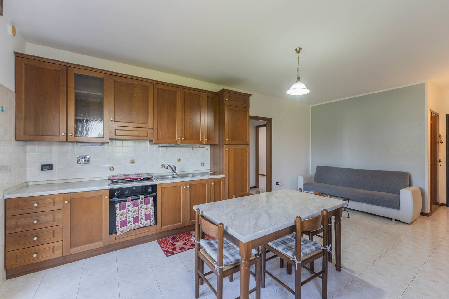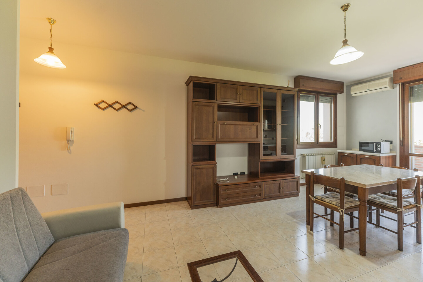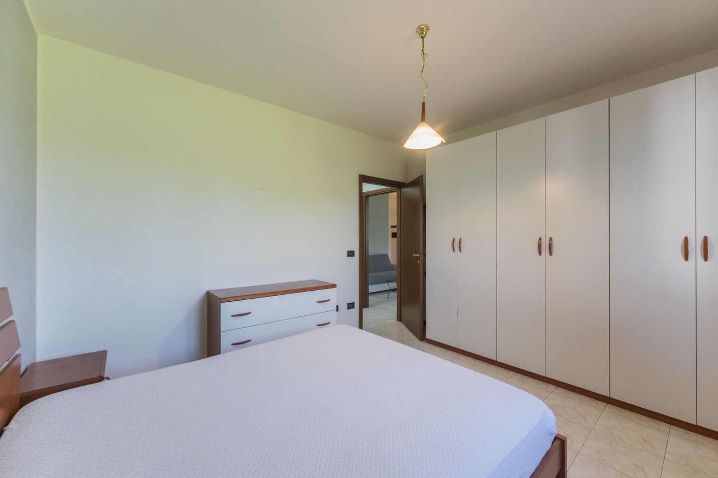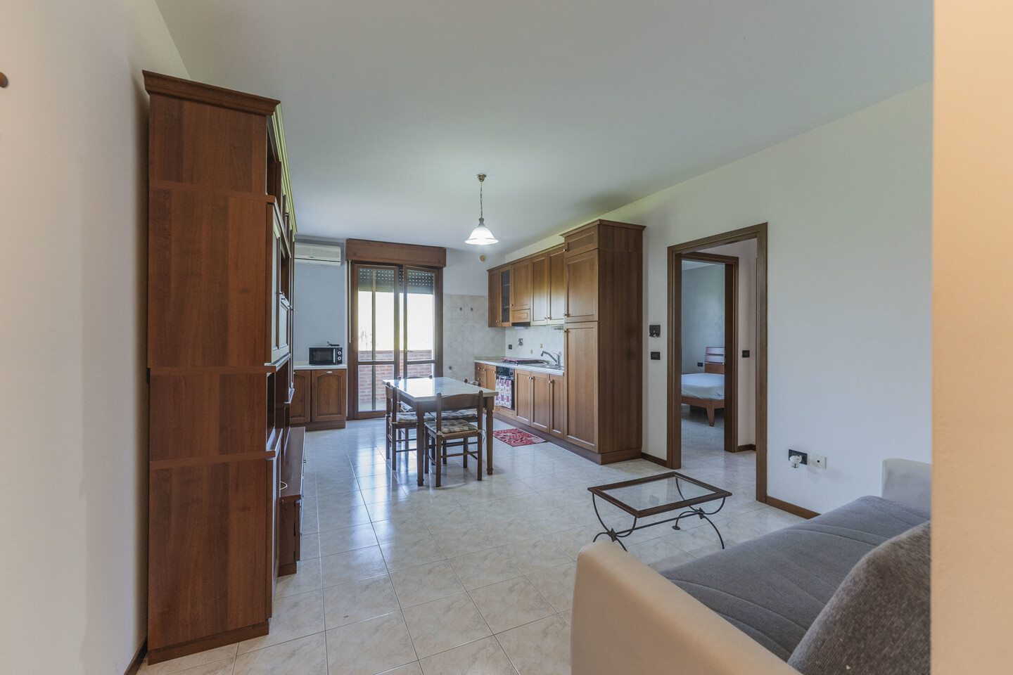 L’immobile è situato al primo piano e così composto: ingresso su soggiorno con angolo cottura (dal quale è possibile accedere direttamente al terrazzo), un disimpegno notte divide una camera matrimoniale, una camera studio e un bagno.