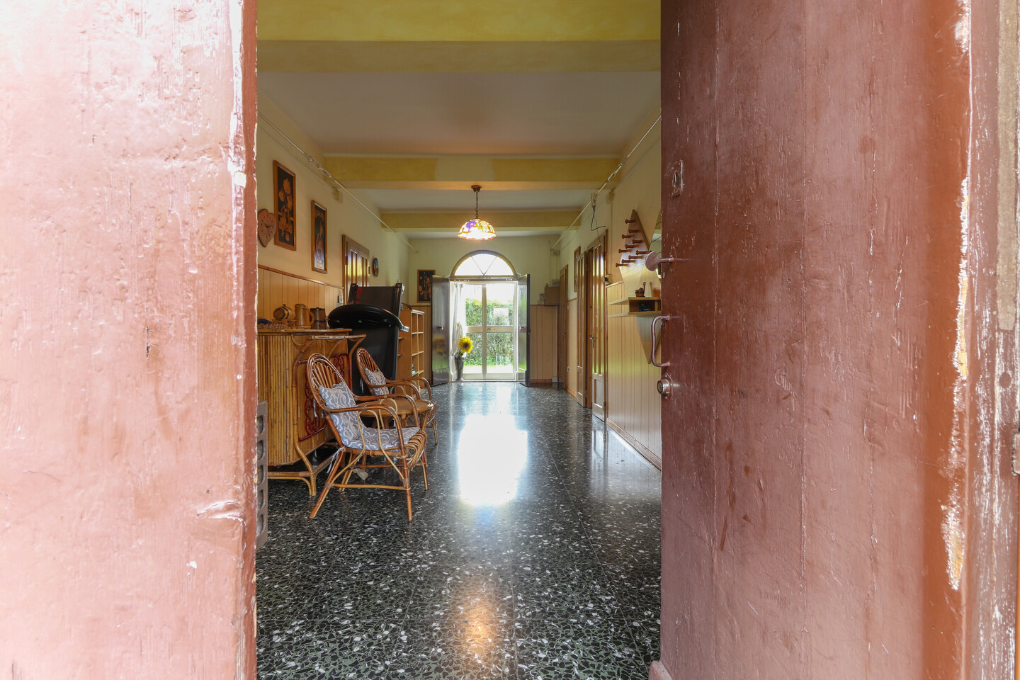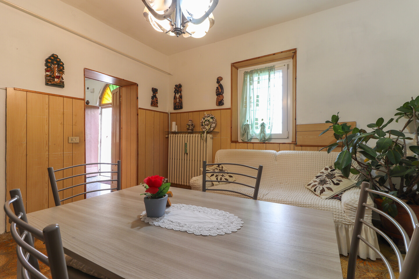 Abitazione indipendente dei primi del ‘900 disposta du due livelli e composta da: ampio ingresso, soggiorno, cucina, bagno e cantina al piano terra. Al piano primo disimpegno, tre camere e un ripostiglio. Fabbricato accessorio all’interno della corte ad uso stalla/deposito. Terreno di proprietà di circa 2000 mq.